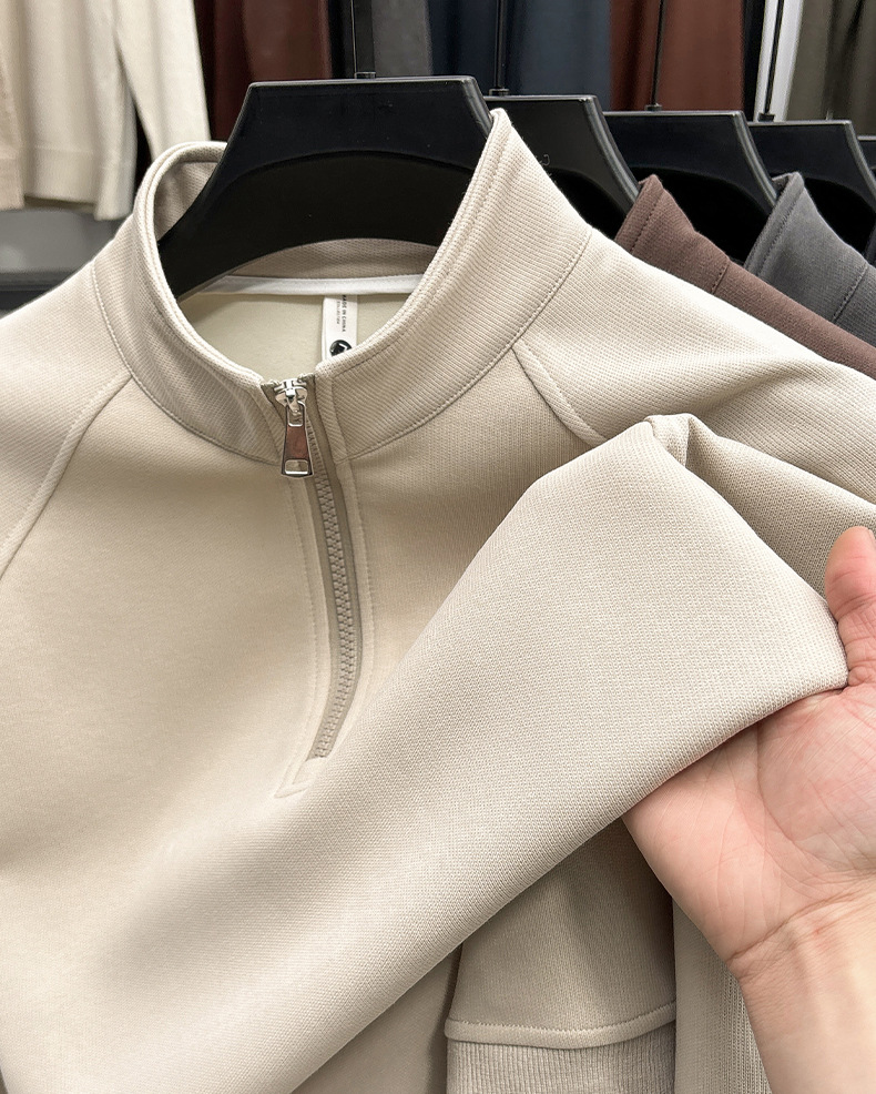 2025 봄과 가을 패션 하프 Zip 스웨터 남자의 무거운 칼라 탑 따뜻한 내베이스 셔츠 남자의 트렌디