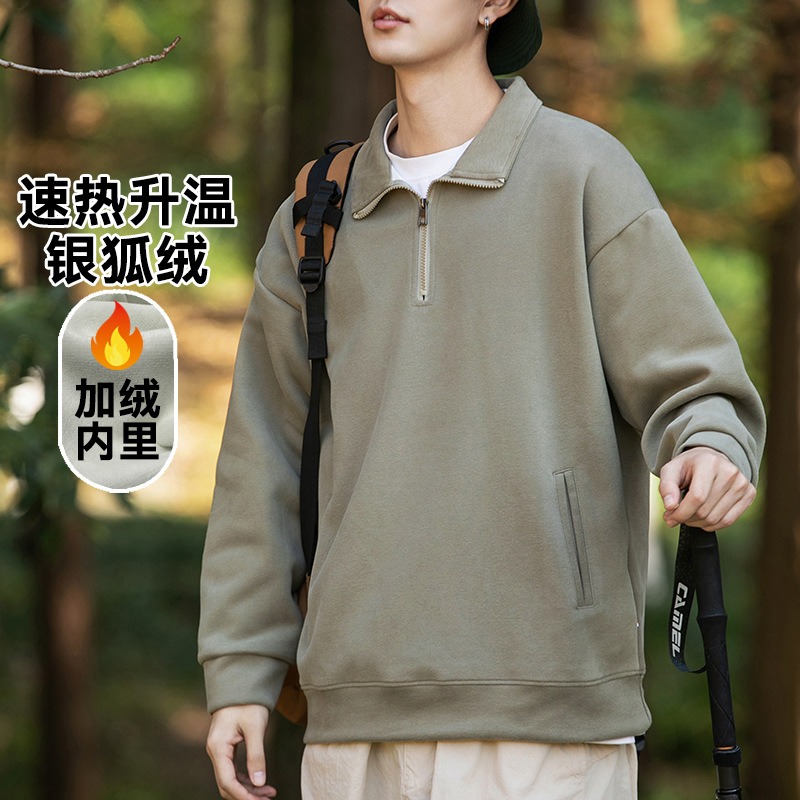 쿤하이펑 클라우드 스타일 칼라 스웨트셔츠 남성용 가을 겨울 신상품 단색 반지퍼 상의 아웃도어 캐주얼 플러스 벨벳 보온 자켓스토어 가기
