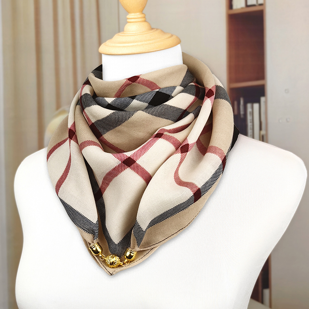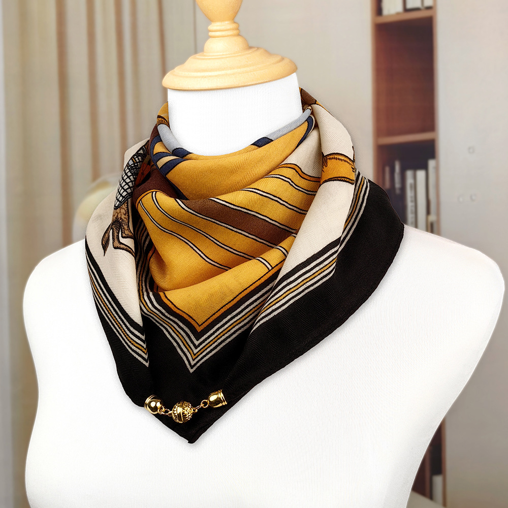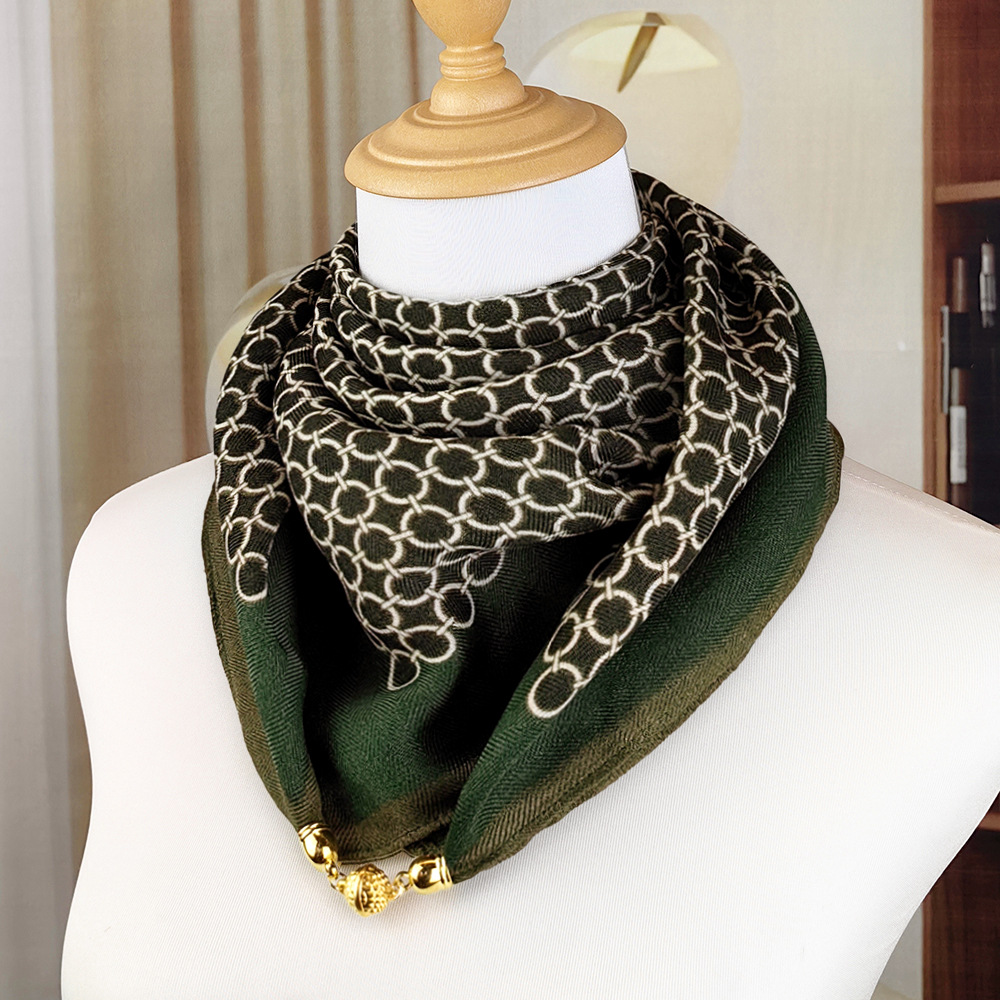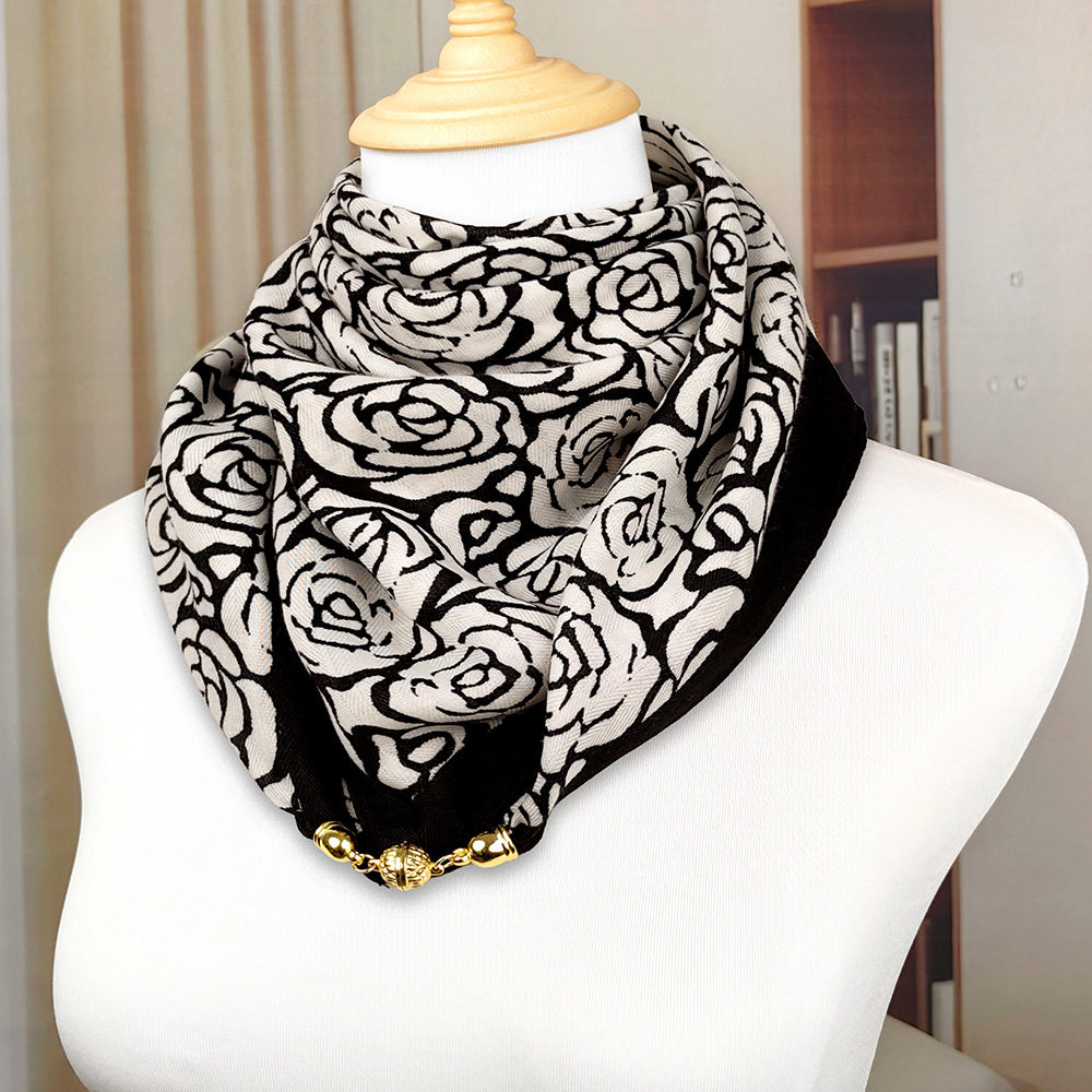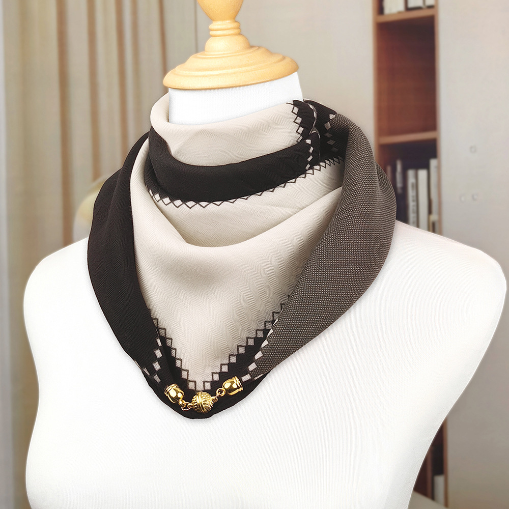 가을 겨울 자석 버클 양면 목 보호 삼각 스카프 여성용 실크 스카프 겨울용 작은 목도리 양면 목 보호 스카프스토어 가기