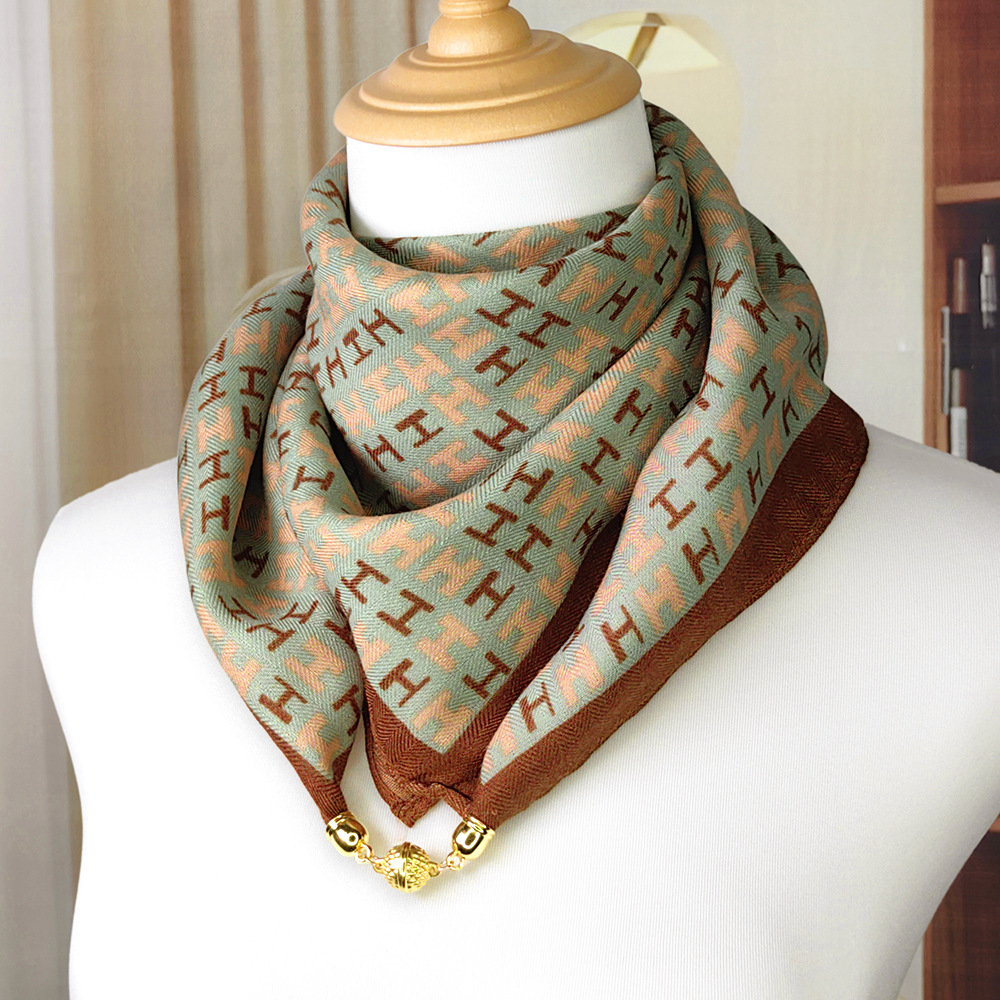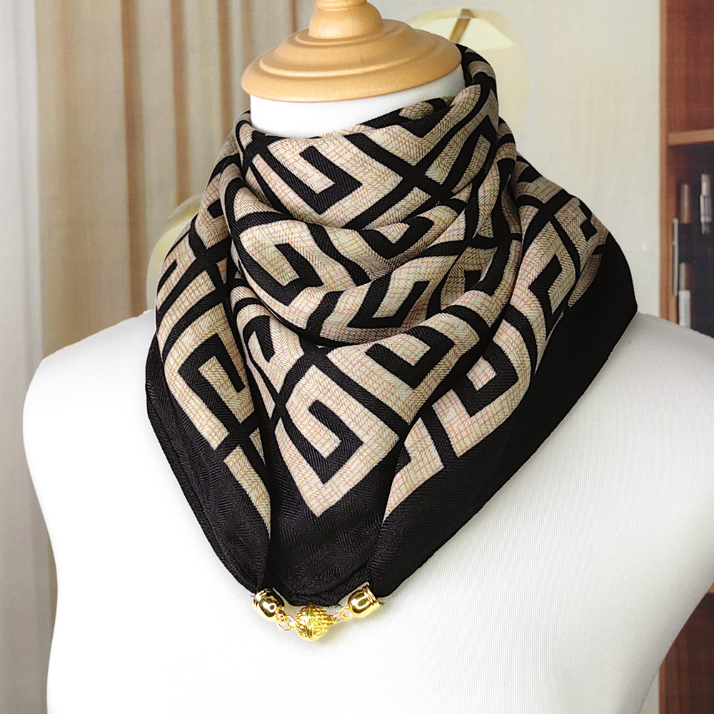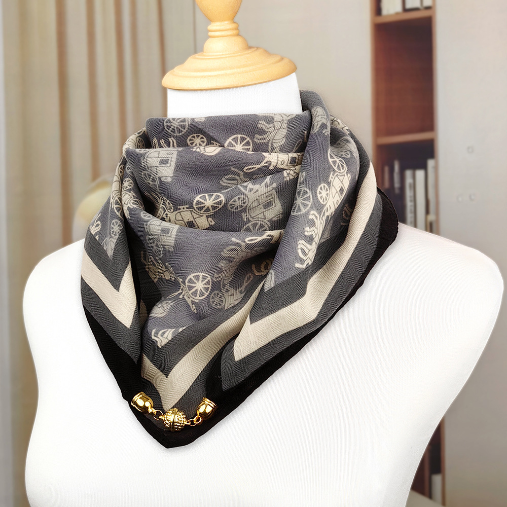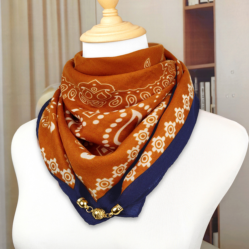 가을 겨울 자석 버클 양면 목 보호 삼각 스카프 여성용 실크 스카프 겨울용 작은 목도리 양면 목 보호 스카프스토어 가기