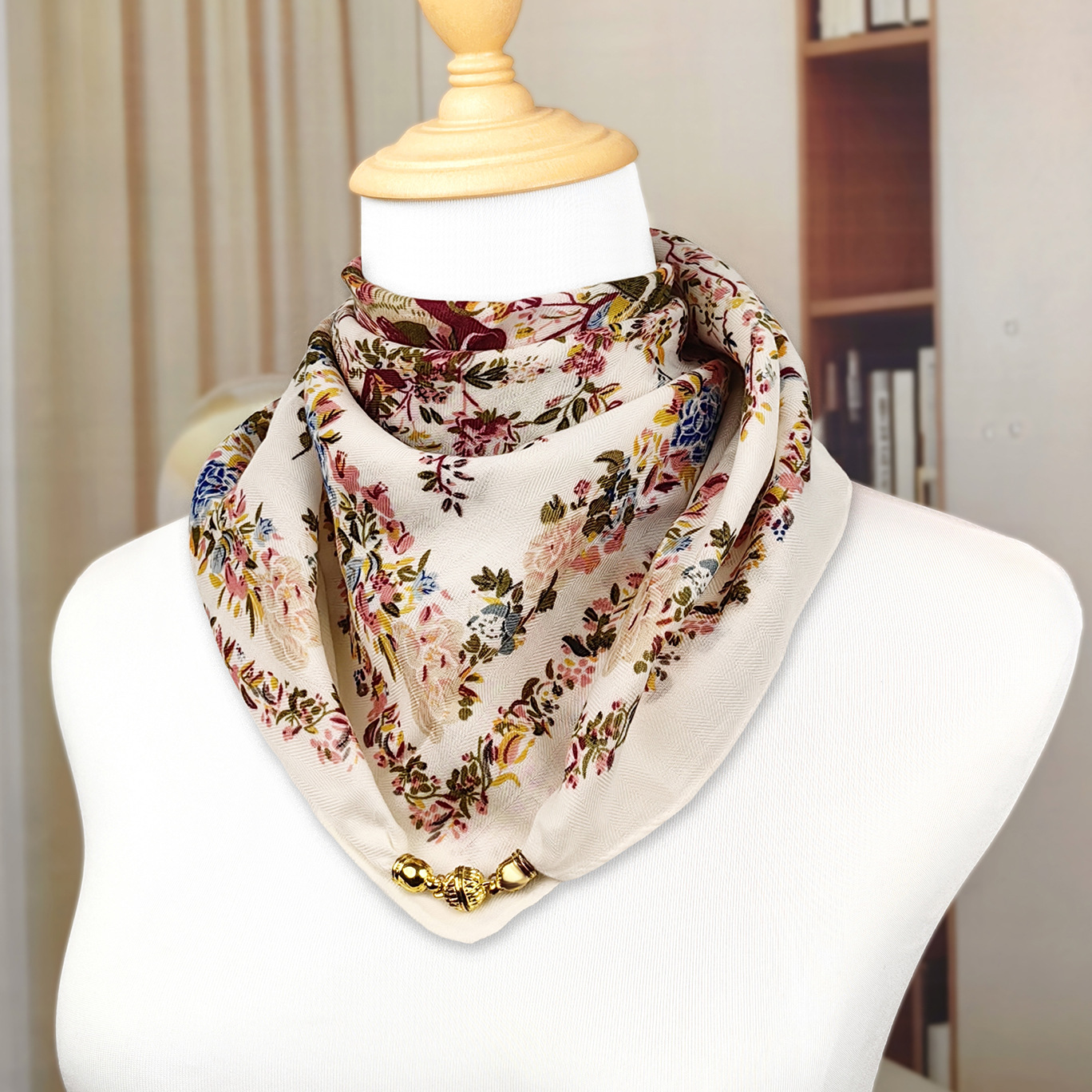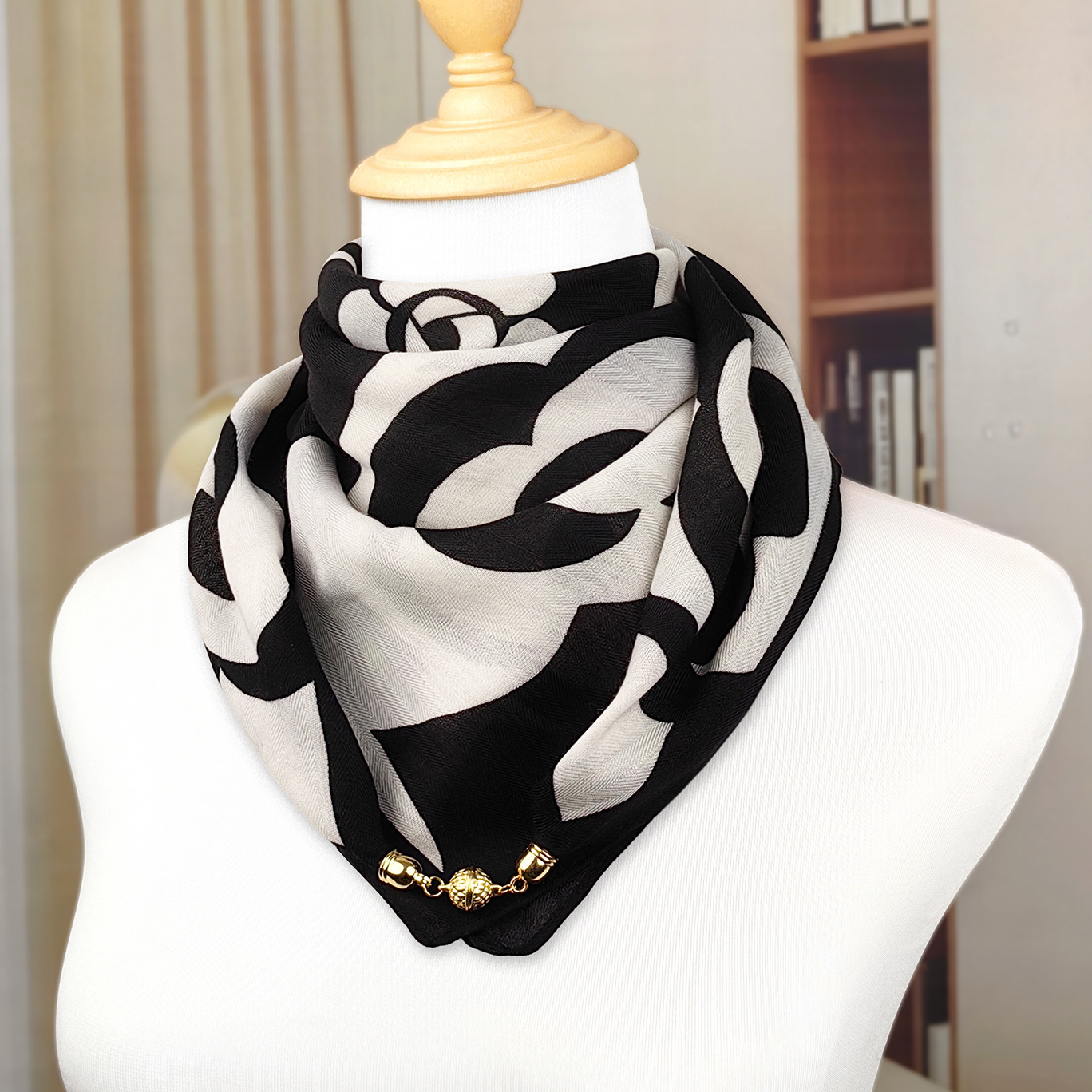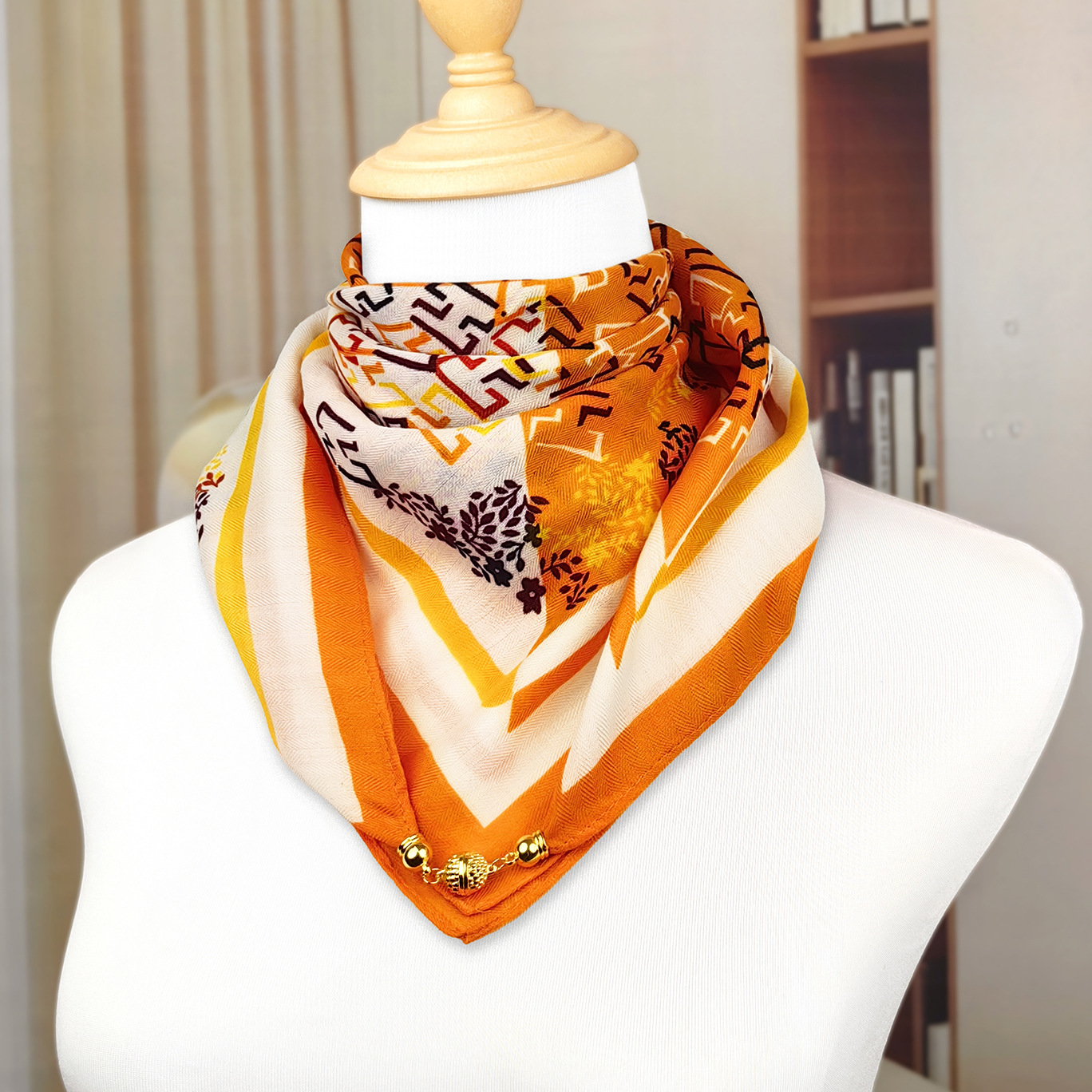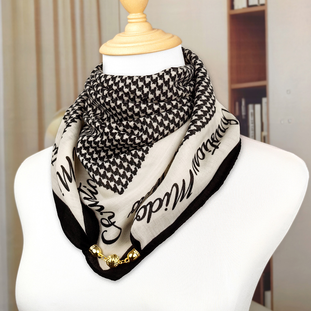 가을 겨울 자석 버클 양면 목 보호 삼각 스카프 여성용 실크 스카프 겨울용 작은 목도리 양면 목 보호 스카프스토어 가기