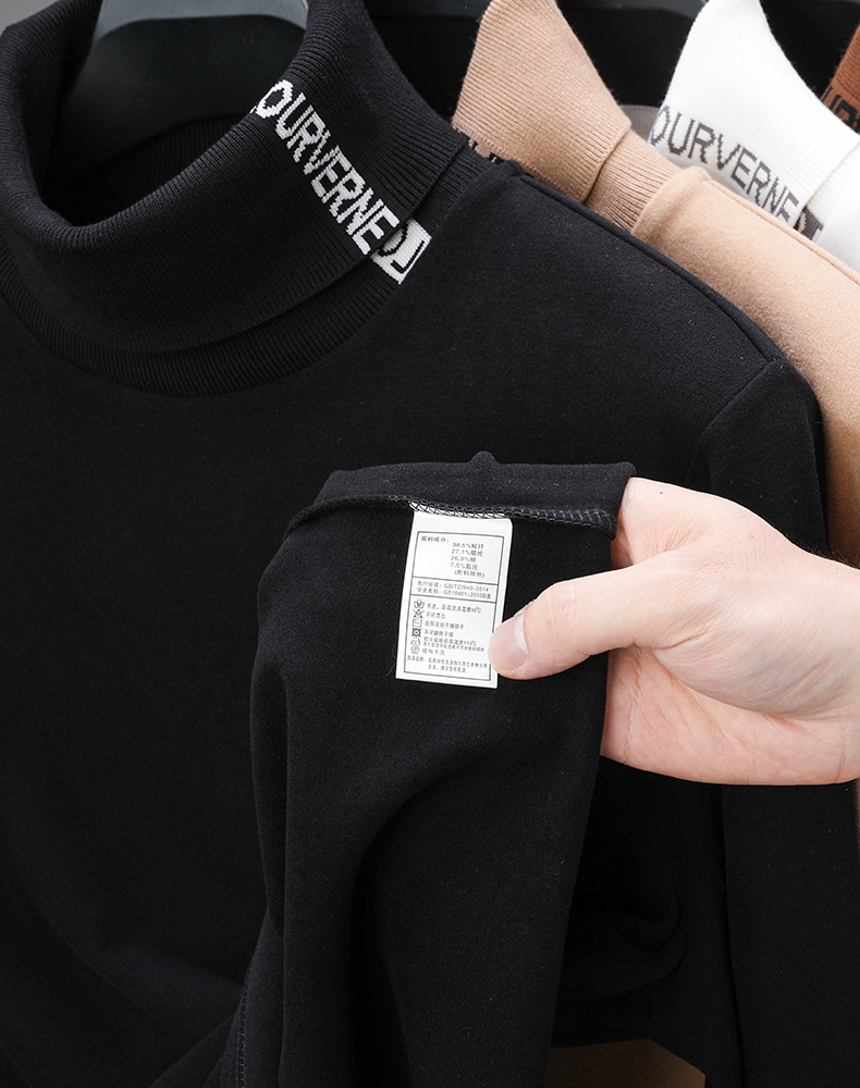 긴팔 티셔츠 2024 하이 칼라 양면 벨벳베이스 셔츠 남성용 두꺼운 벨벳 따뜻한 단색 코튼 탑 한국 겨울