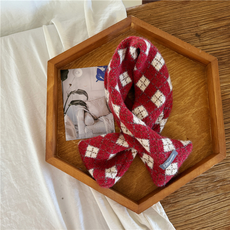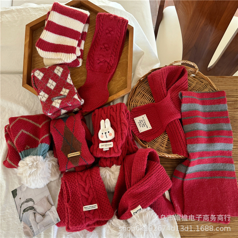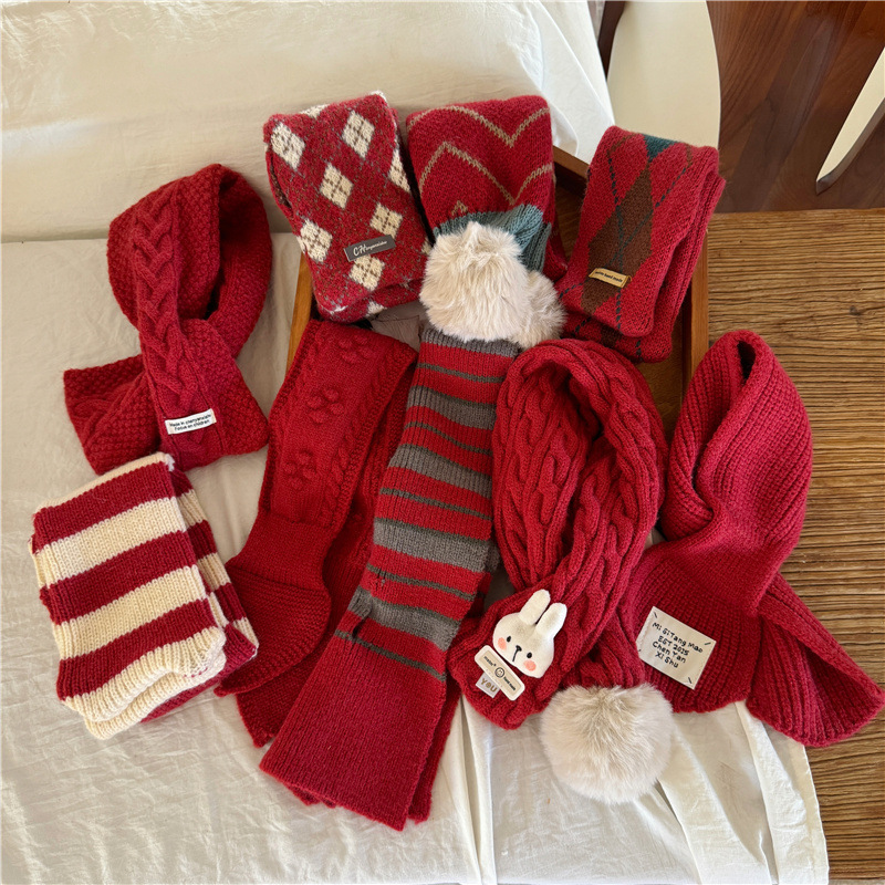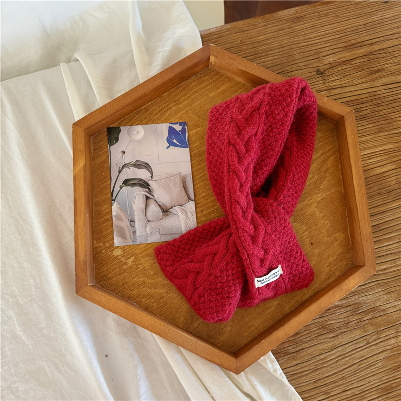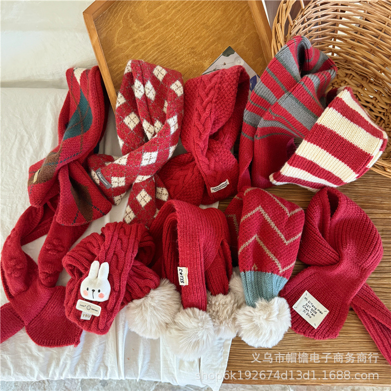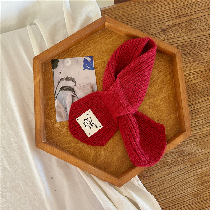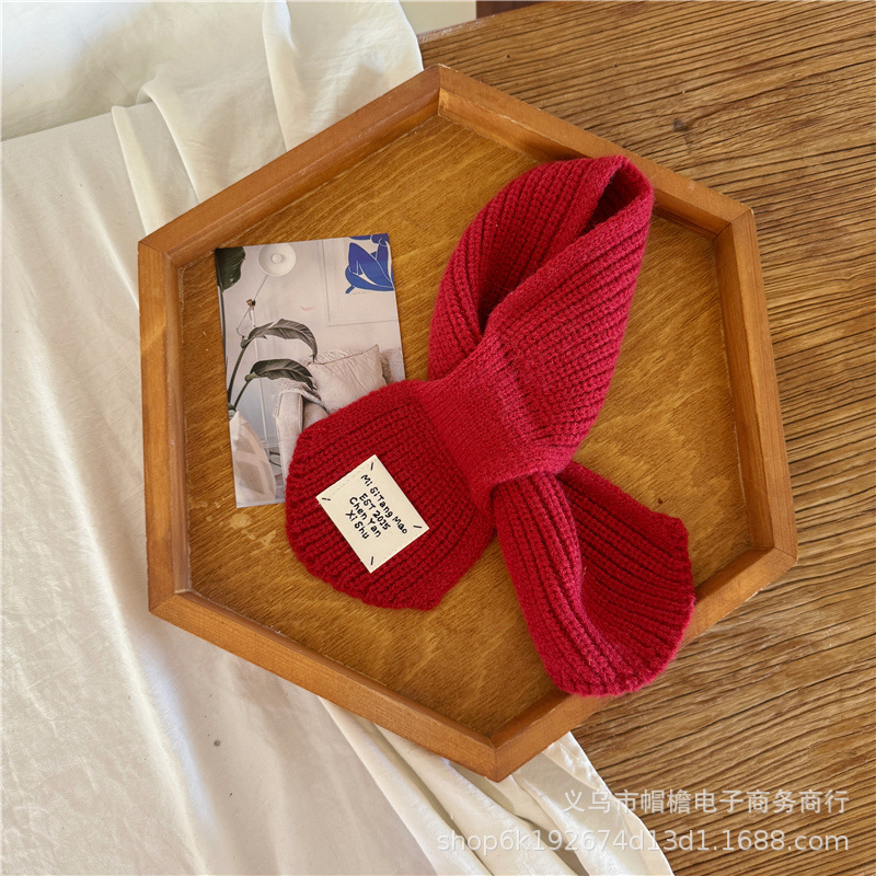 어린이 새해 스카프 서양식 빈티지 레드 베이비 니트 스카프 맞춤형 올 매치 앙고라 적십자 스카프