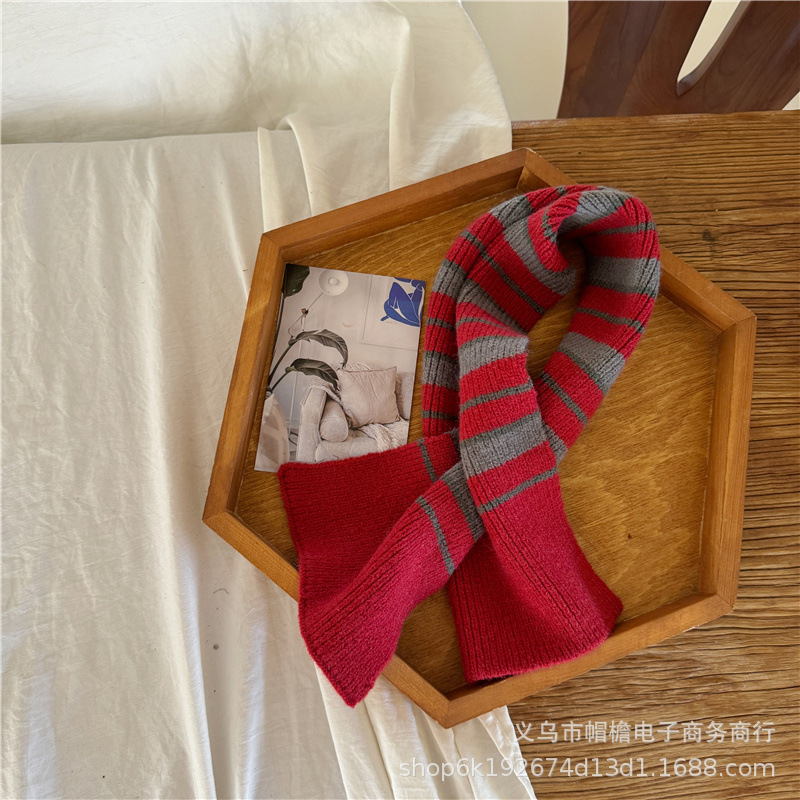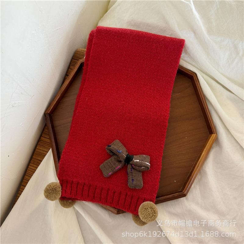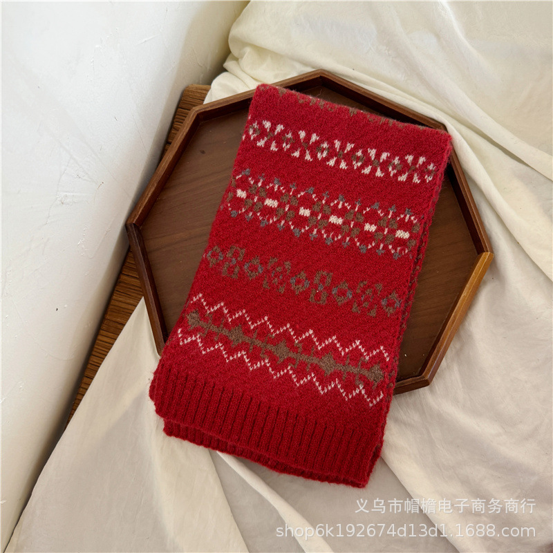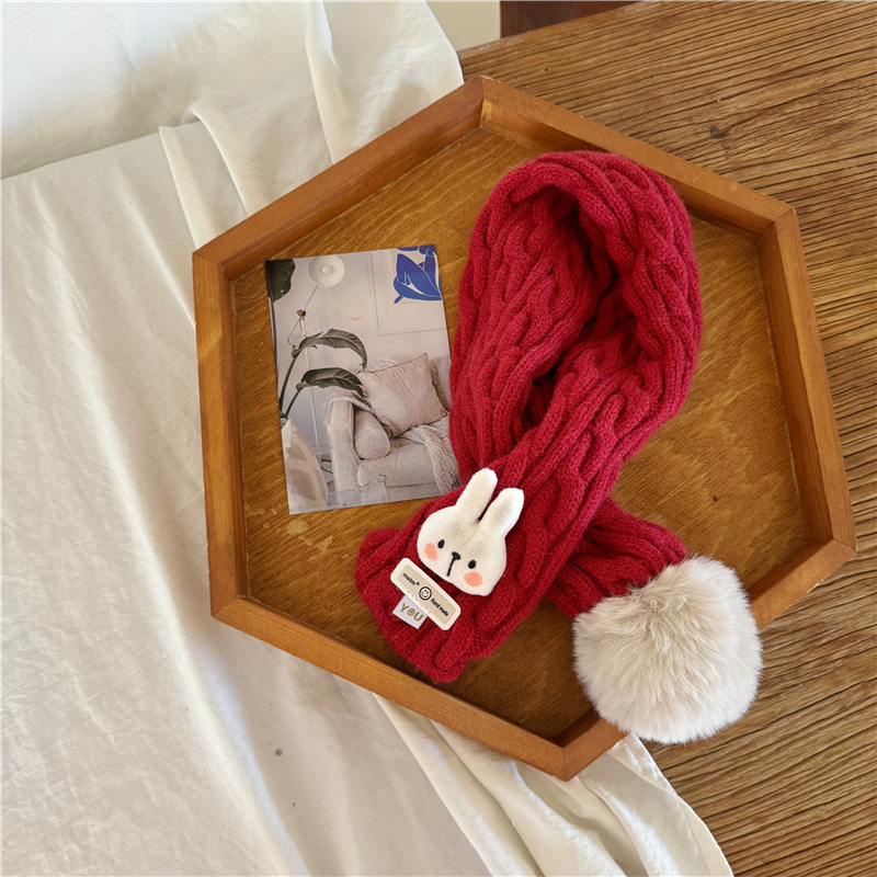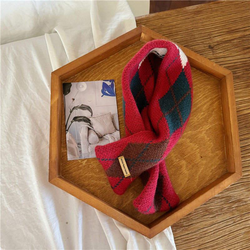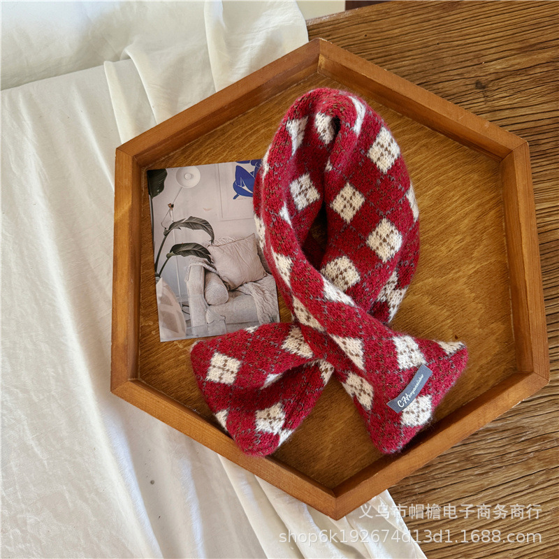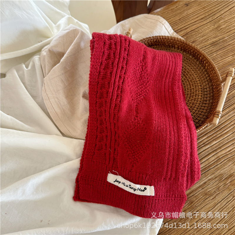 어린이 새해 스카프 서양식 빈티지 레드 베이비 니트 스카프 맞춤형 올 매치 앙고라 적십자 스카프