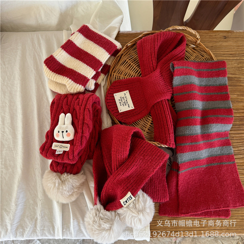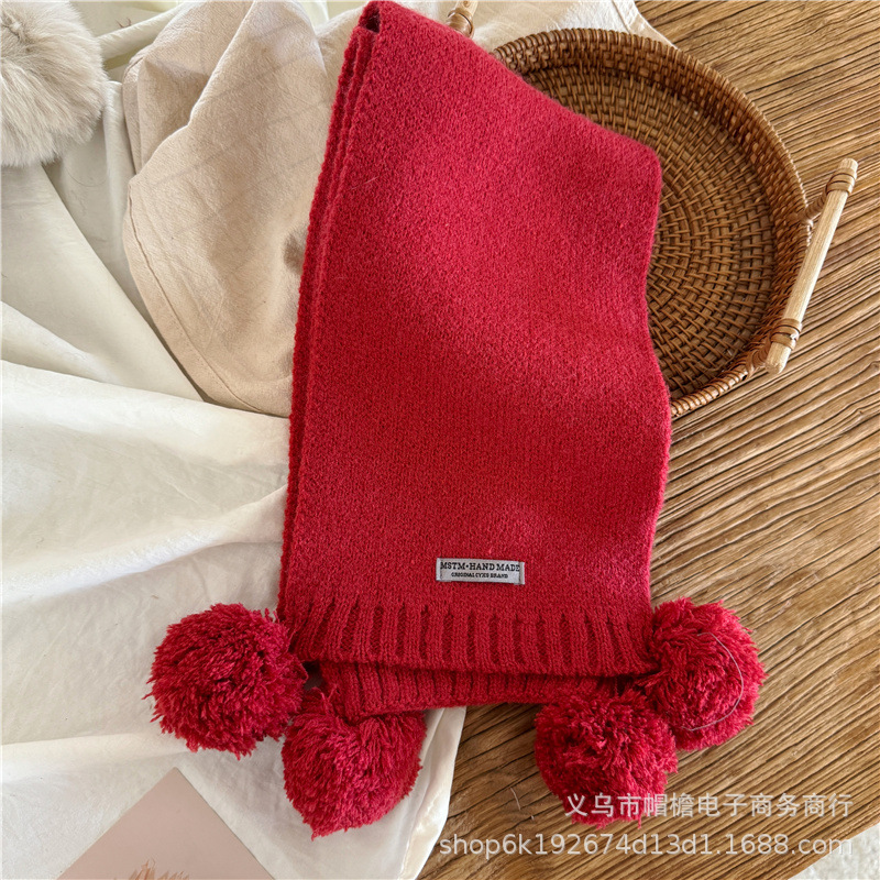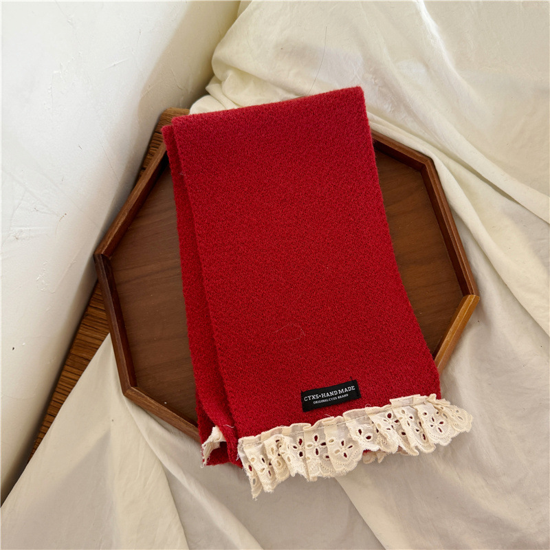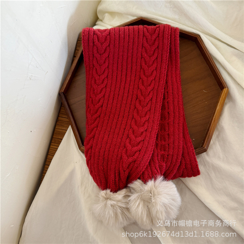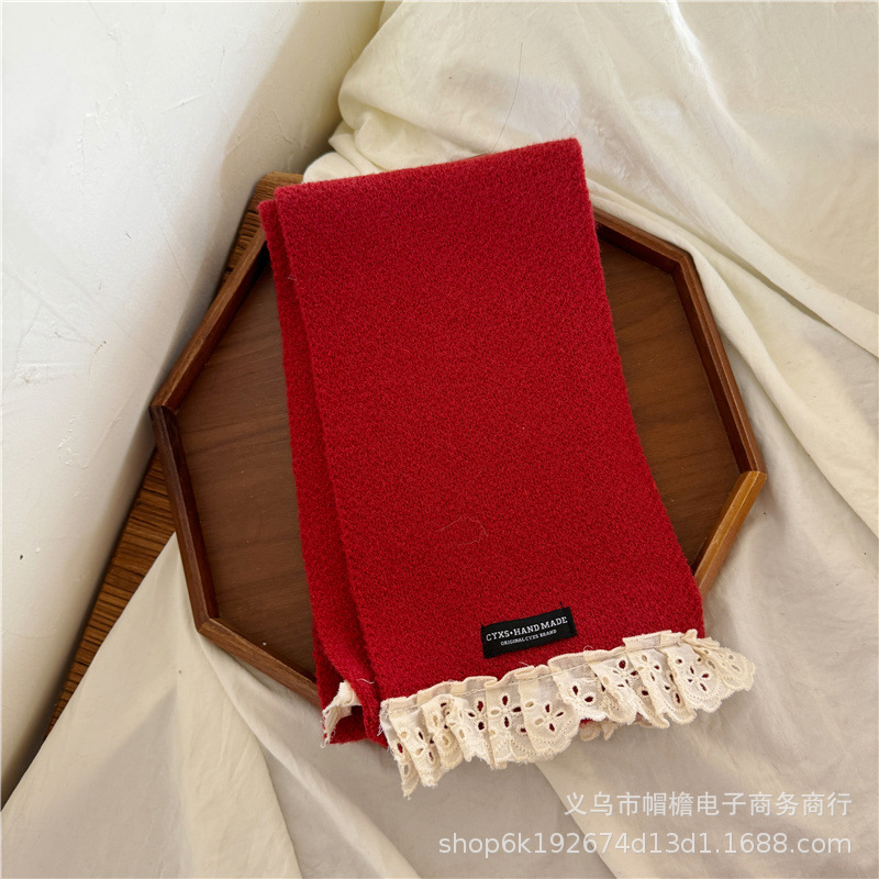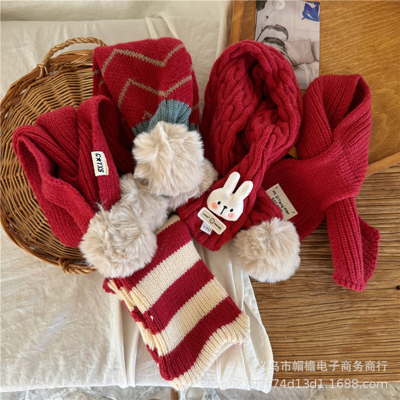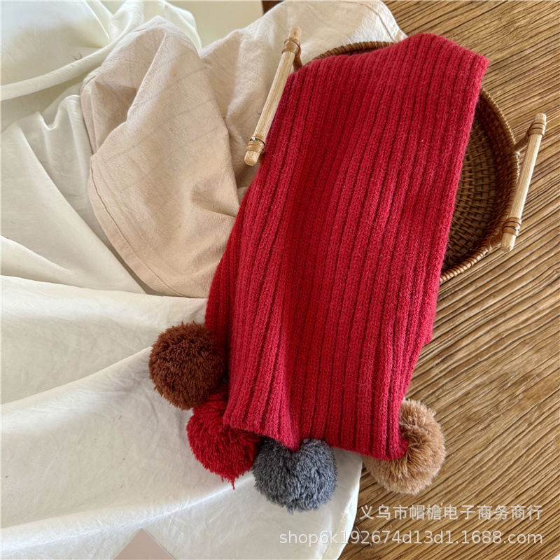 어린이 새해 스카프 서양식 빈티지 레드 베이비 니트 스카프 맞춤형 올 매치 앙고라 적십자 스카프