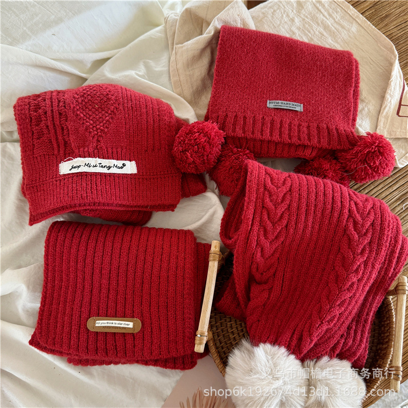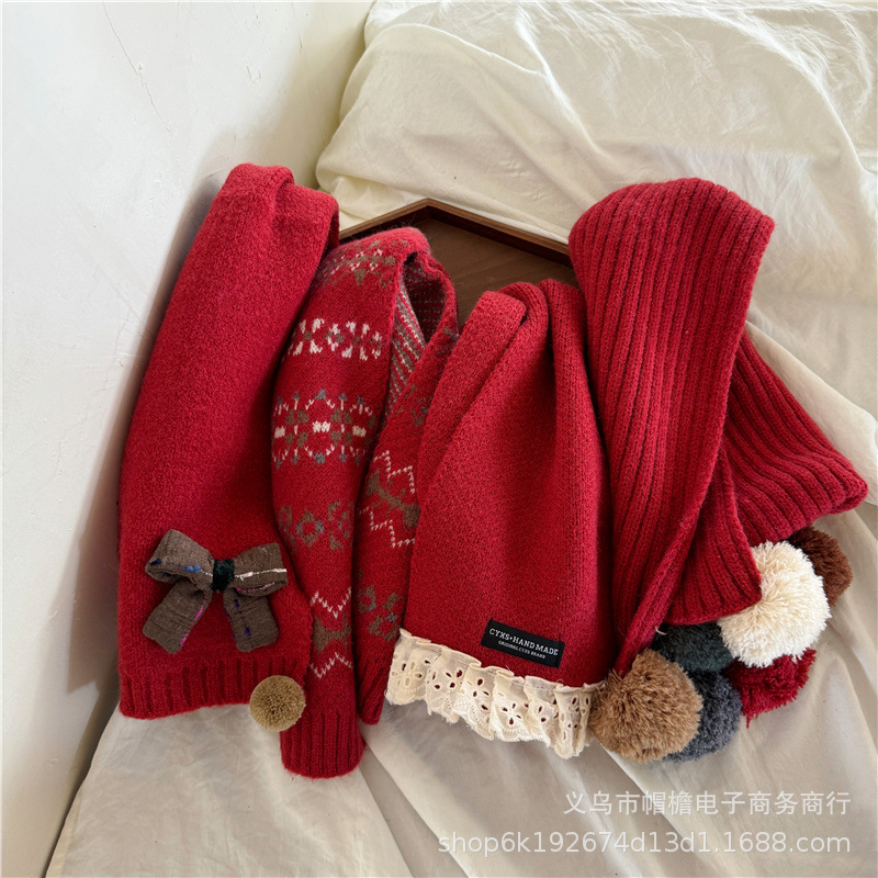어린이 새해 스카프 서양식 빈티지 레드 베이비 니트 스카프 맞춤형 올 매치 앙고라 적십자 스카프스토어 가기