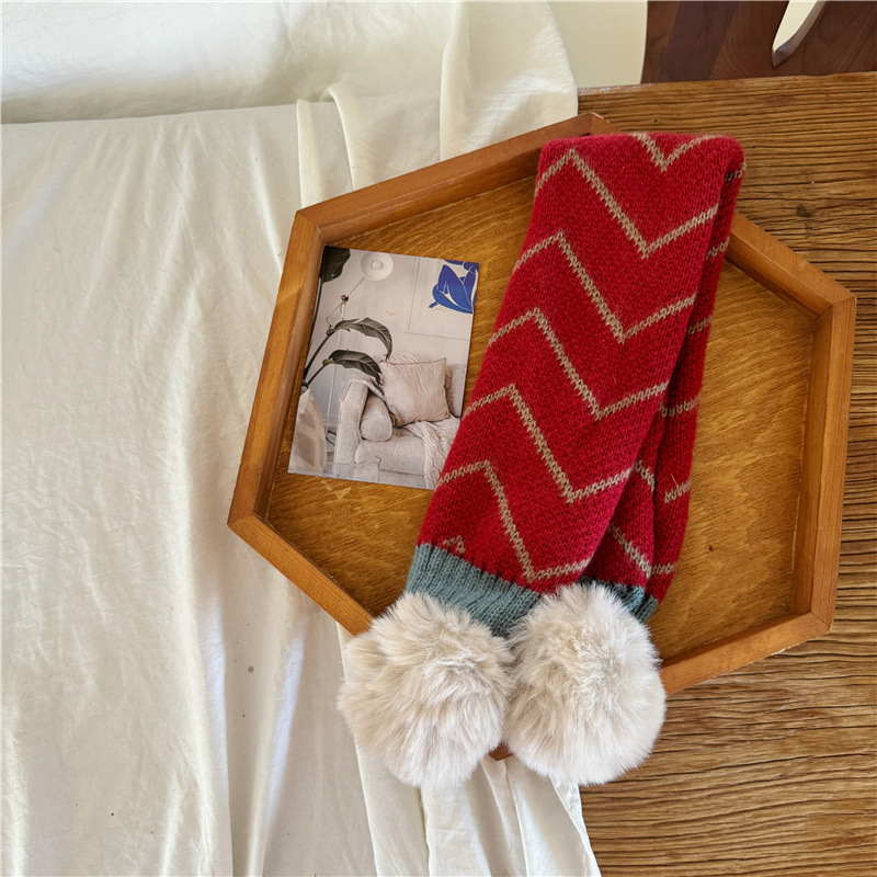 • 밀이삭 더블 퍼 볼 레드 롱 스카프
