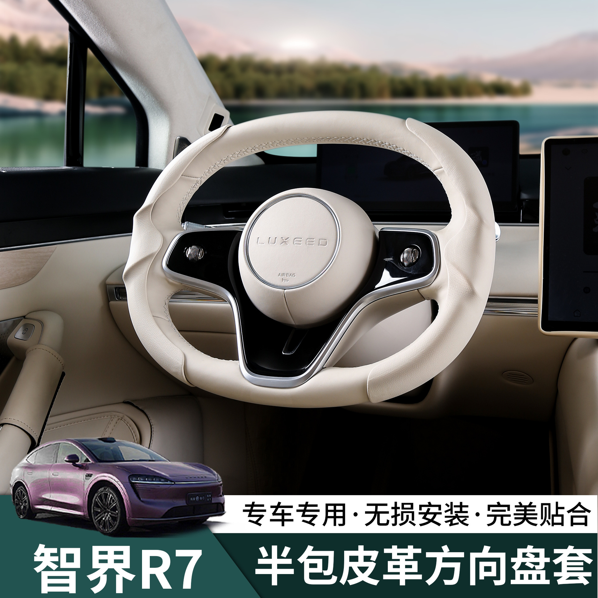 Zhijie R7 스티어링 휠 보호 커버 하프 백 버클 가죽 미끄럼 방지 r7 내부 수정 특수 통기성 자동차 핸들 커버스토어 가기