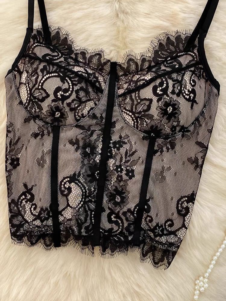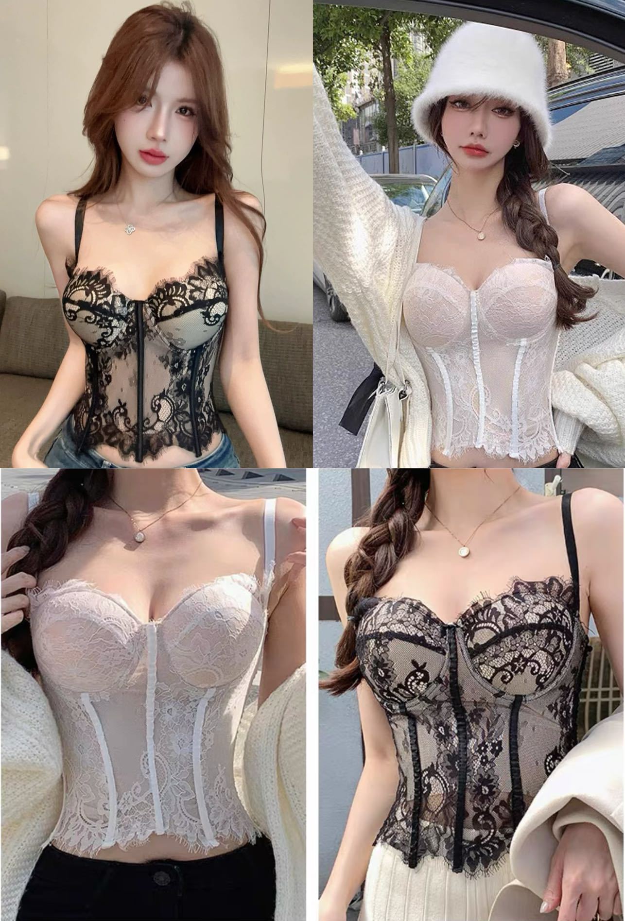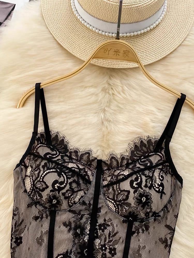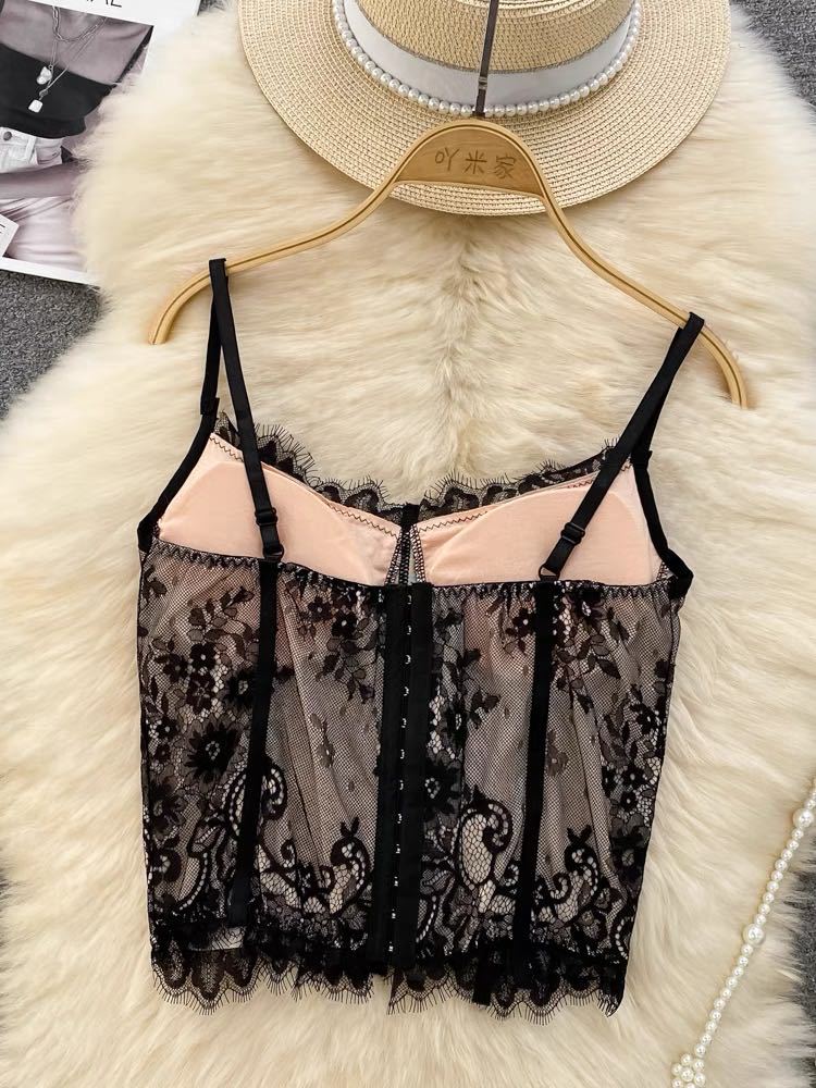 226 # 새로운 아마존 해외판 유럽 및 미국 스타일 섹시 레이스 시스루 속눈썹 디자인 슬림핏 조끼스토어 가기