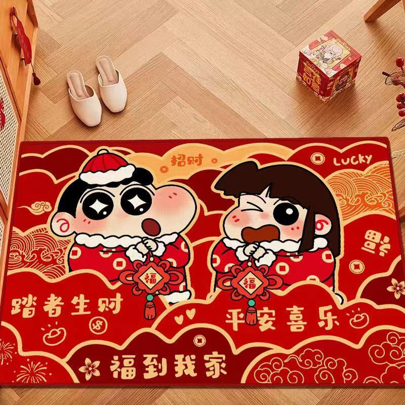 만화 크레용 작은 새해 축하 빨간 문 매트 라인 개 입구 전체 상점 발 매트 두꺼운 바닥 매트스토어 가기