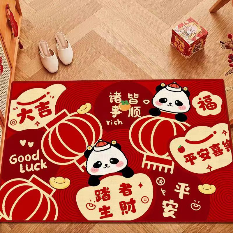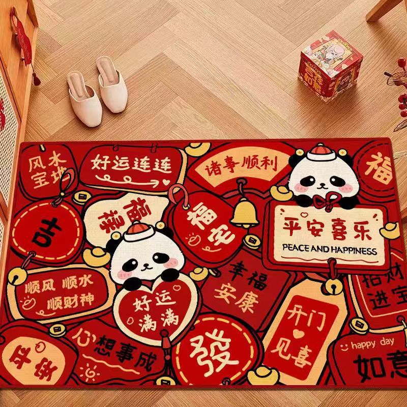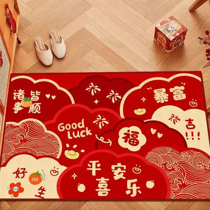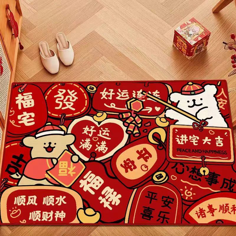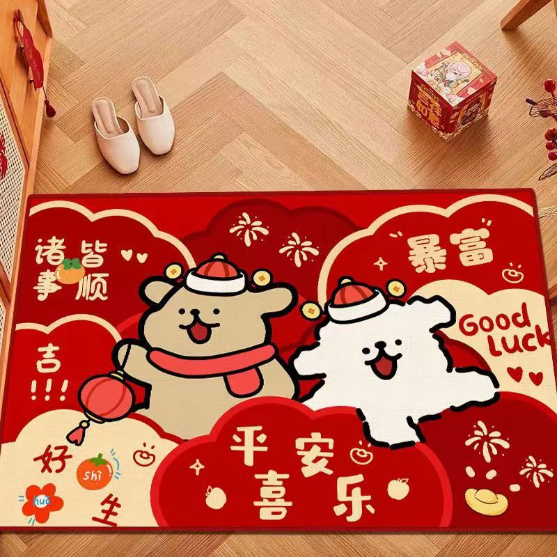 만화 크레용 작은 새해 축하 빨간 문 매트 라인 개 입구 전체 상점 발 매트 두꺼운 바닥 매트