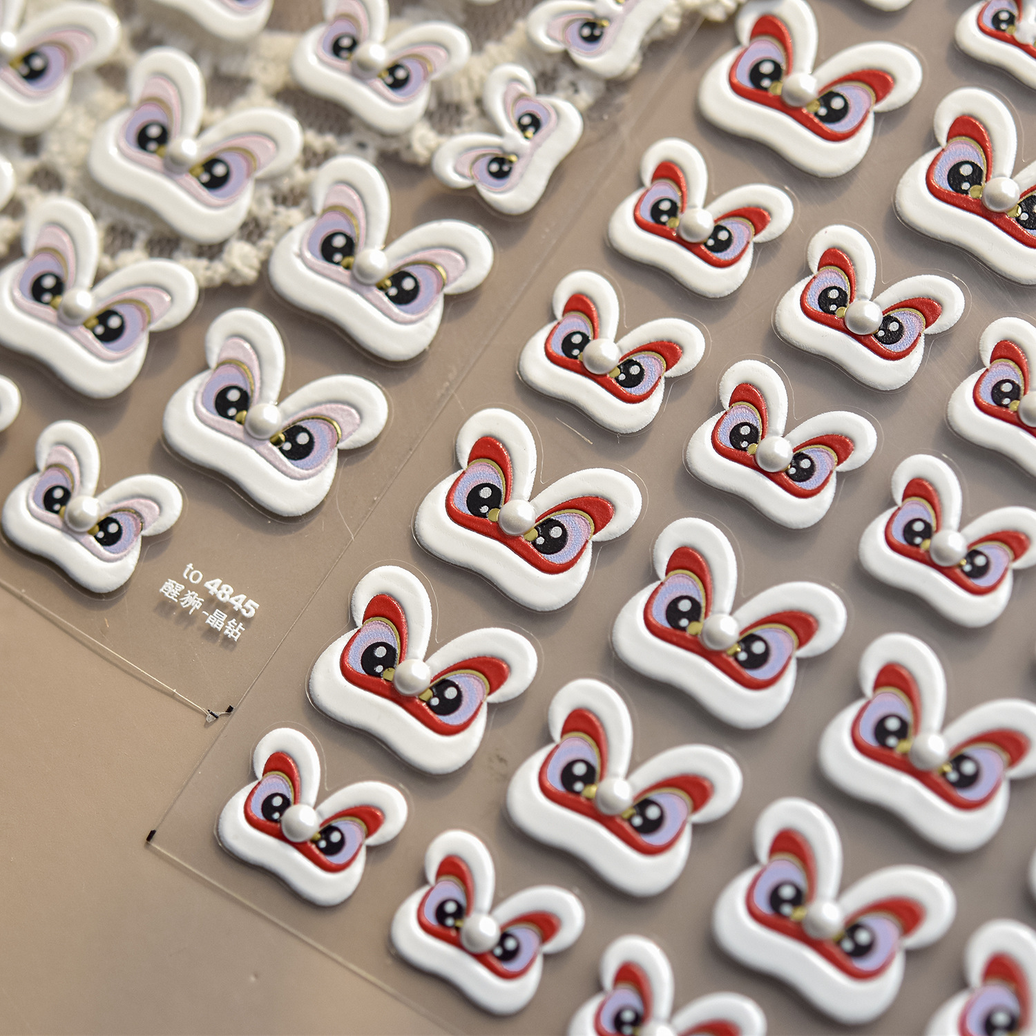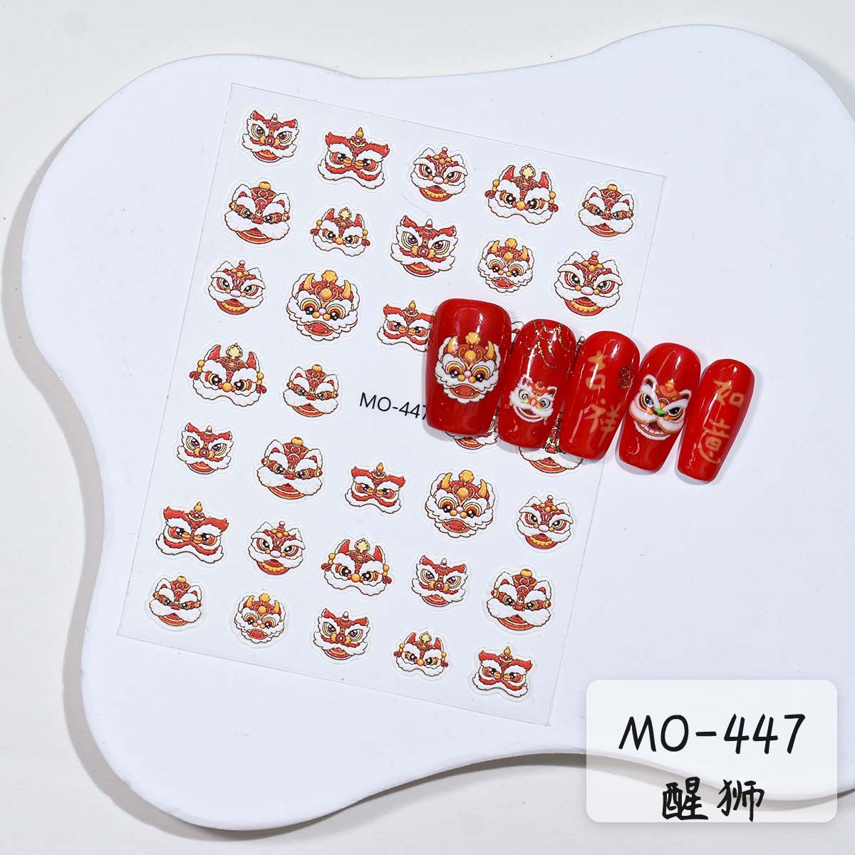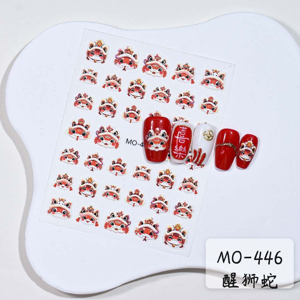 Guofeng 사자춤 네일 아트 스티커 2025 신년 축하 사자 댄스 구호 귀여운 3 차원 국가 조수 네일 데칼 장식