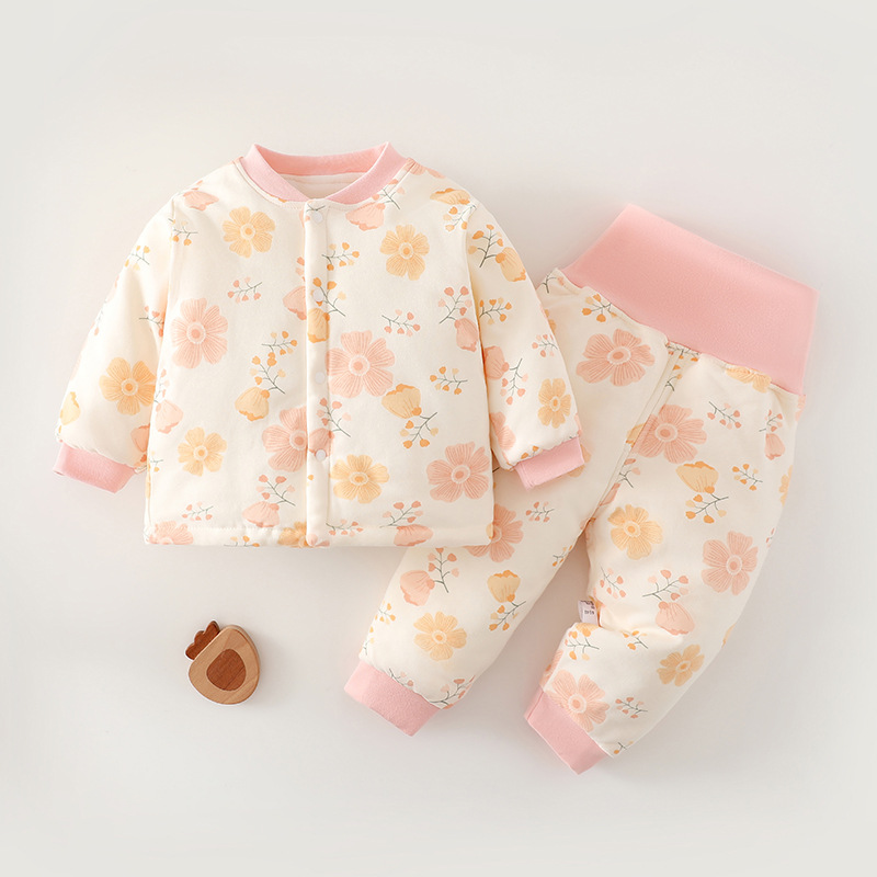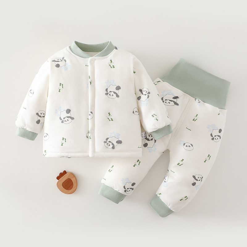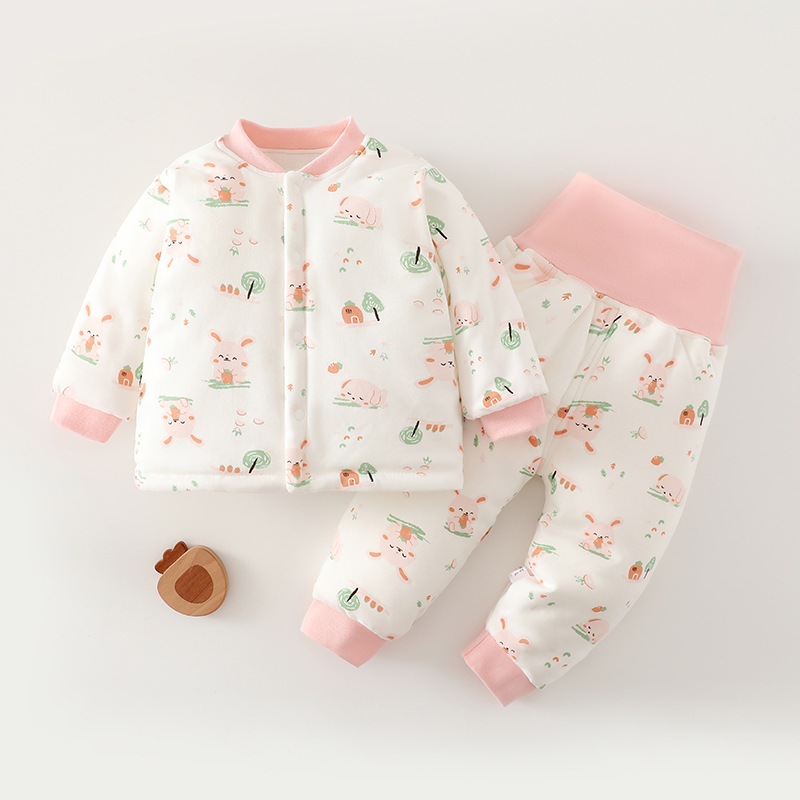양용 크로 치 아기 높은 허리 세트 코튼 바지 가을 및 겨울 코튼 따뜻한 분할 세트 아기 소년과 소녀 코튼 코트