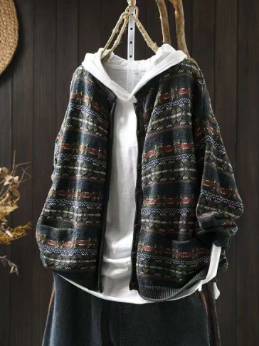 가을과 겨울 새로운 민족 스타일 자카드 니트 카디건 재킷 여성 캐주얼 아우터 스웨터 카디건 81001스토어 가기