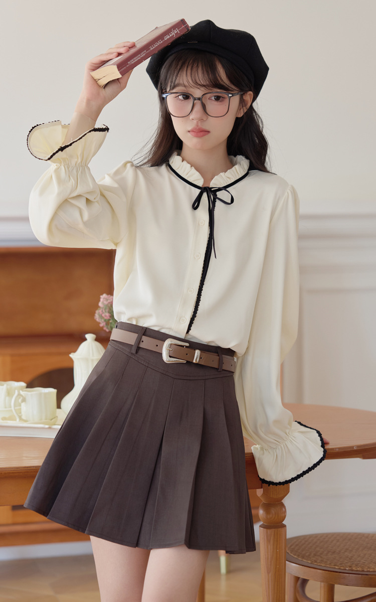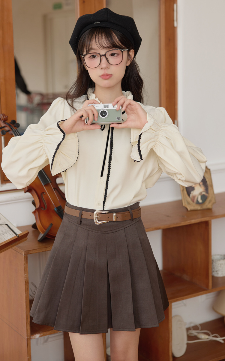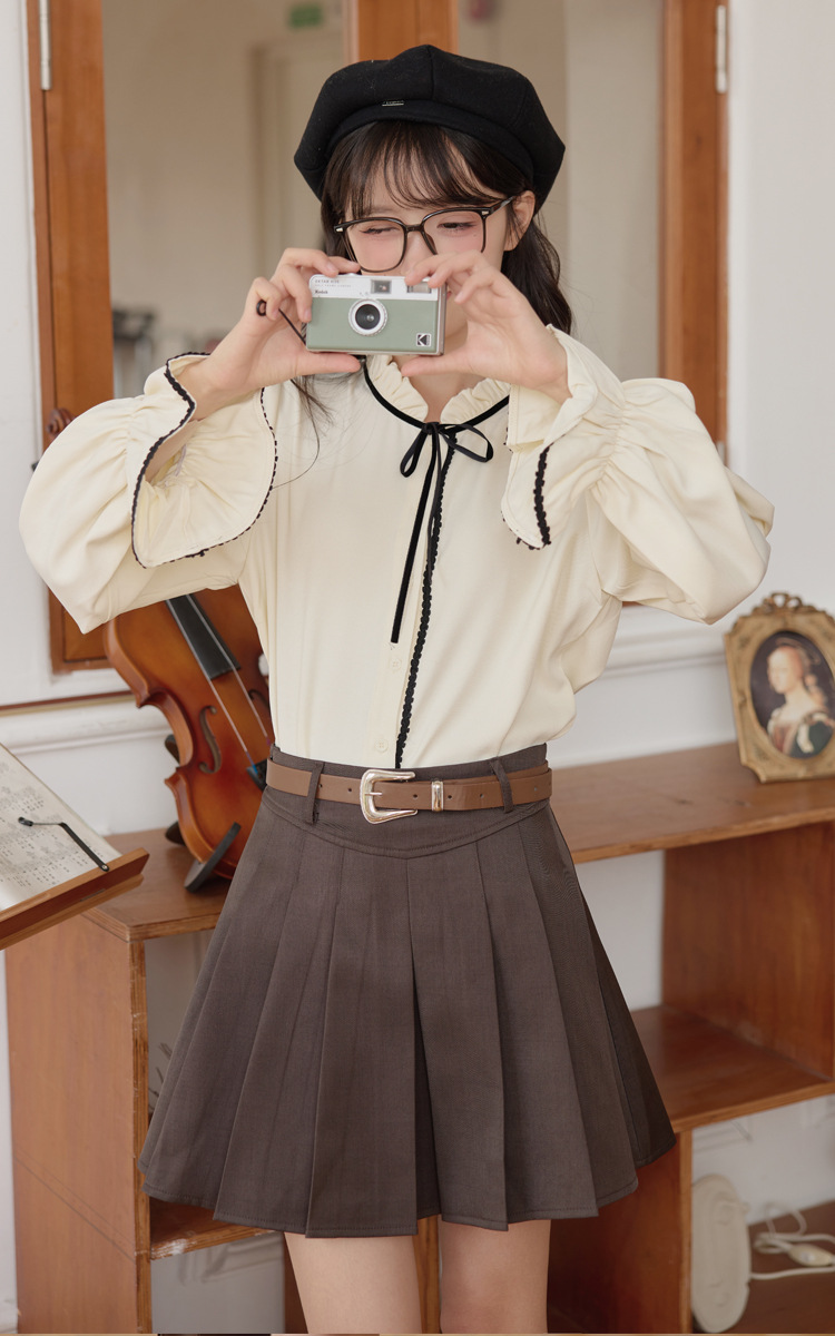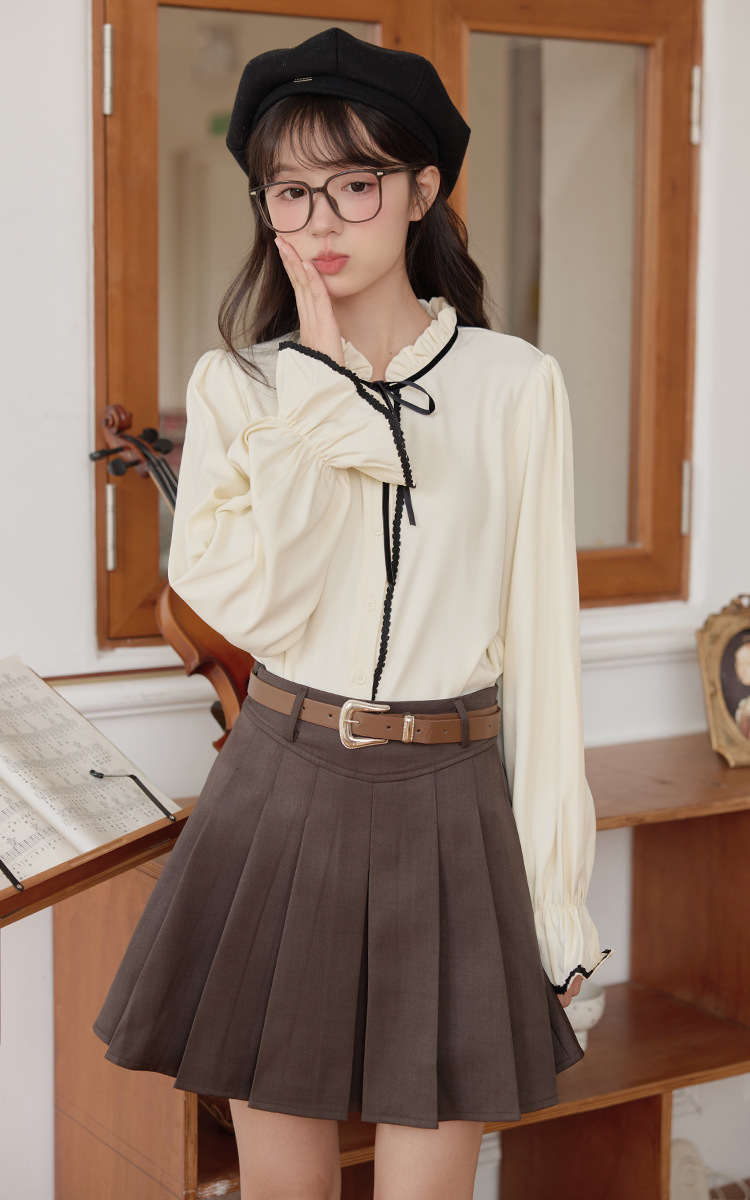 봄 2025 새로운 프랑스 스타일 레트로 높은 허리 슬리밍 디자인 주름 치마 Maillard A- line 치마 여성스토어 가기