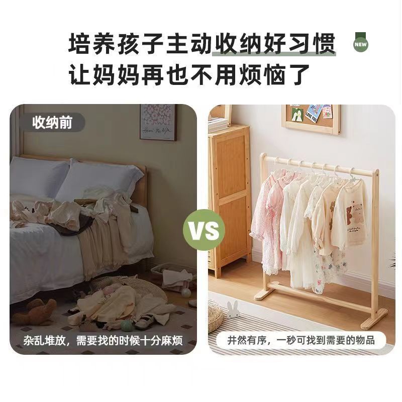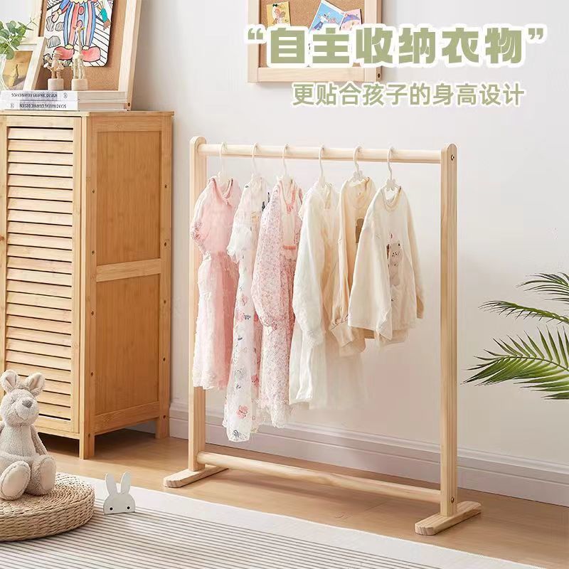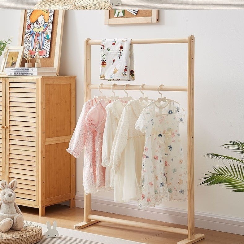 옷 랙 어린이 바닥 단단한 나무 옷걸이 침실 코트 랙 가정용 침대 옆 옷 간단한 보관 랙