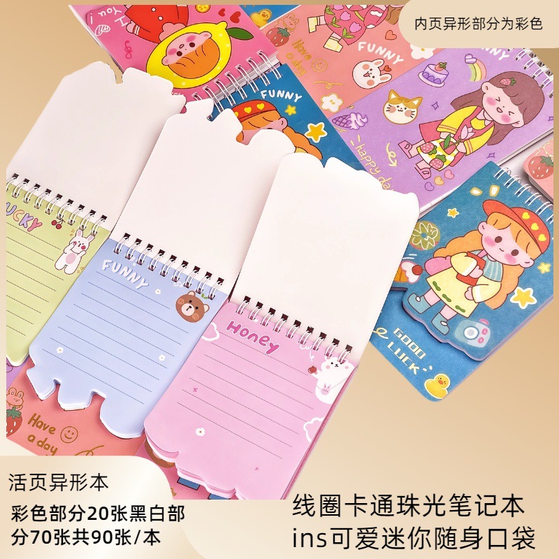 코일 만화 진주 빛 노트북 Ins 귀여운 미니 휴대용 포켓 메모장 학생 선물 책스토어 가기