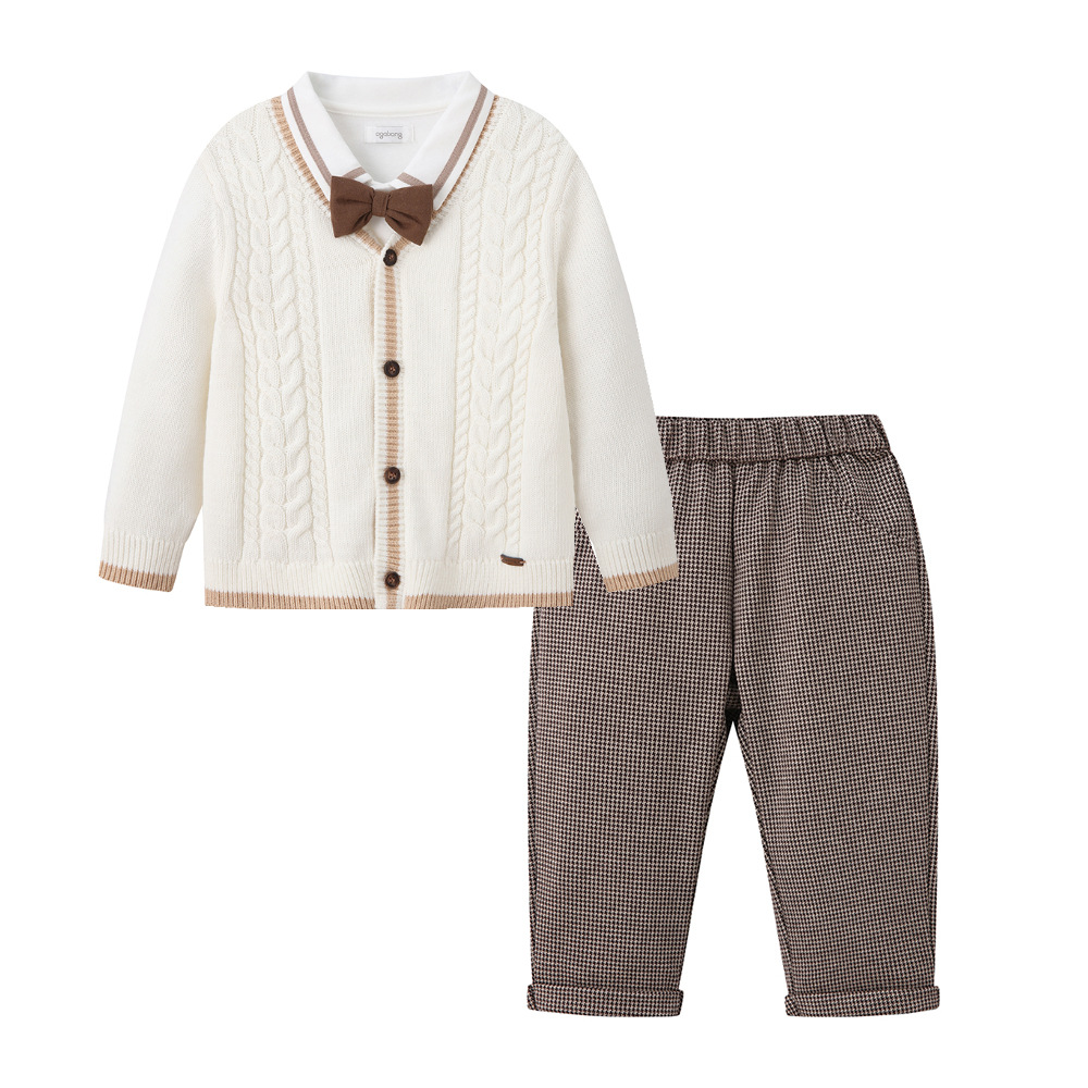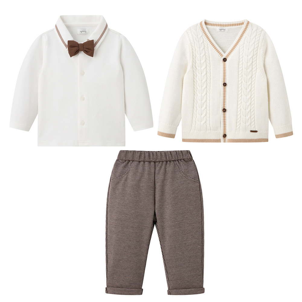 국경 간 봄 새 소년 아기 세트 잘 생긴 니트 카디건 3 종 세트 긴팔 바지 학교 스타일 아동복