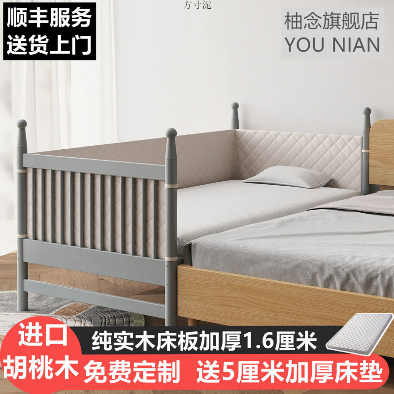 호두 어린이 침대 결합 큰 침대 가드 레일 싱글 침대 솔리드 우드 침대 아기 작은 침대 침대 아기 폭 넓은 침대스토어 가기