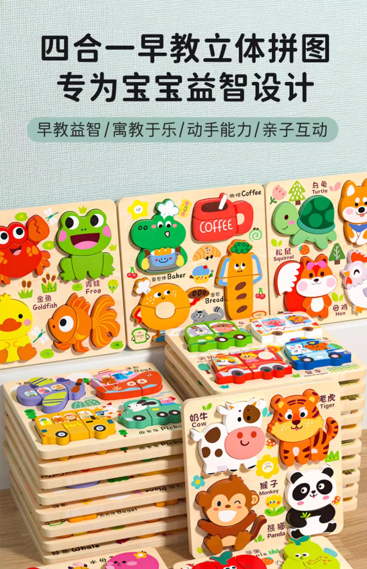 3 차원 퍼즐 몬테소리 유아 교육 3 ~ 6 세 어린이 수제 장난감 선물 장난감 아기 나무 매칭 퍼즐 보드스토어 가기