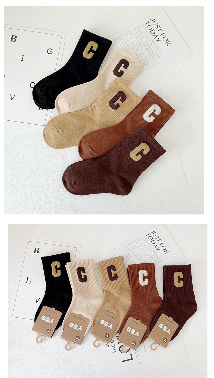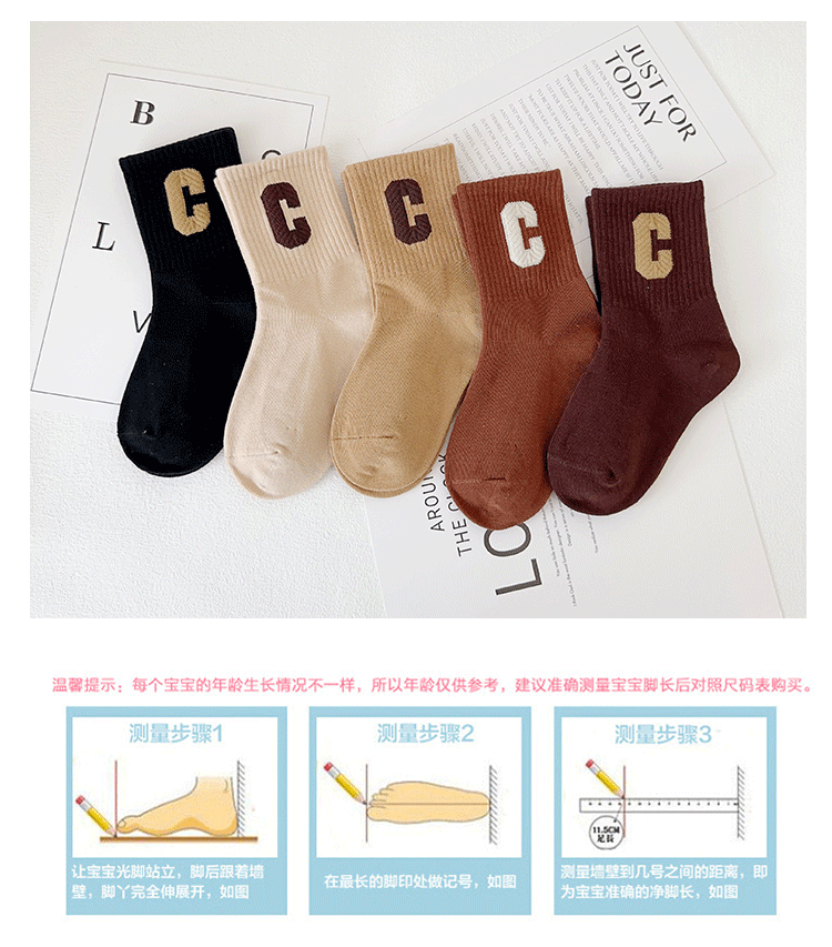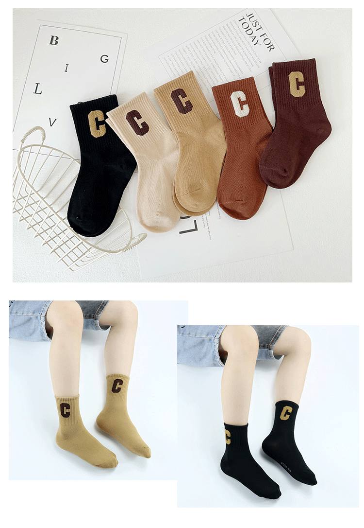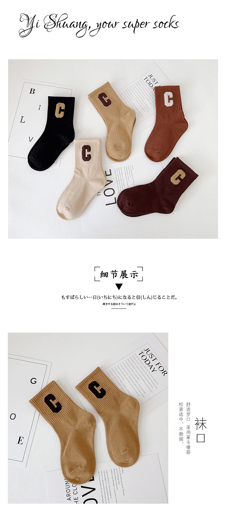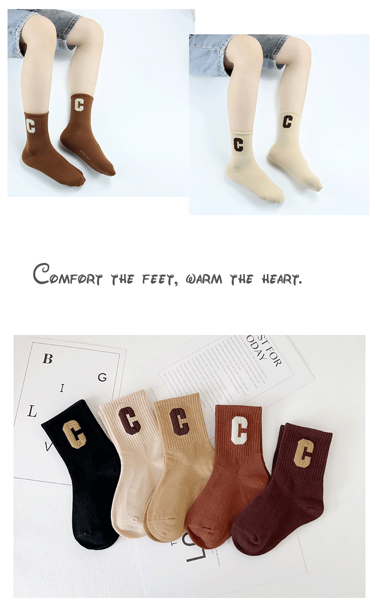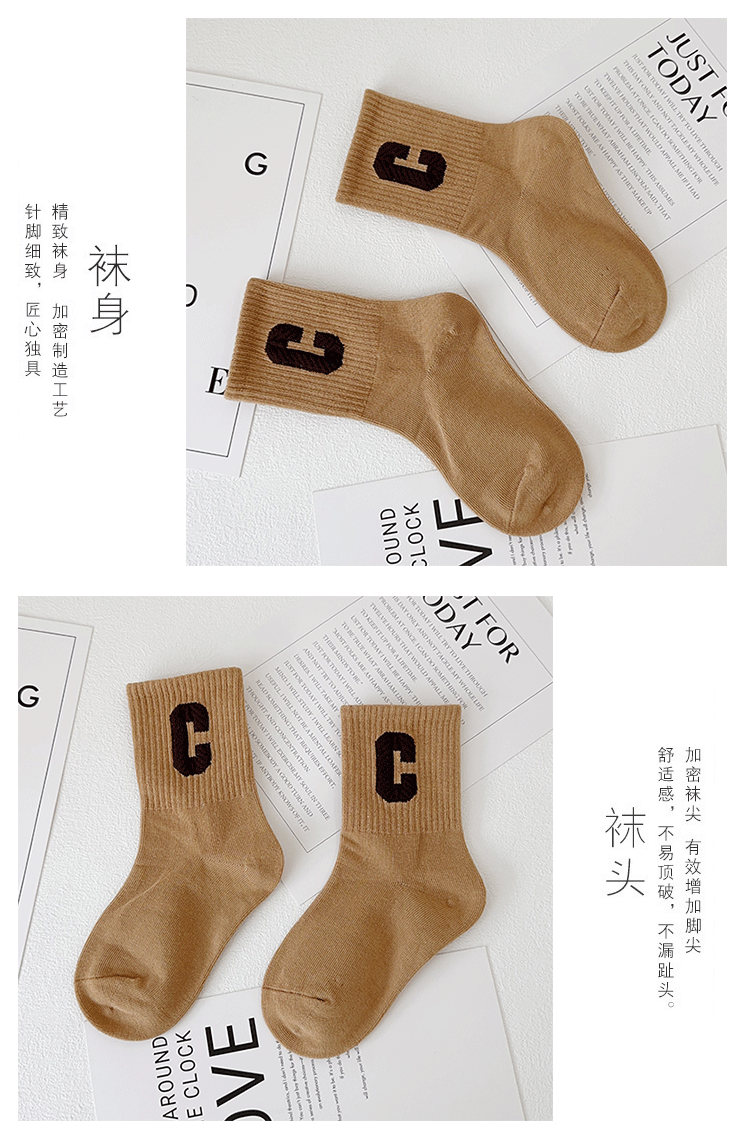 어린이 양말의 이쌍 가을과 겨울 새로운 한국 스타일 C 편지 미드 튜브 양말 빗 코튼 다크 브라운 스타일 큰 어린이를위한 스포츠 양말스토어 가기