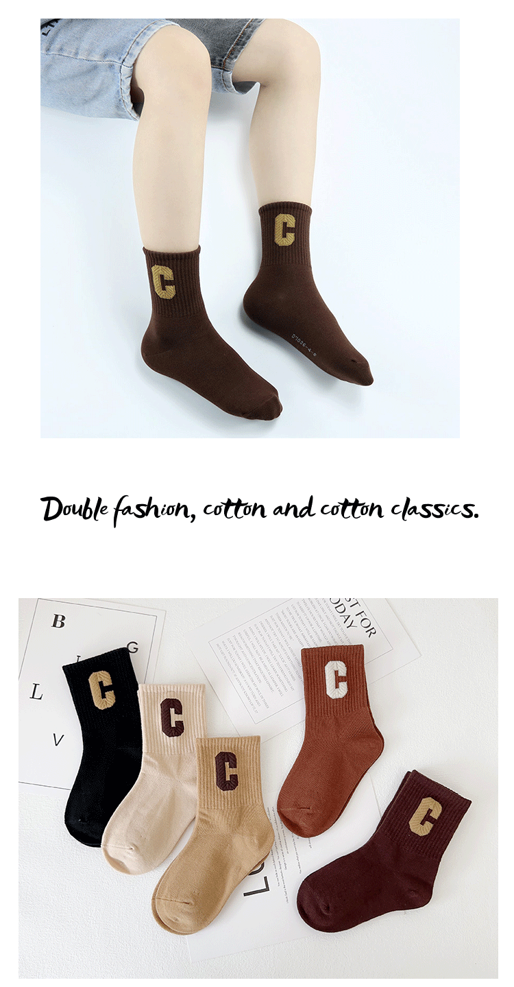 어린이 양말의 이쌍 가을과 겨울 새로운 한국 스타일 C 편지 미드 튜브 양말 빗 코튼 다크 브라운 스타일 큰 어린이를위한 스포츠 양말