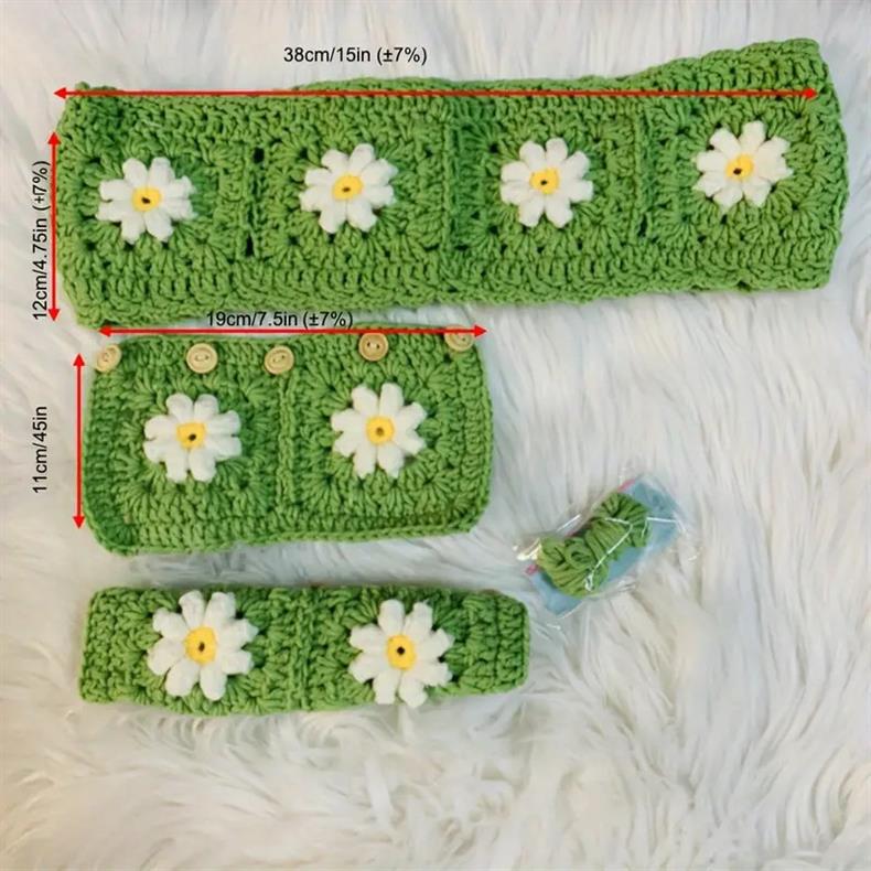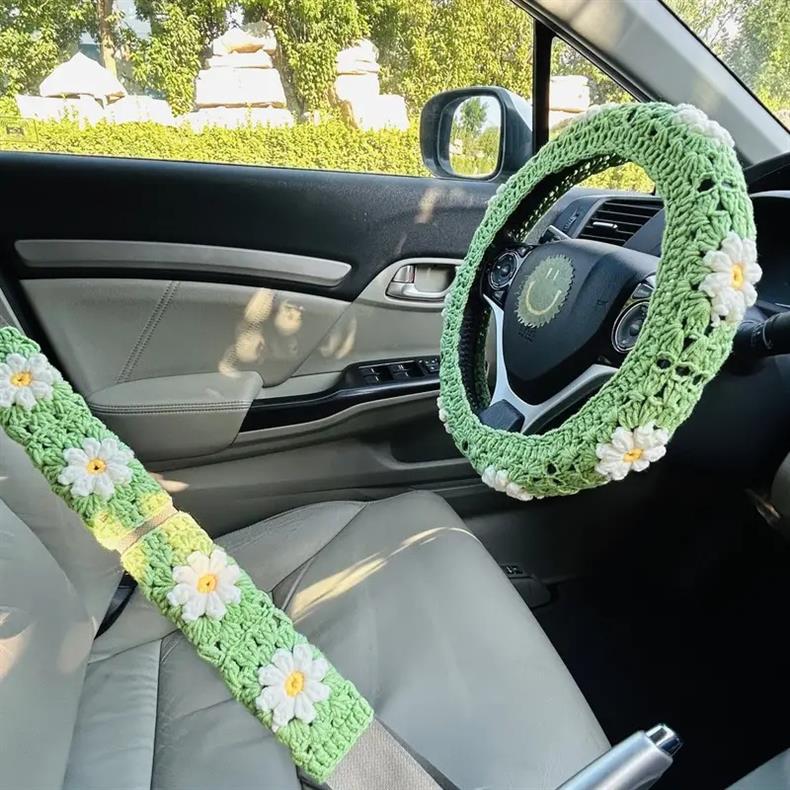 새로운 국경 아마존 수제 니트 플라워 올 매치 스티어링 휠 커버 자동차 인테리어 벨트 커버 미끄럼 방지 커버