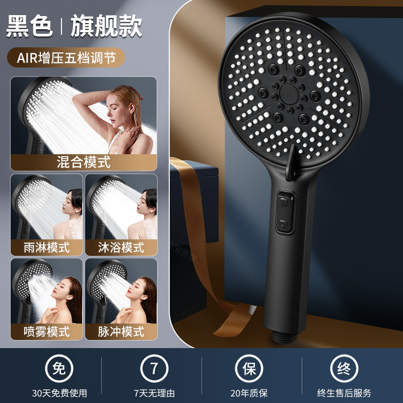 • [우아한 블랙* 5단 물 배출구] 터빈 커널 부스터 샤워 헤드