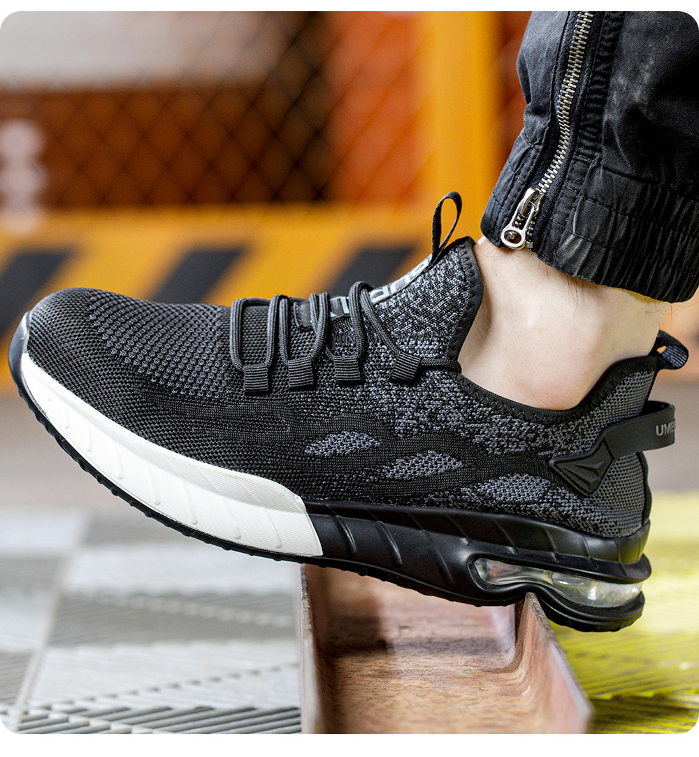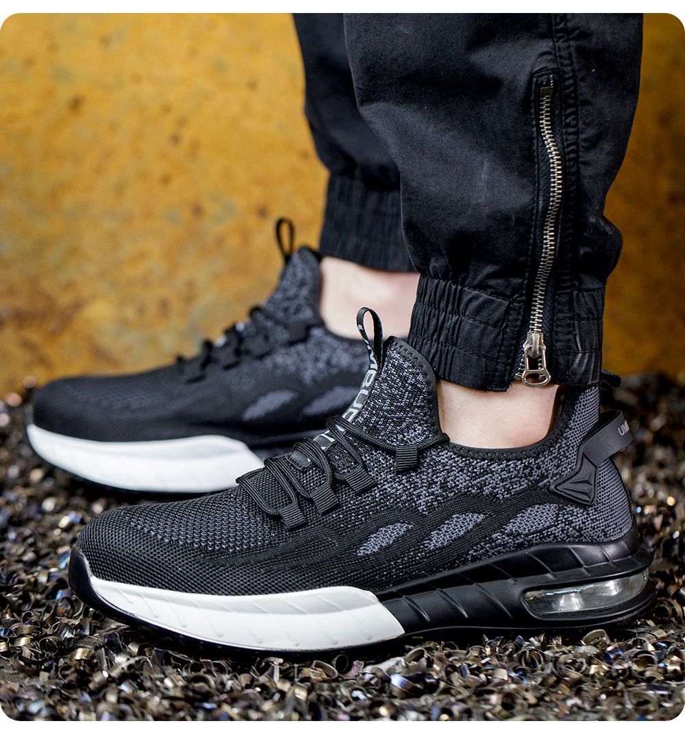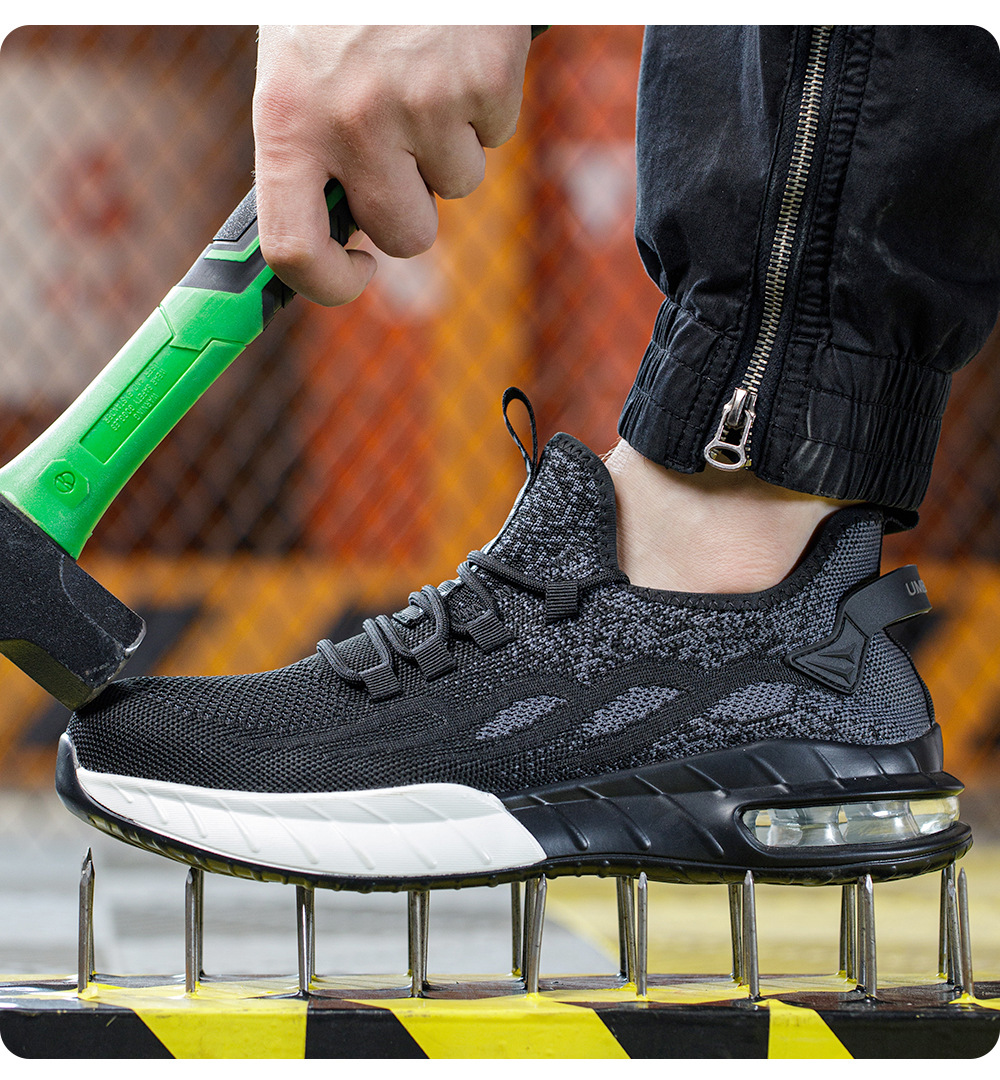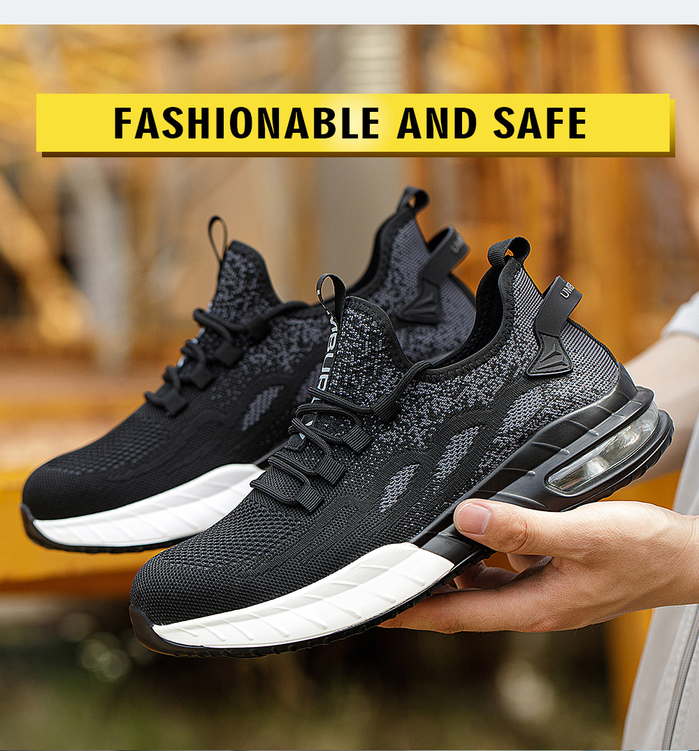 국경 간 새로운 스매싱 방지 및 피어싱 방지 안전 신발 스틸 발가락 안전 신발 플라이 짠 통기성 작업 신발 경량 및 내마모성