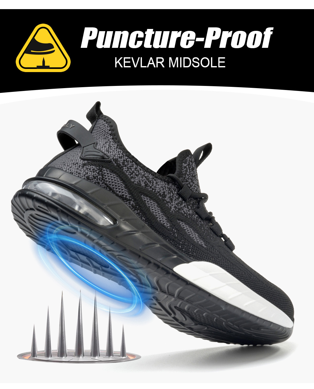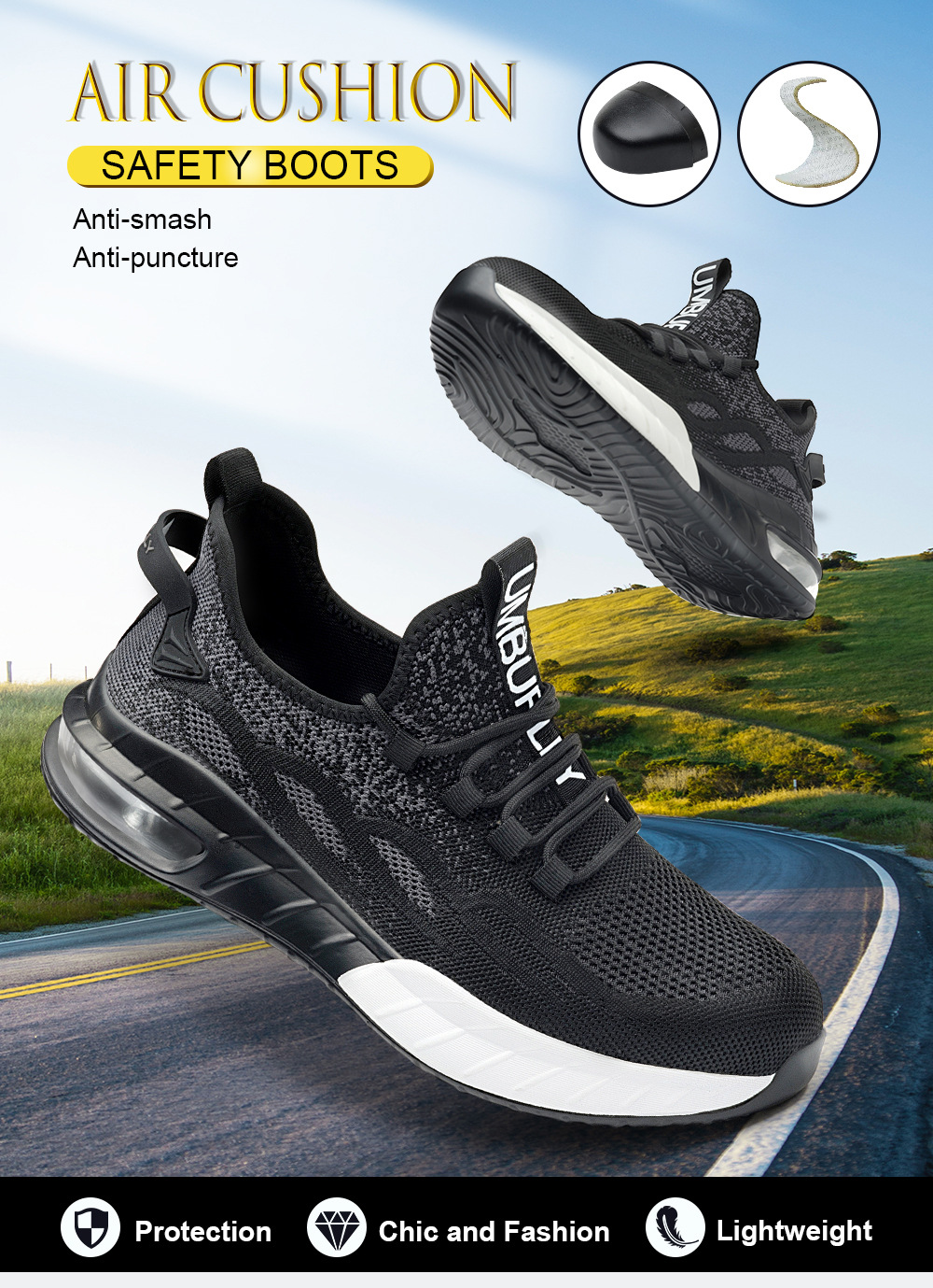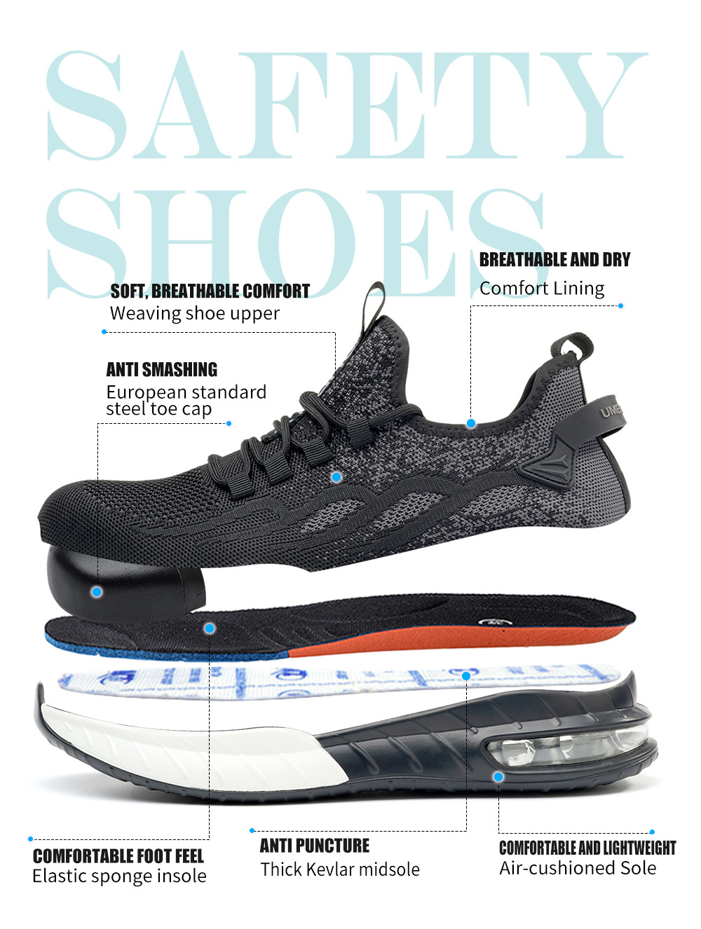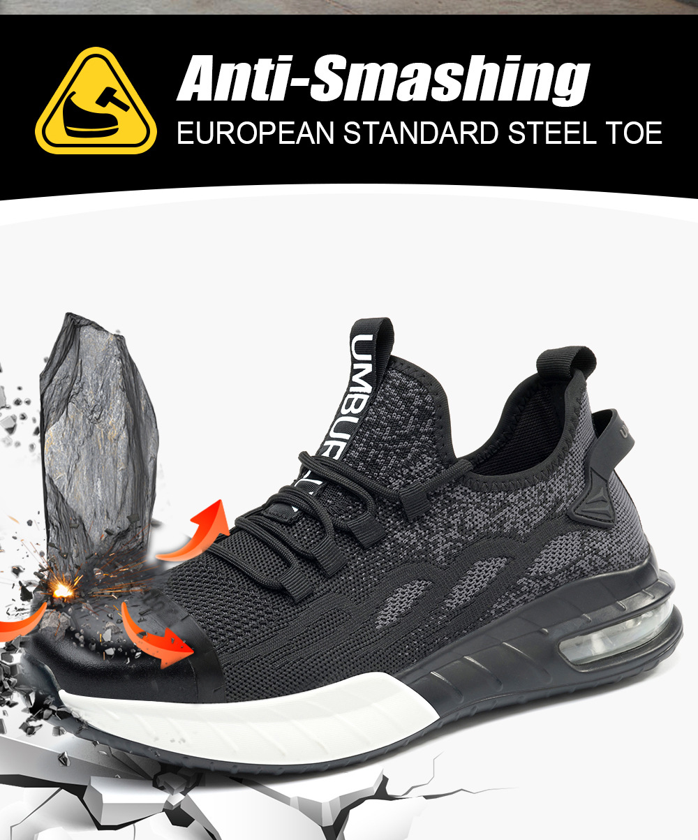 국경 간 새로운 스매싱 방지 및 피어싱 방지 안전 신발 스틸 발가락 안전 신발 플라이 짠 통기성 작업 신발 경량 및 내마모성