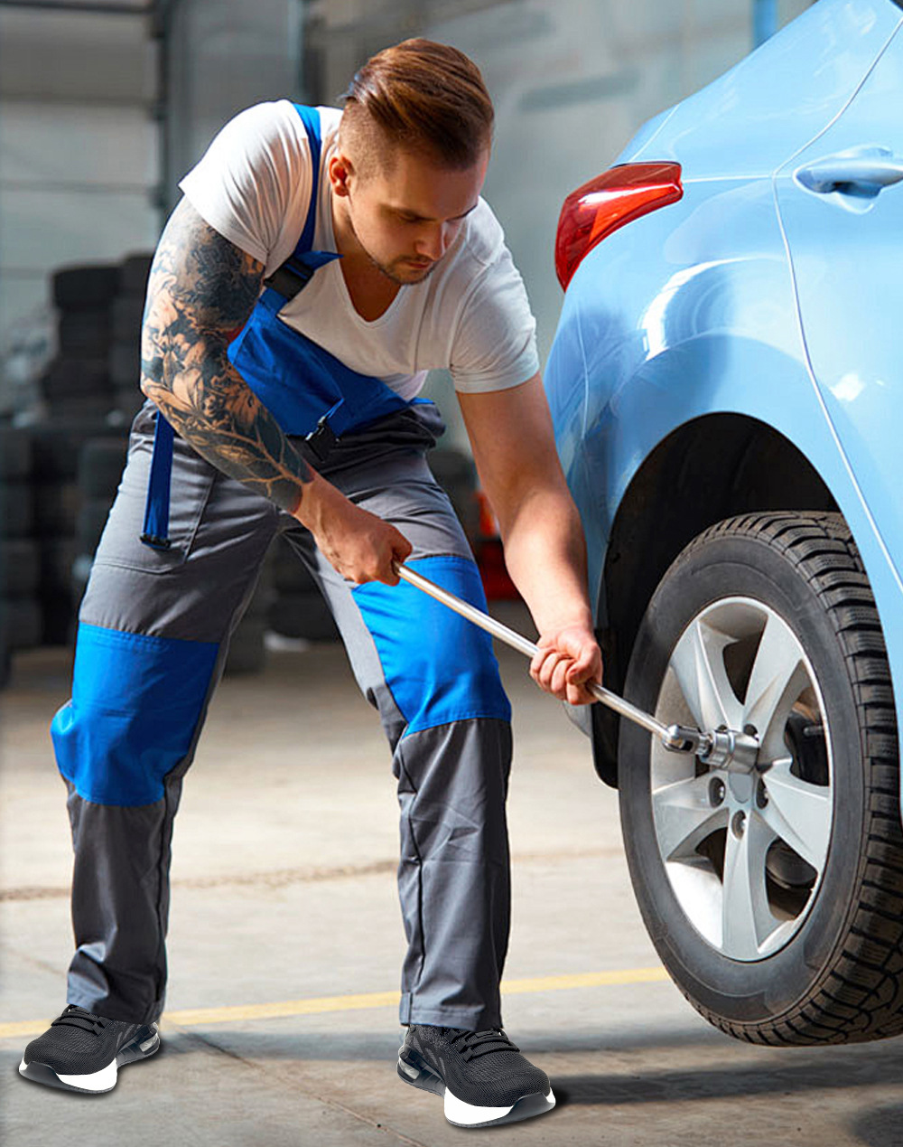 국경 간 새로운 스매싱 방지 및 피어싱 방지 안전 신발 스틸 발가락 안전 신발 플라이 짠 통기성 작업 신발 경량 및 내마모성스토어 가기