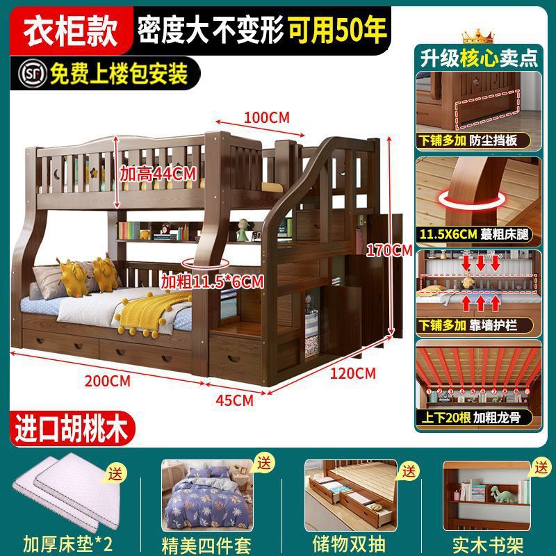 호두 침대 이층 침대 가득 차있는 단단한 나무 어머니 침대 옷장 높고 낮은 침대 2 층 다기능 어린이 침대 침대 침대 침대스토어 가기