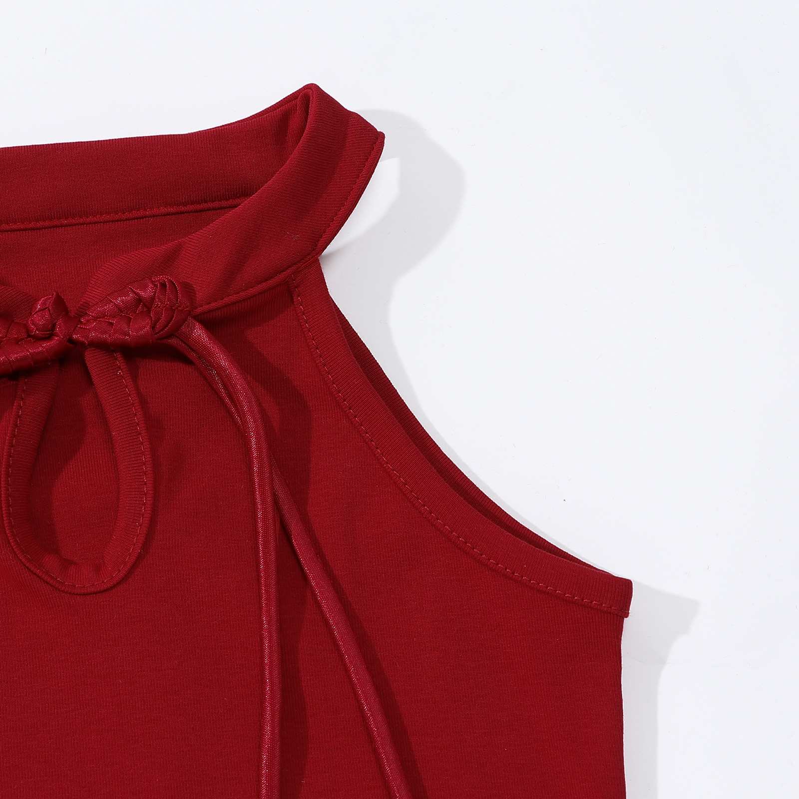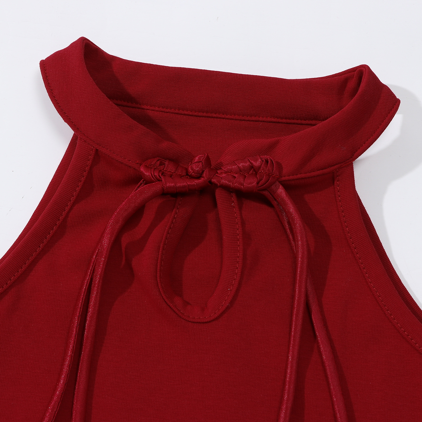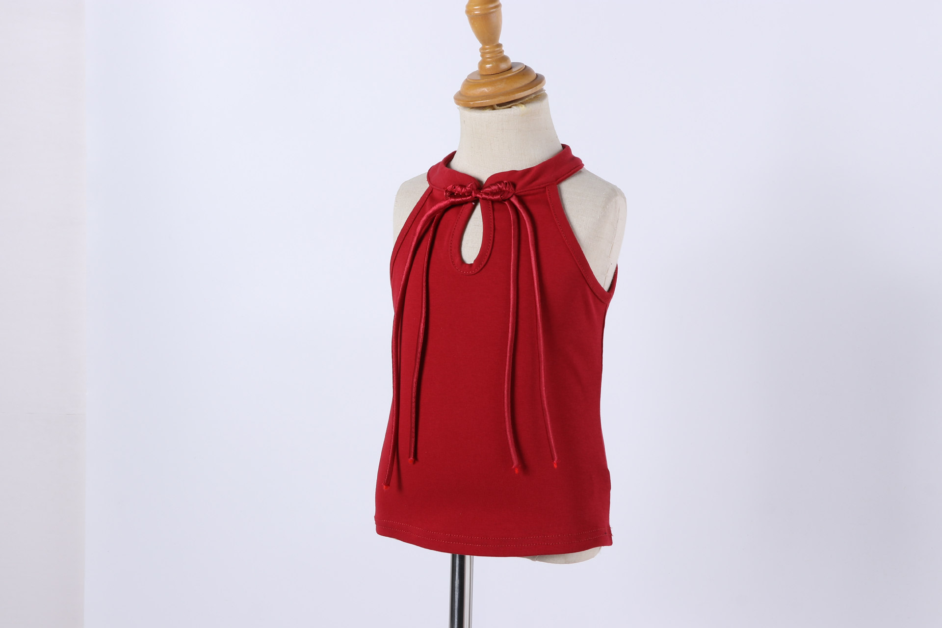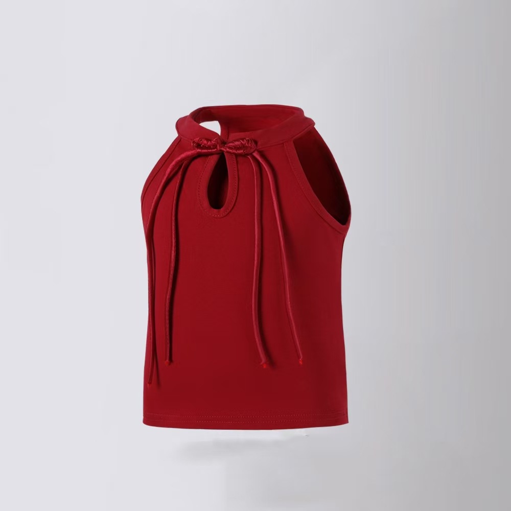 • 버건디 버튼 조끼 티셔츠