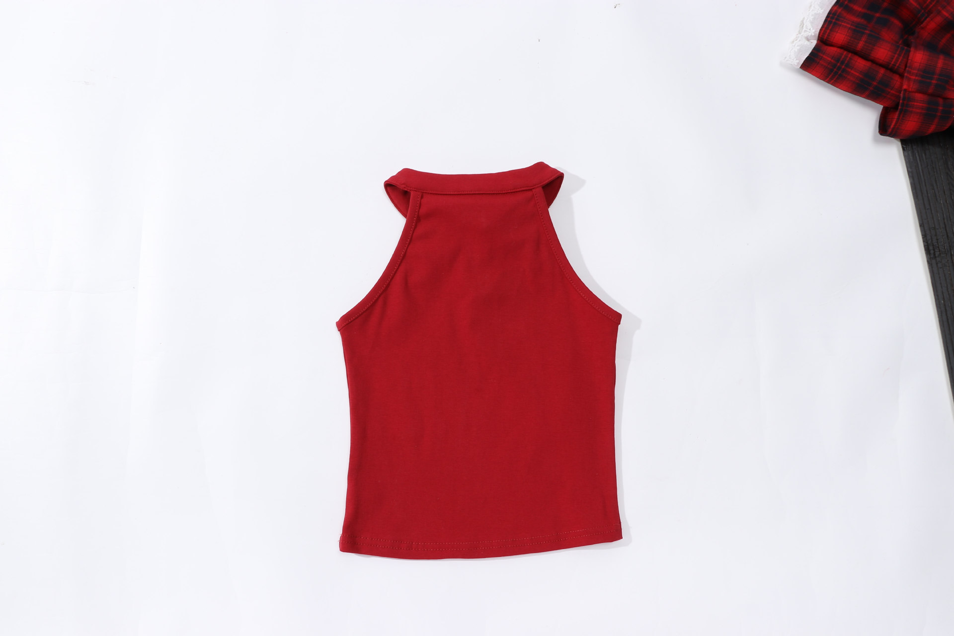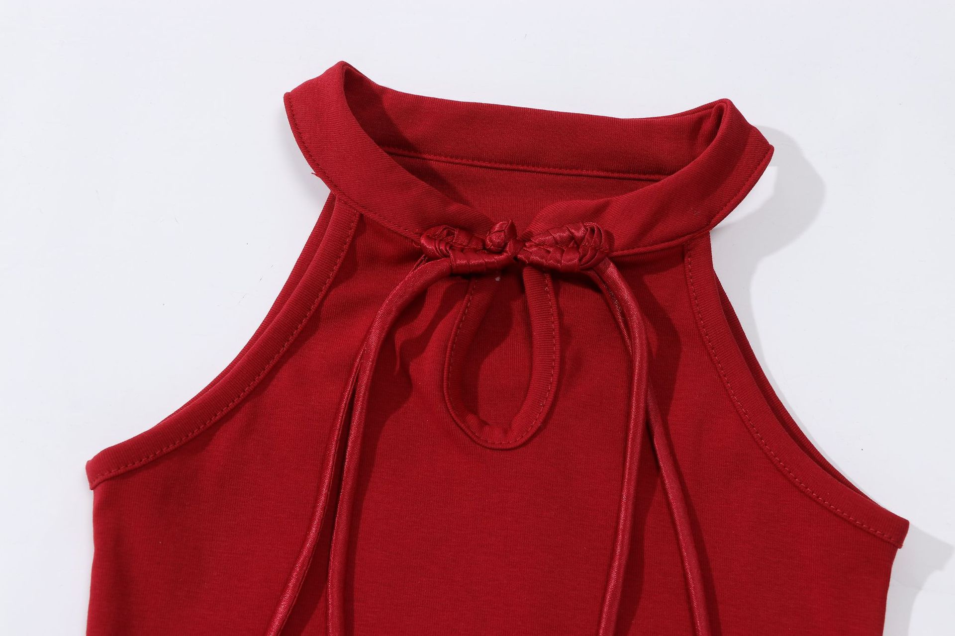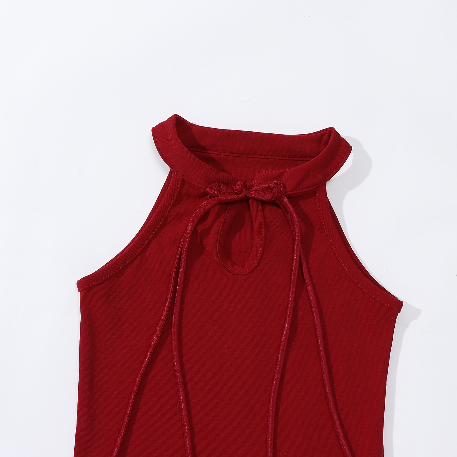 • 버건디 버튼 조끼 티셔츠