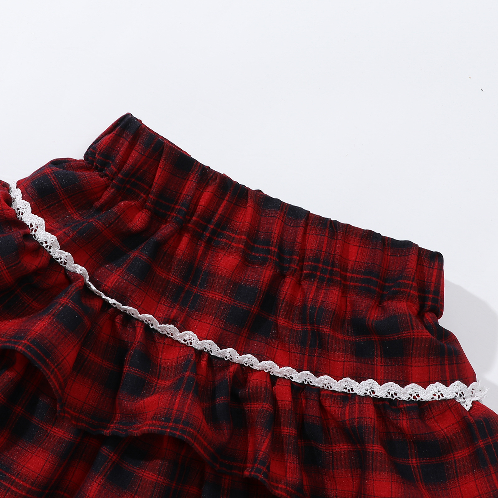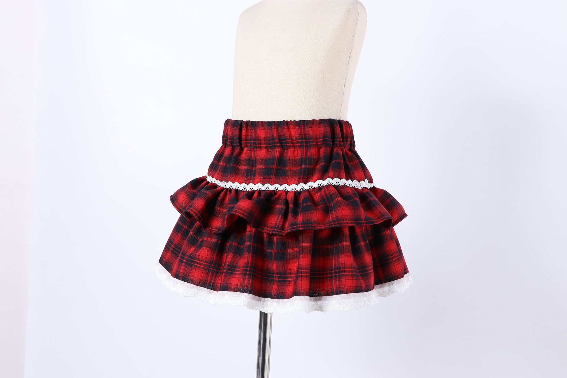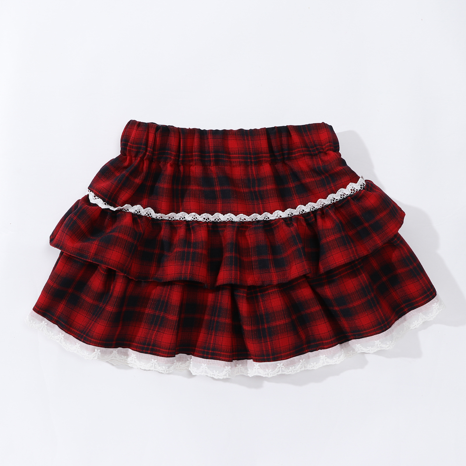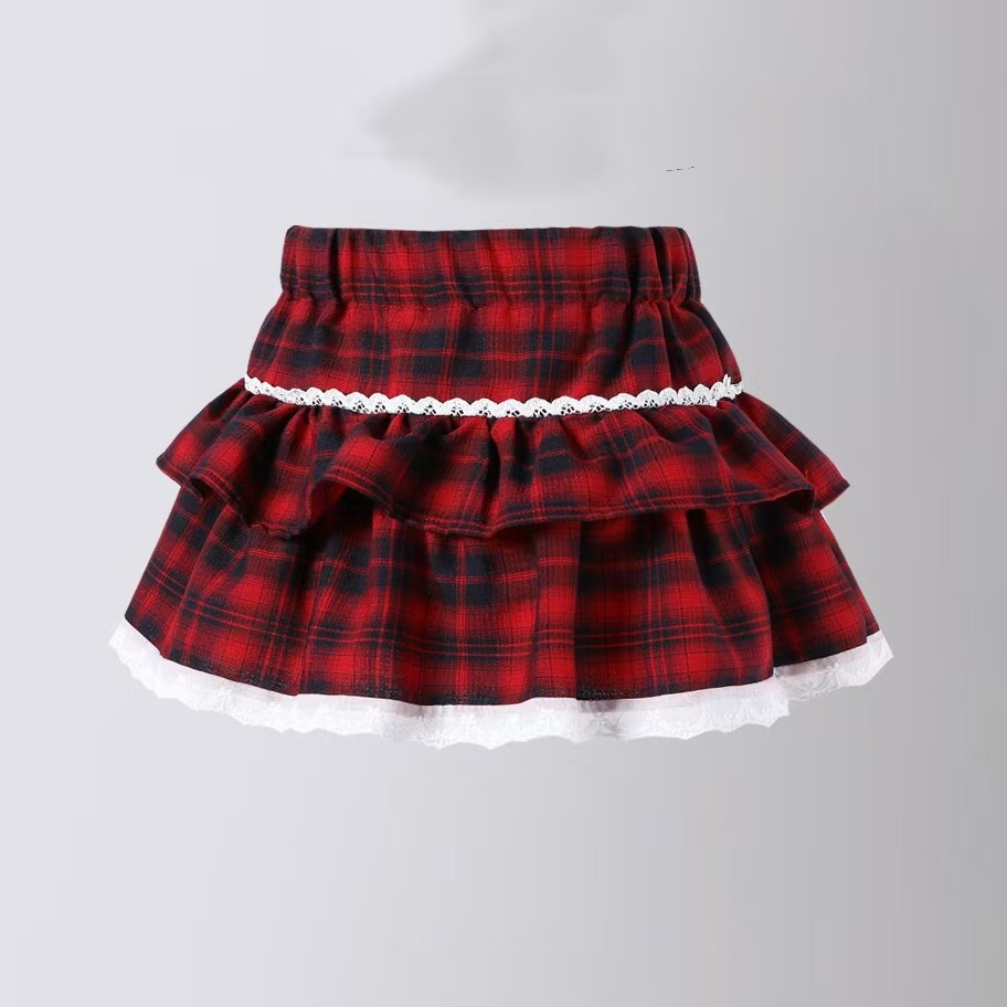 레이스 푹신한 격자 무늬 주름 치마 소녀의 높은 허리 슬림 룩 짧은 스커트 느슨한 허리 니스트 스커트 달콤한 2025 새로운 도착