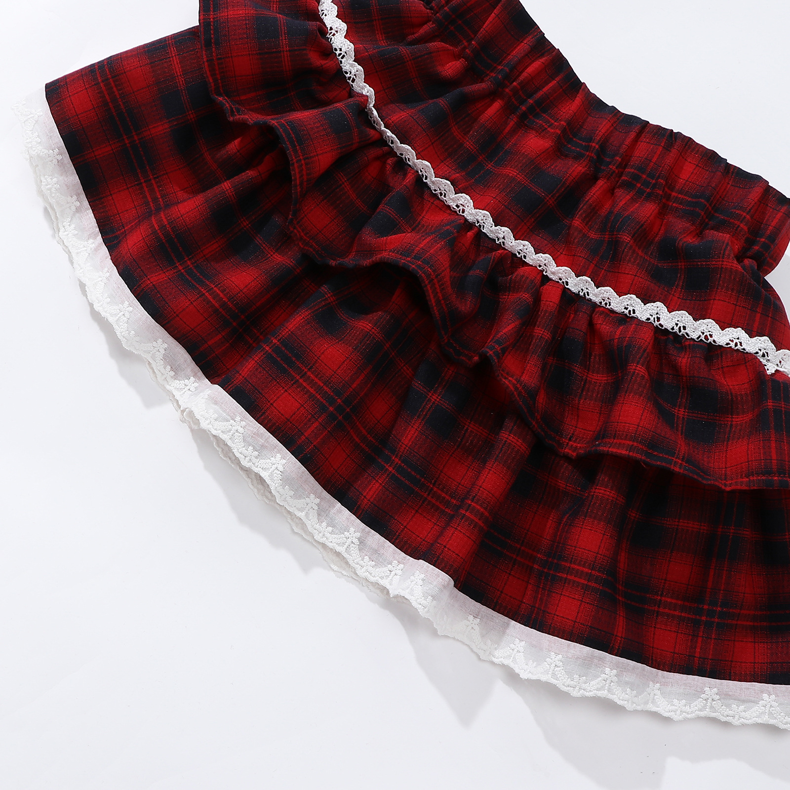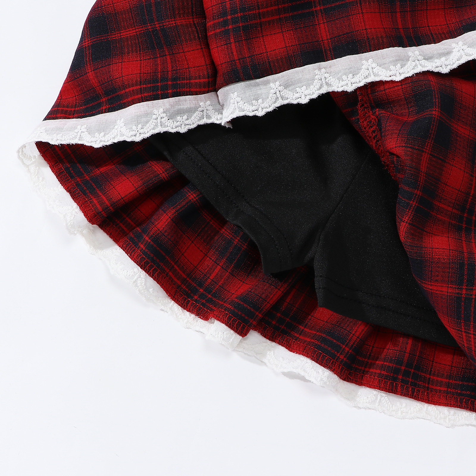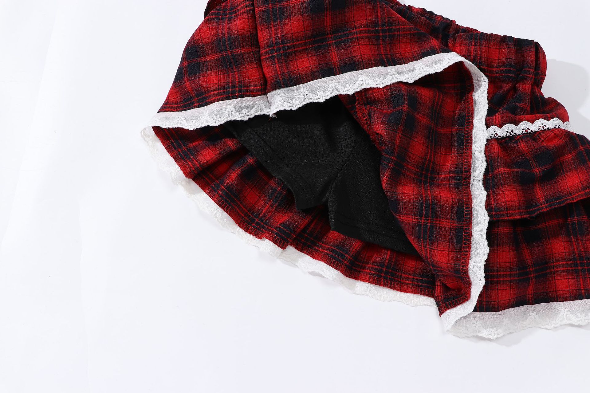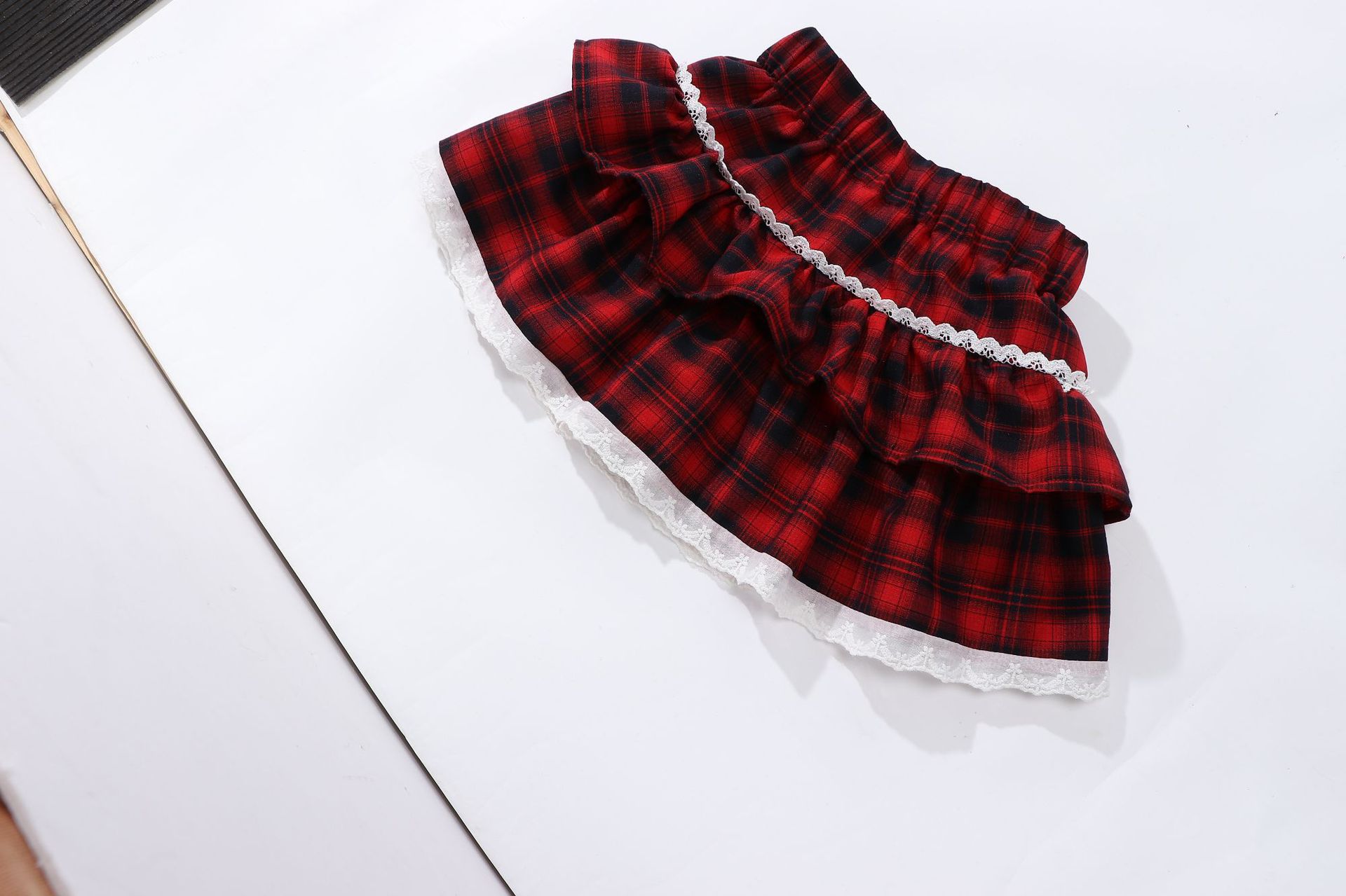 레이스 푹신한 격자 무늬 주름 치마 소녀의 높은 허리 슬림 룩 짧은 스커트 느슨한 허리 니스트 스커트 달콤한 2025 새로운 도착