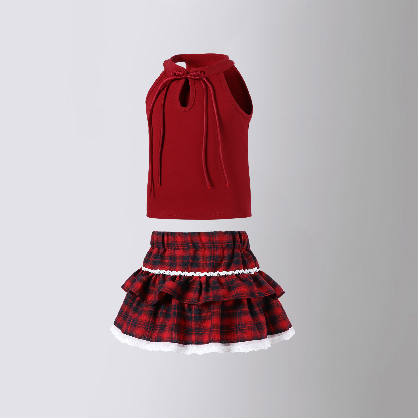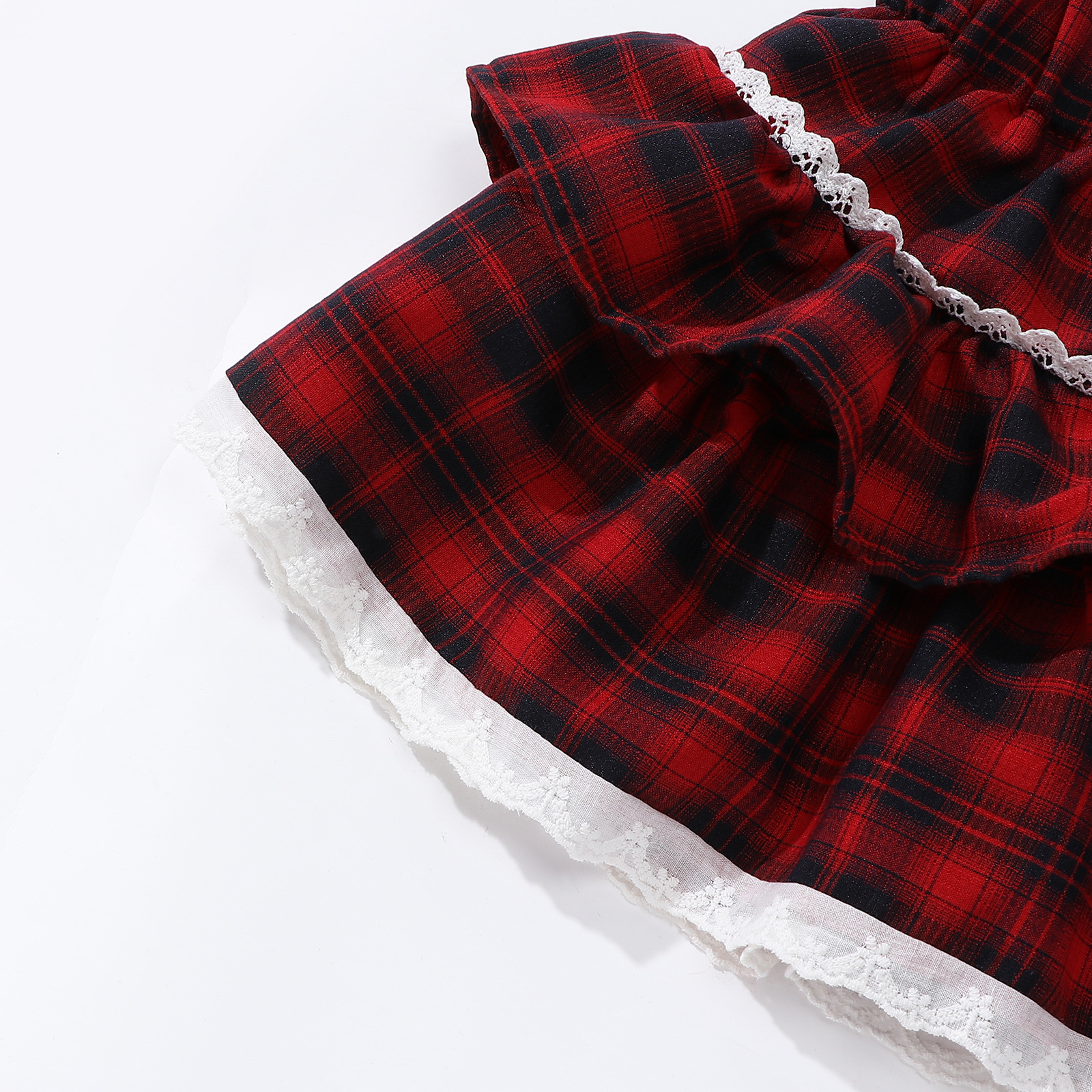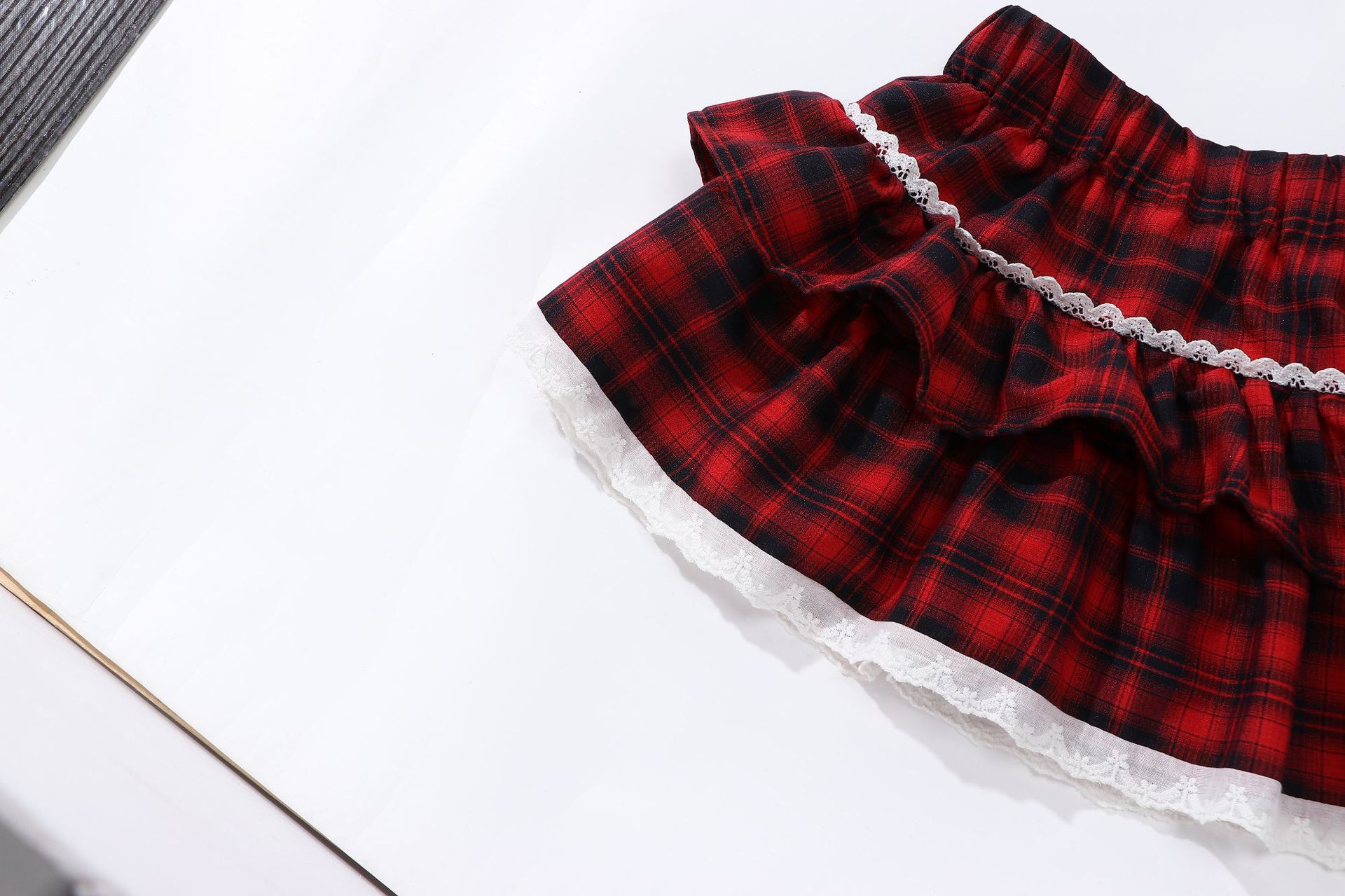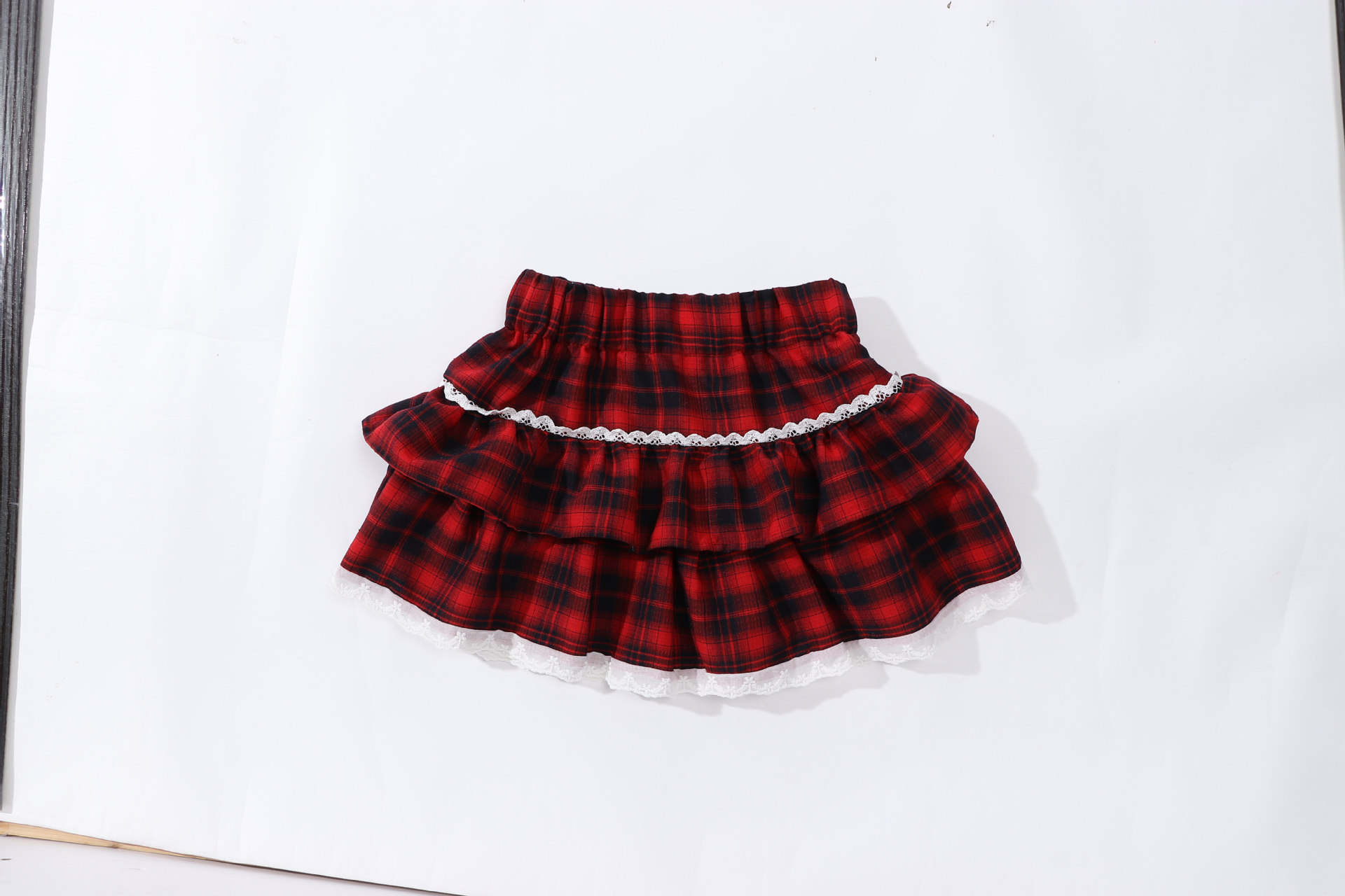 레이스 푹신한 격자 무늬 주름 치마 소녀의 높은 허리 슬림 룩 짧은 스커트 느슨한 허리 니스트 스커트 달콤한 2025 새로운 도착