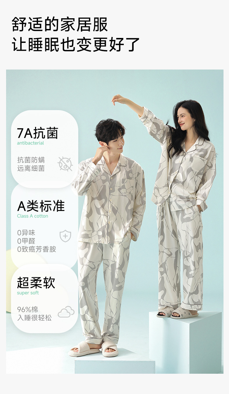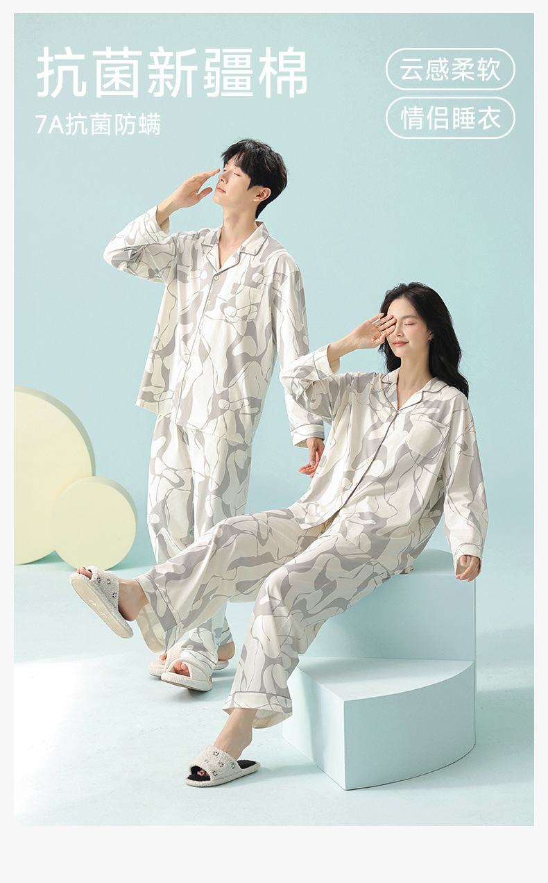 [항균성 신장면] 봄 커플 잠옷 봄 · 가을 여성 순면 긴 소매 랙 코튼 남자 홈 의류 세트스토어 가기