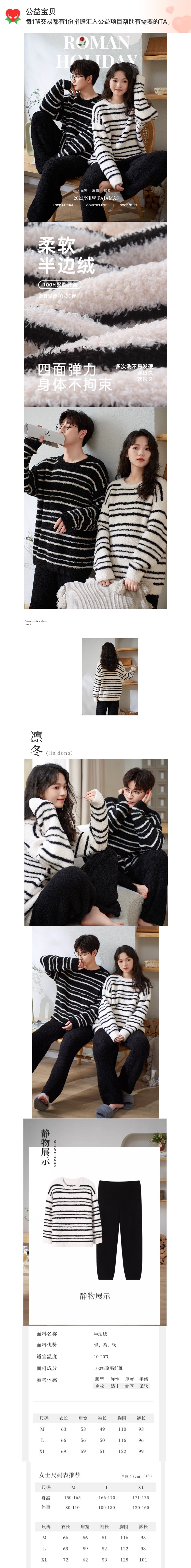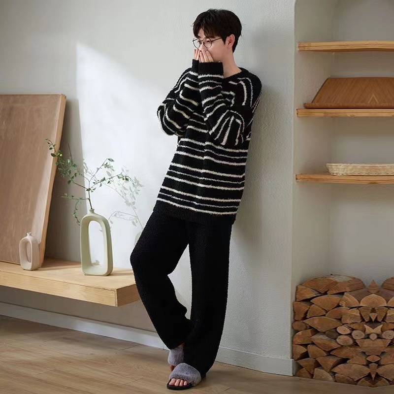 커플의 잠옷 겨울 반쪽 벨벳 기모 두꺼운 산호 벨벳 남성과 여성의 가을 및 겨울 줄무늬 따뜻한 집 옷스토어 가기