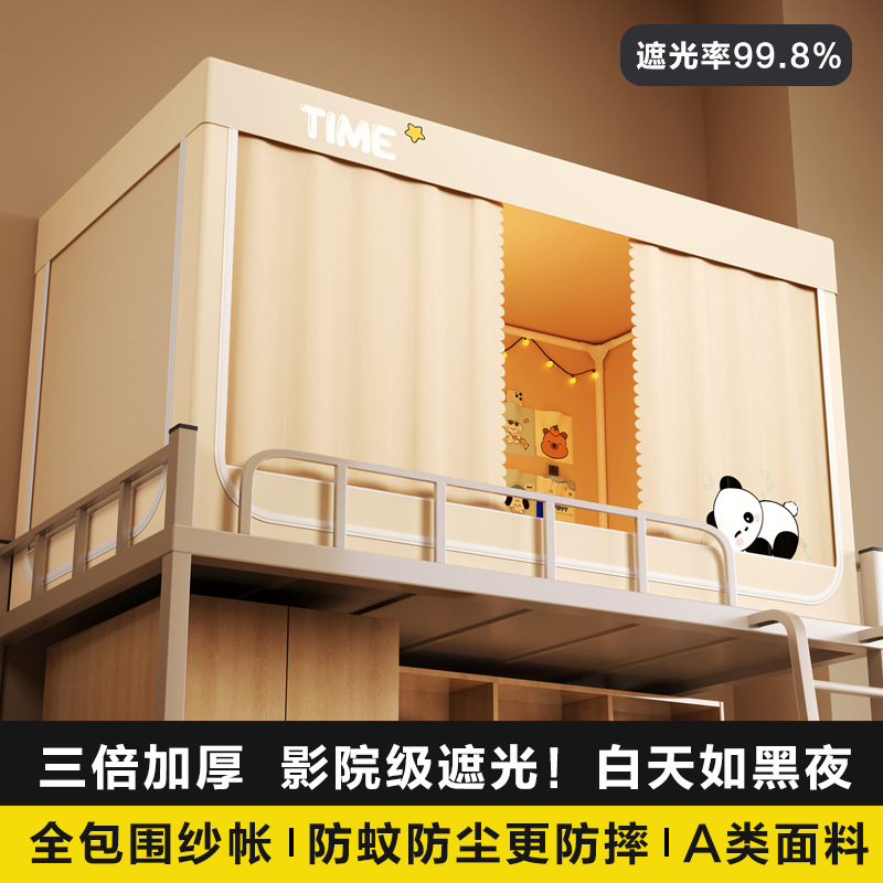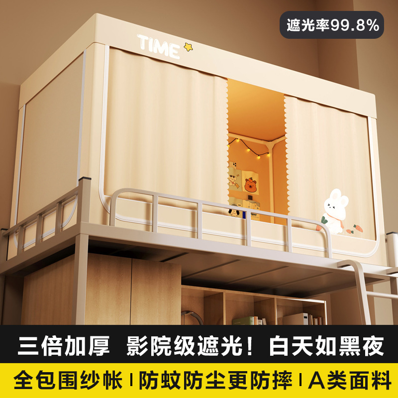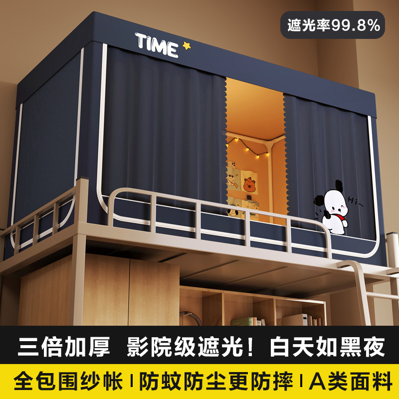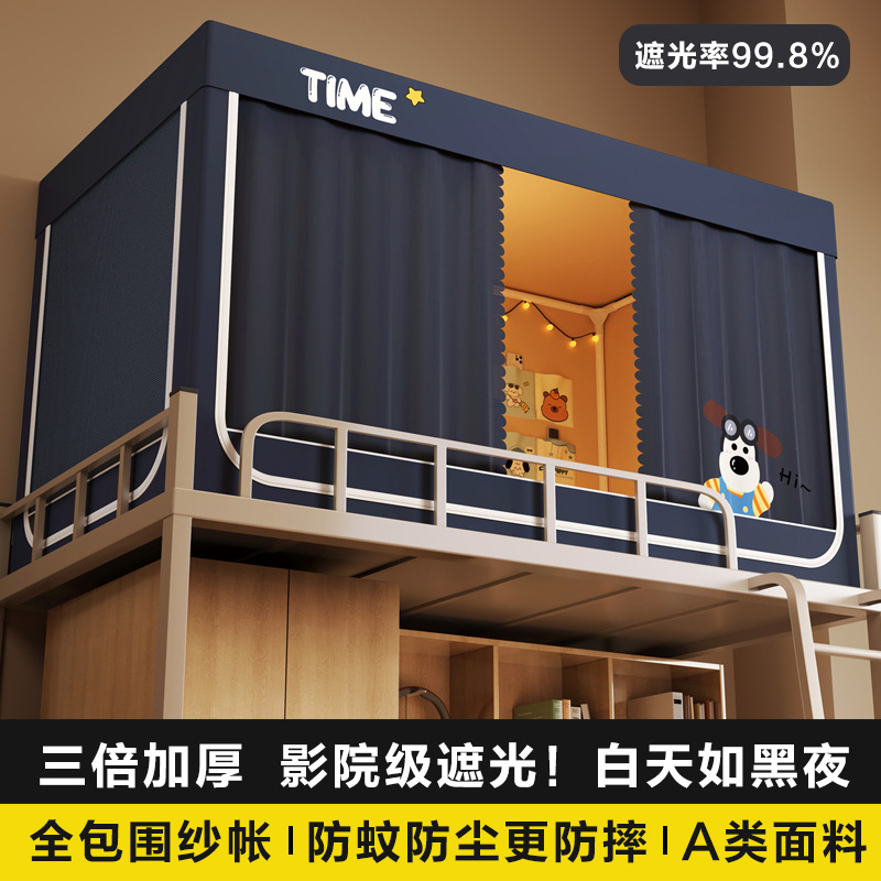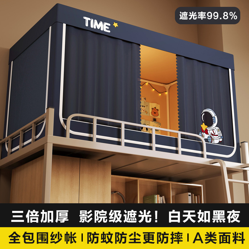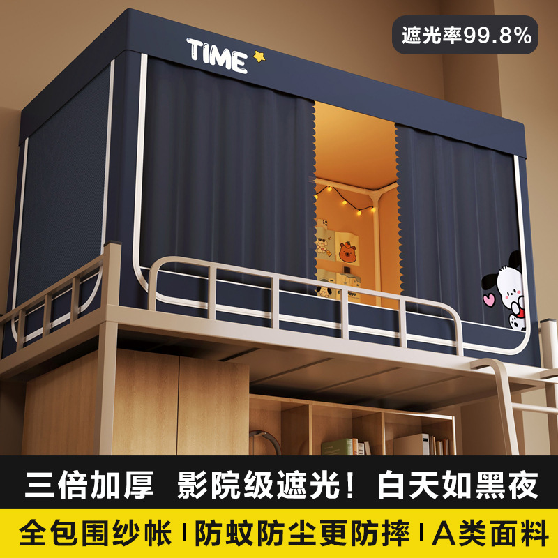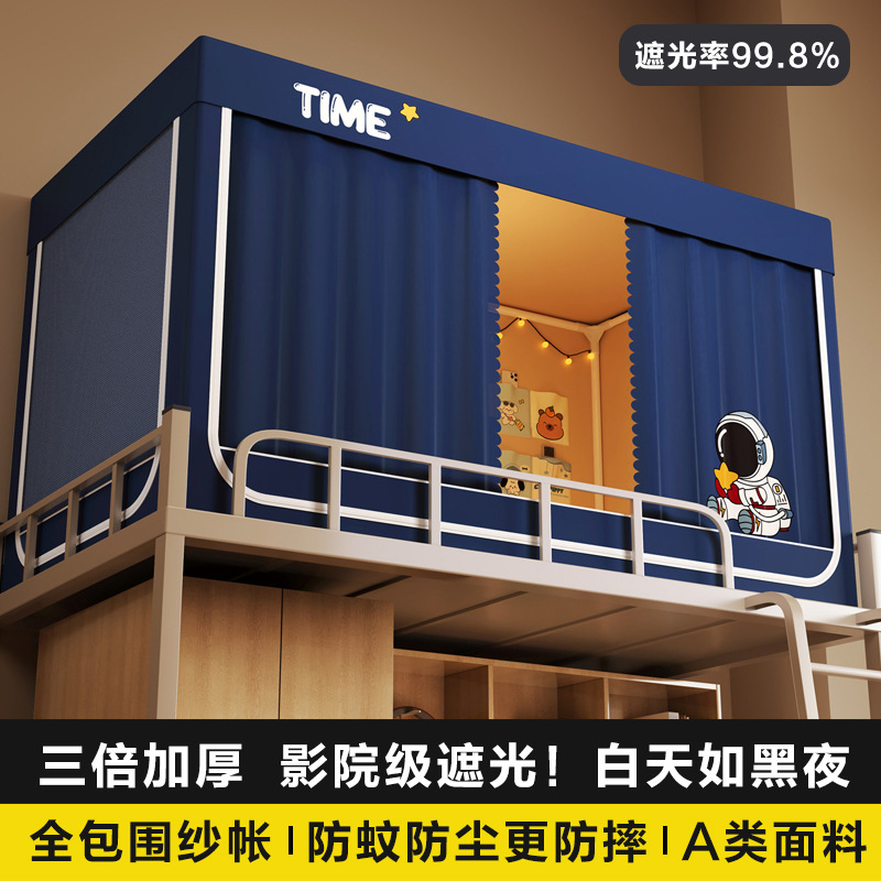 강력한 차광 모기장, 대학 기숙사 침대 커튼, 일체형 기숙사 이중 침대 범용 일체형 밀폐형 학생 침대 커튼스토어 가기