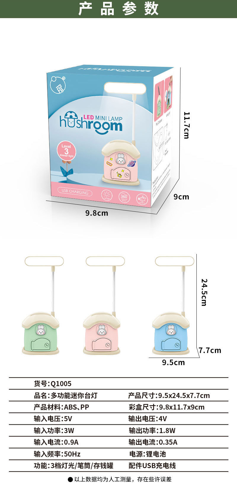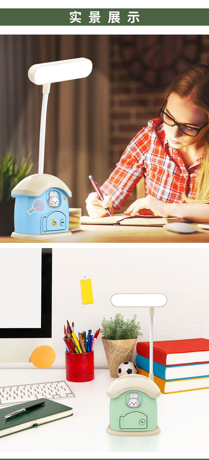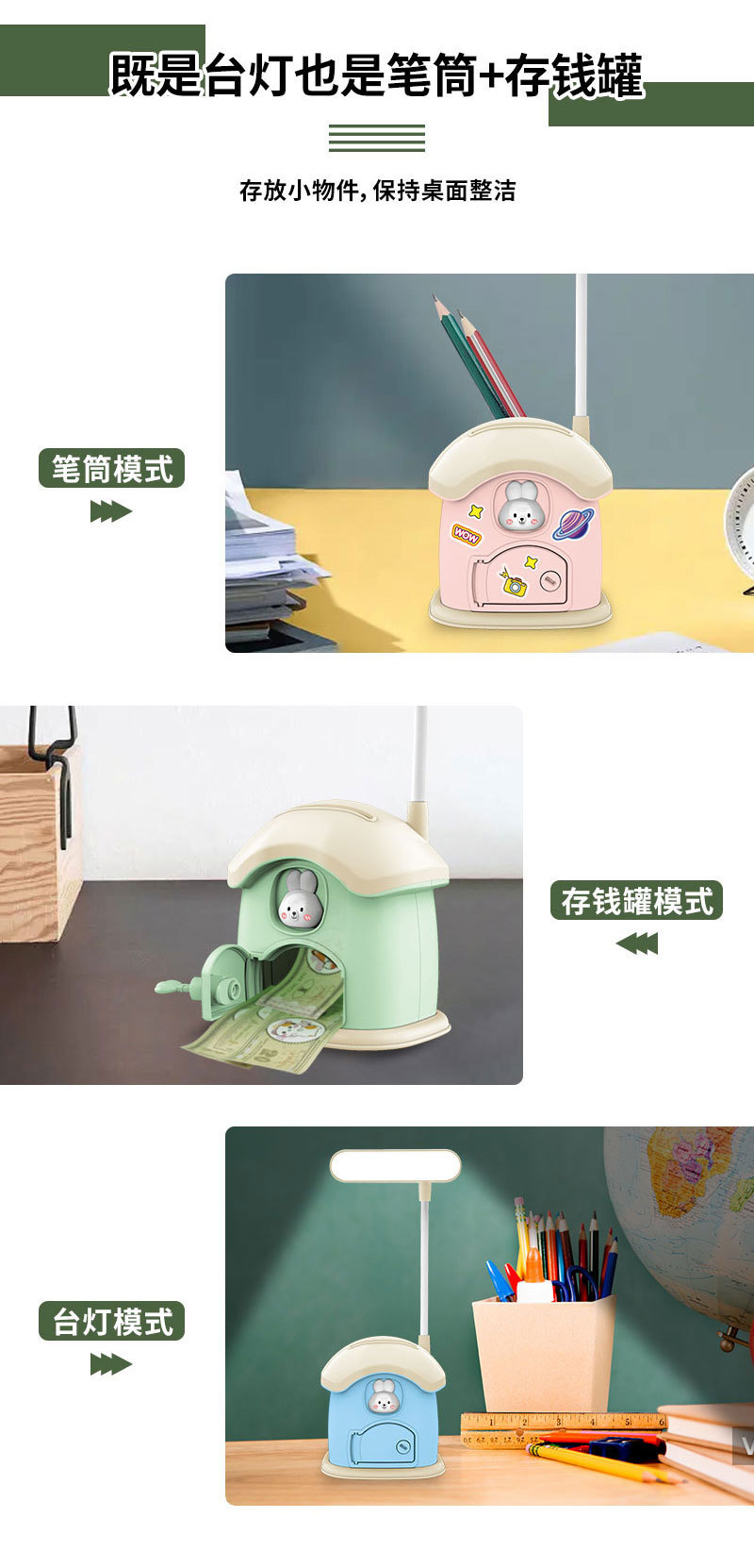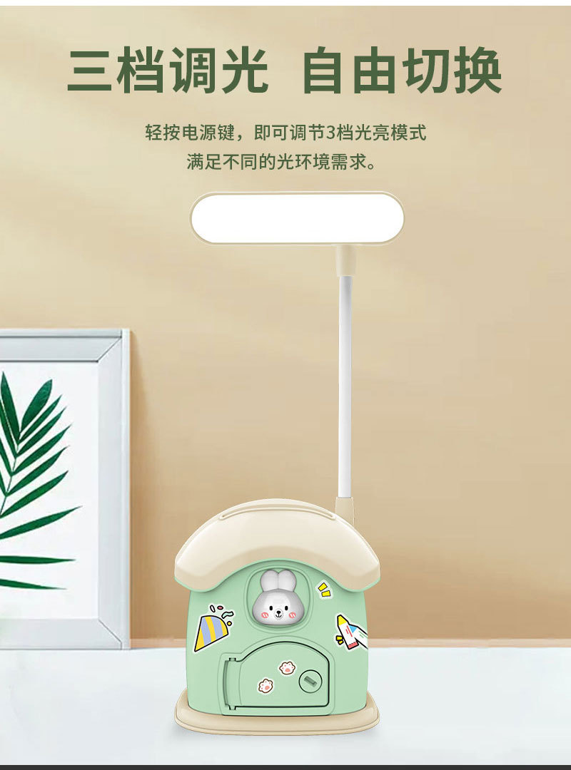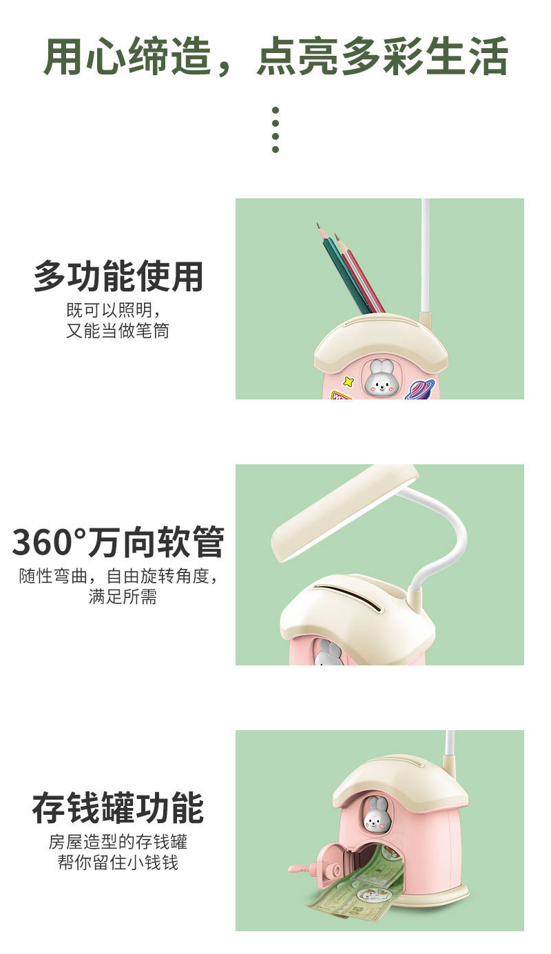 다기능 집 미니 작은 책상 램프 데스크톱 학습 독서 램프 만화 돼지 저금통 야간 조명 3 단 조정