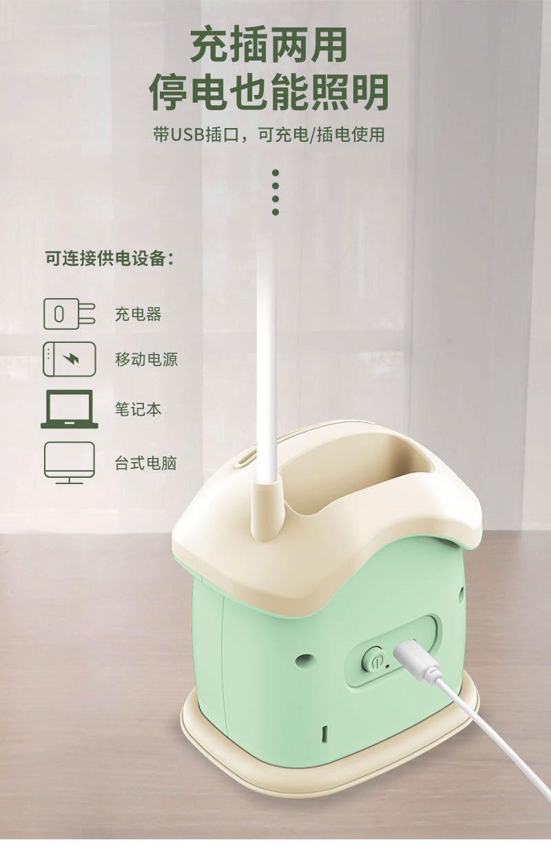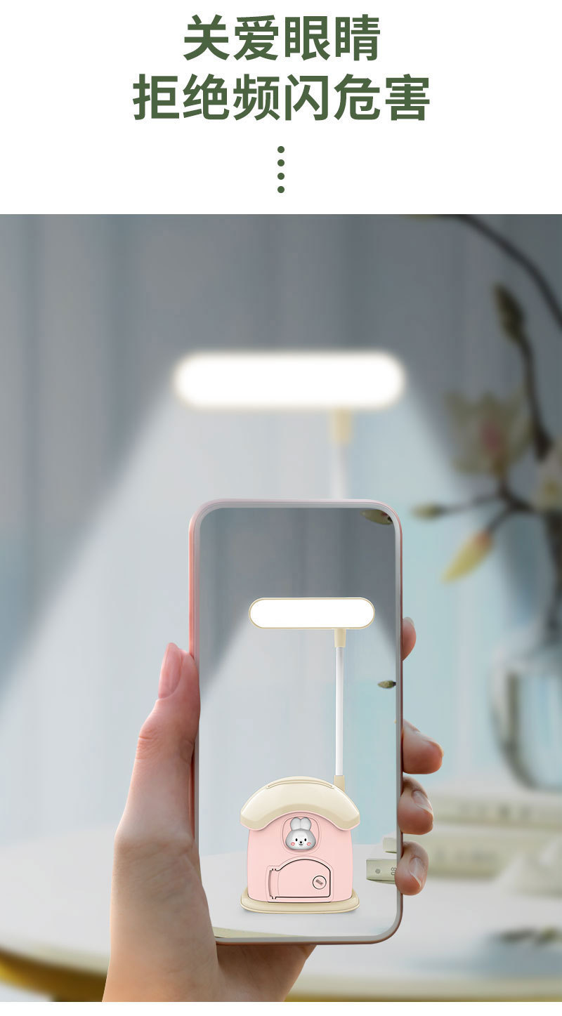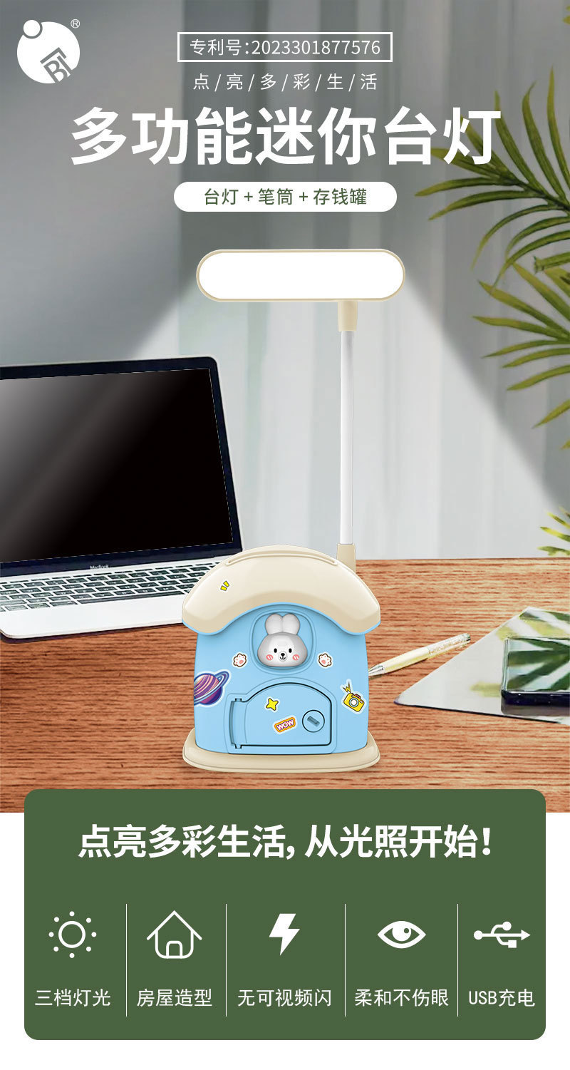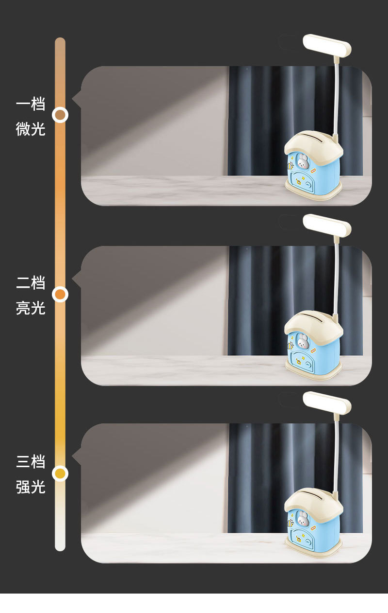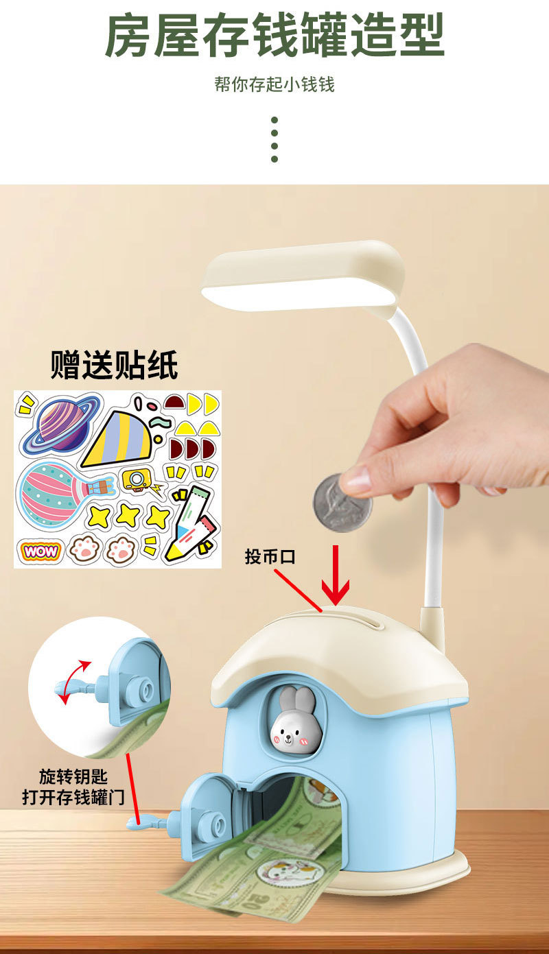 다기능 집 미니 작은 책상 램프 데스크톱 학습 독서 램프 만화 돼지 저금통 야간 조명 3 단 조정
