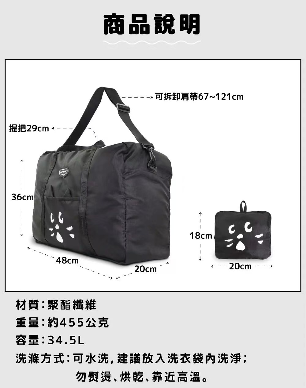 재고 놀란 고양이 만화 귀여운 접이식 대용량 수하물 가방 휴대용 여행 가방 남성과 여성의 여행 가방 피트니스 가방스토어 가기