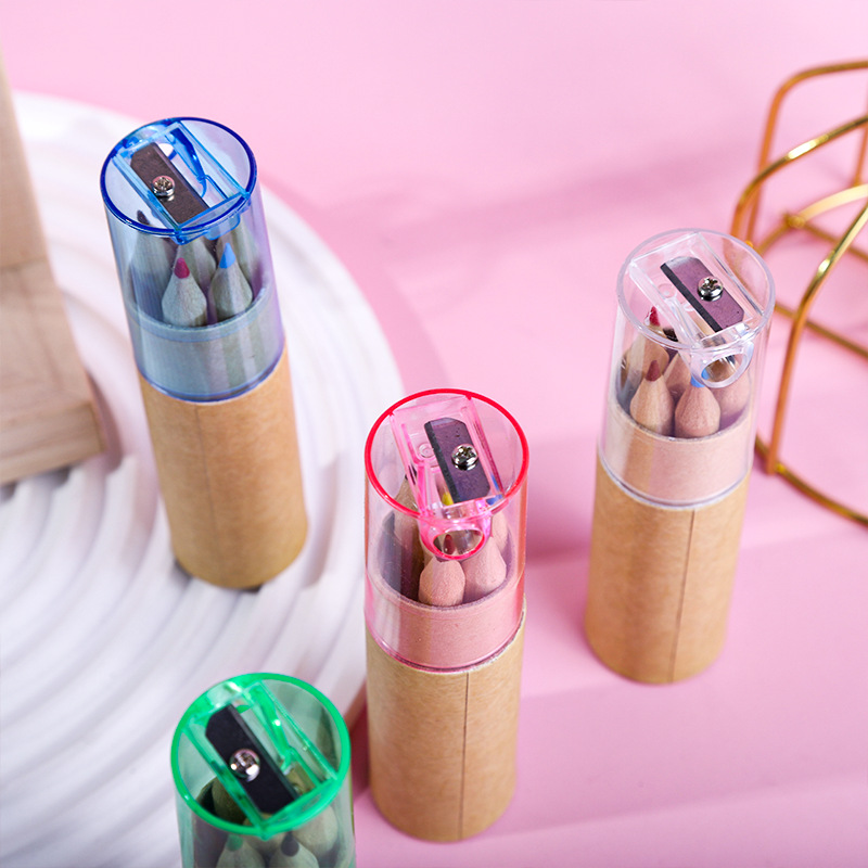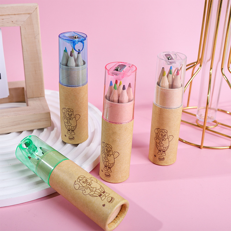 짧은 어린이 그림 컬러 연필 배럴 6 색 오일 컬러 연필 커버 연필 깎기 학생 필수 문구