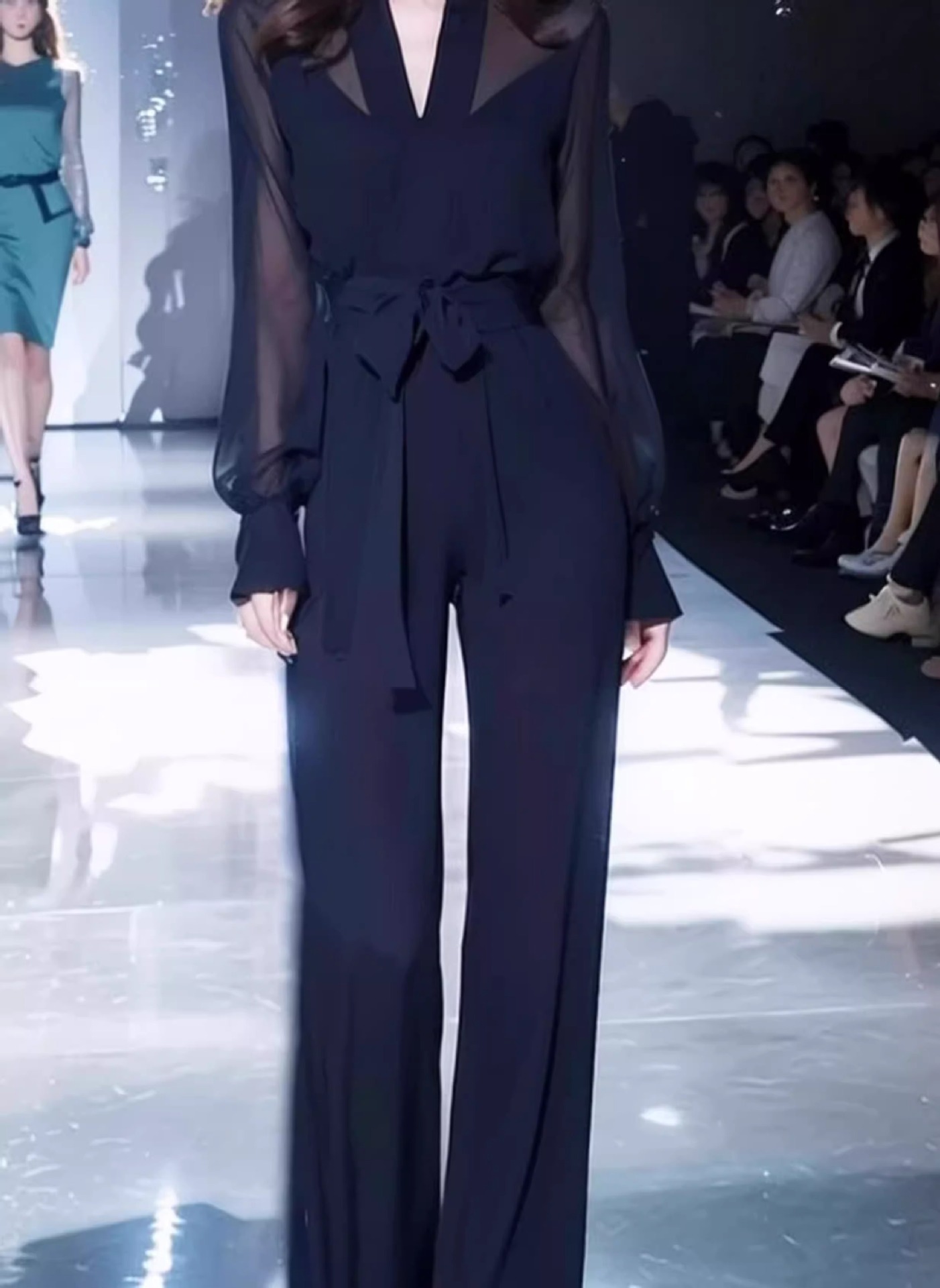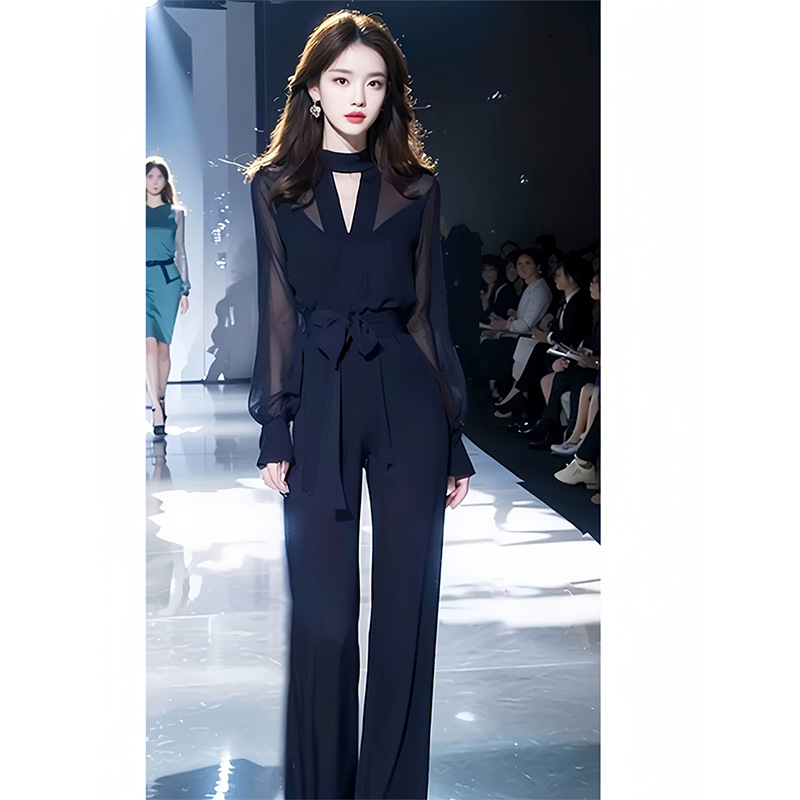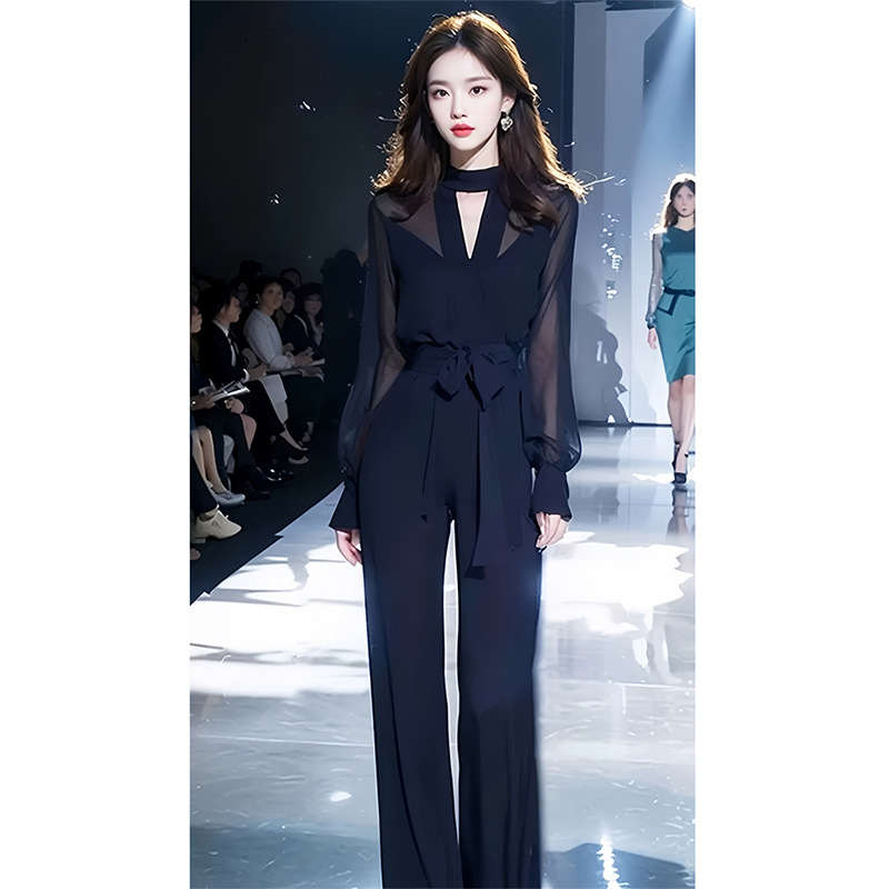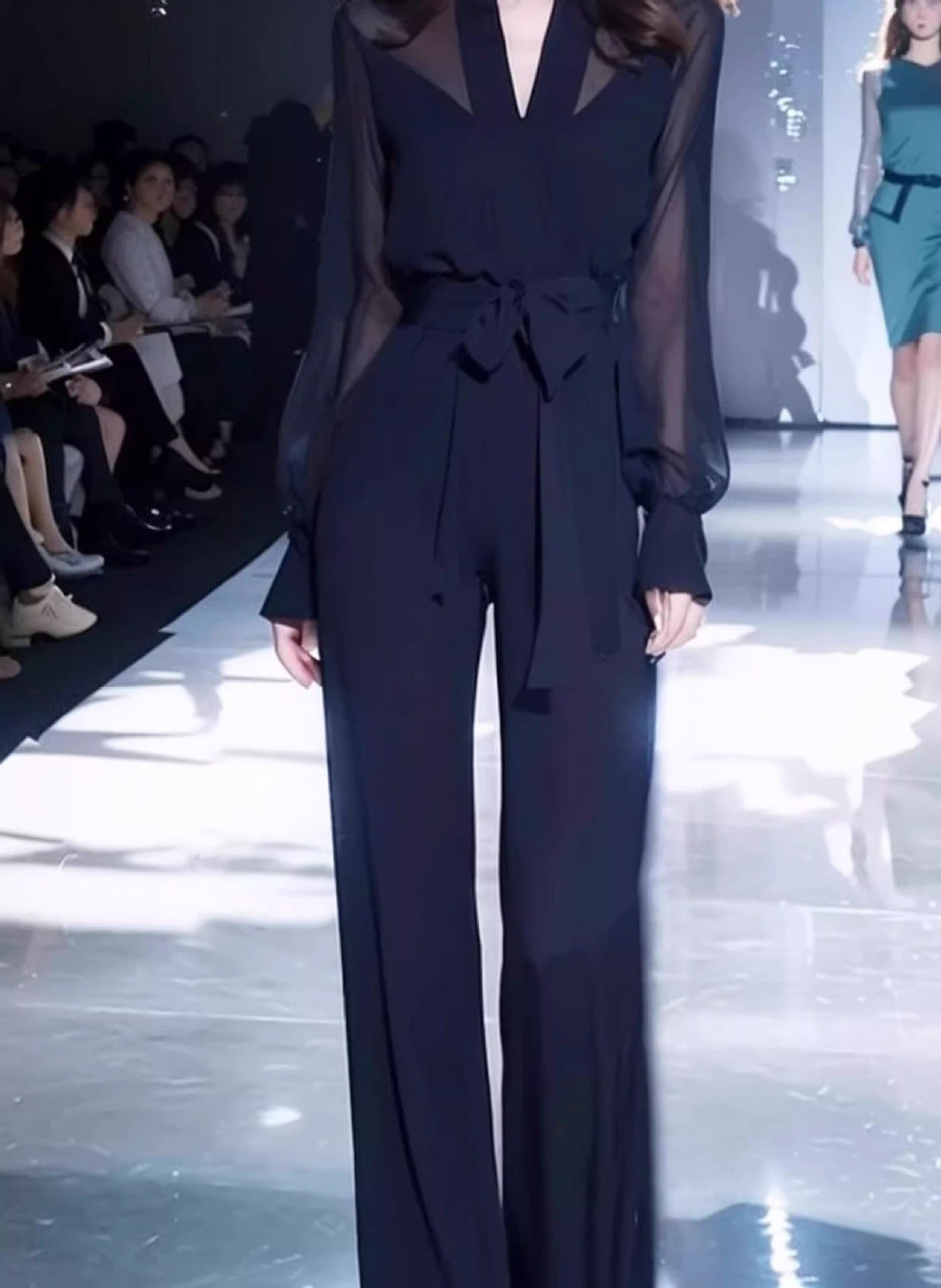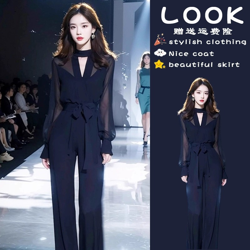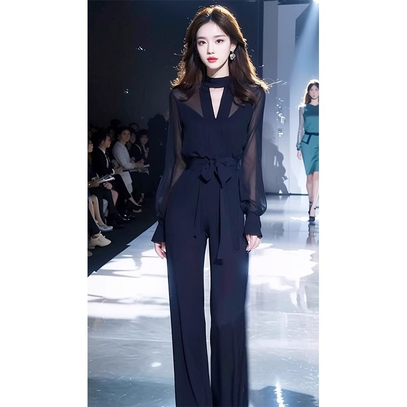 초봄 신상 여성복 세트, 차가운 스타일, 독특하고 고급스러운 느낌의 블루 상의와 바지, 2025 초봄스토어 가기
