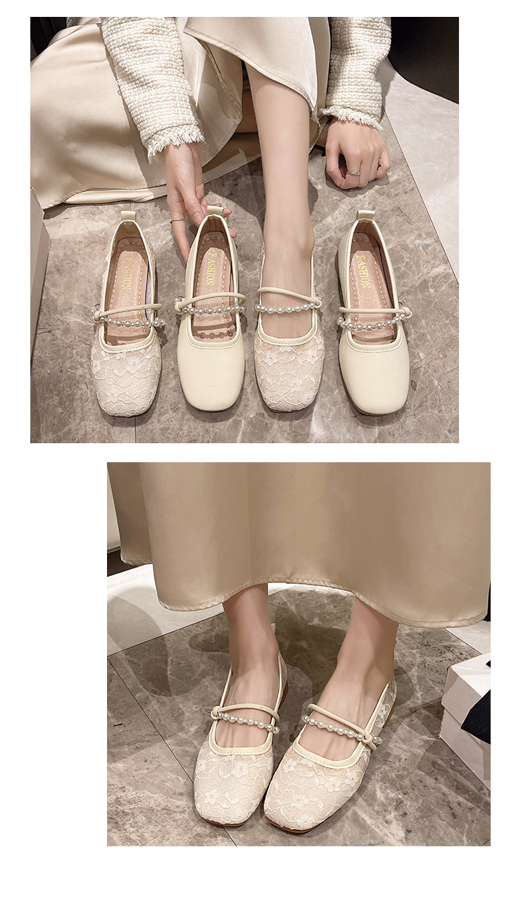 프랑스 스타일 플랫 슈즈 여성의 2025 봄 얕은 입 펄 버클 벨트 유행 의상 페어리 스타일 소프트 하단 빈 신발스토어 가기