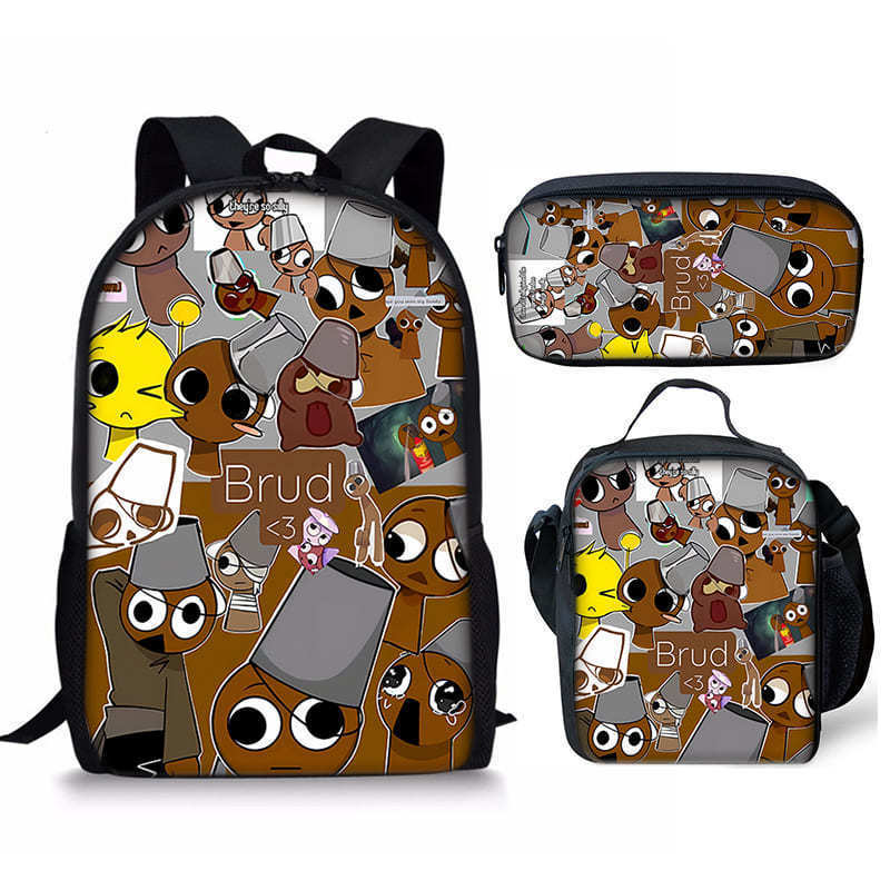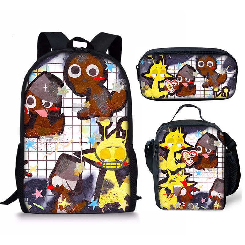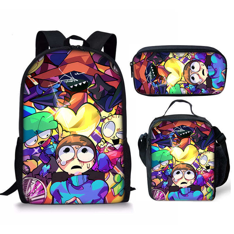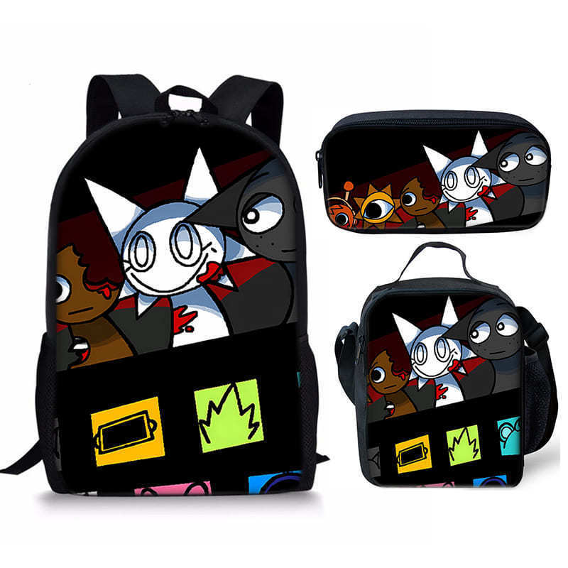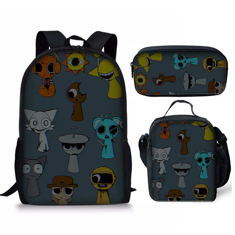 리듬 박스 Sprunki 학생 Schoolbag 3 조각 세트 만화 Satchel 디지털 인쇄 연필 케이스 재고 머리스토어 가기