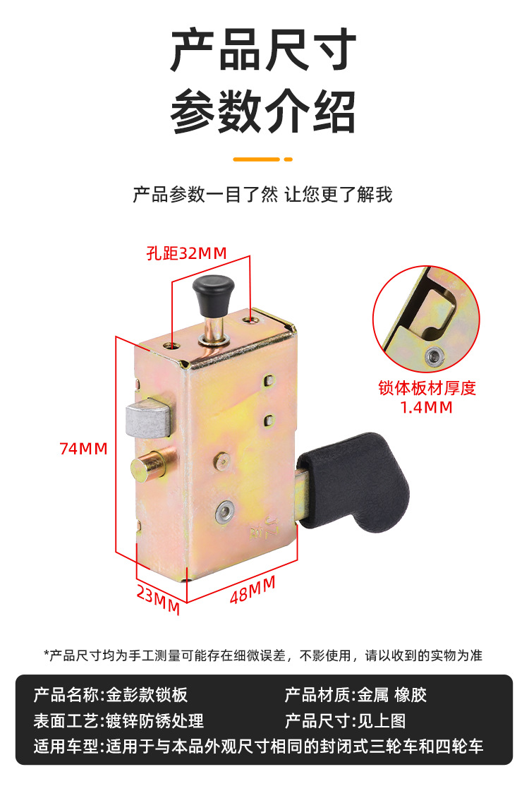 진펭 전기 세발 자전거 내부 도어 잠금 장치 바디 진펭 박스 카 잠금 플레이트 잠금 블록 Jinpeng 쿼드 사이클 도어 핸들 잠금 실린더