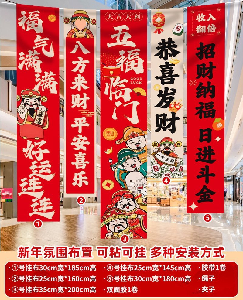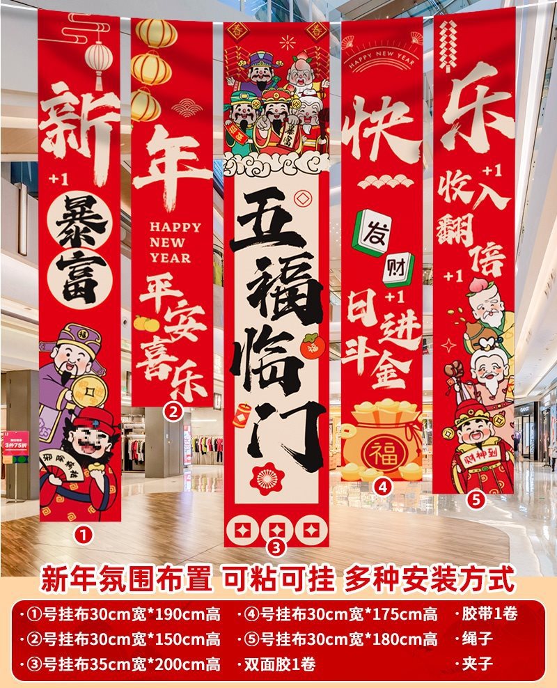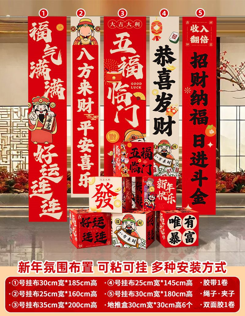 • 【새해 복 많이 받으세요⭐5팩] 새해 행잉 천 G⭐무료 로프 + 클립 + 테이프 + 쌍