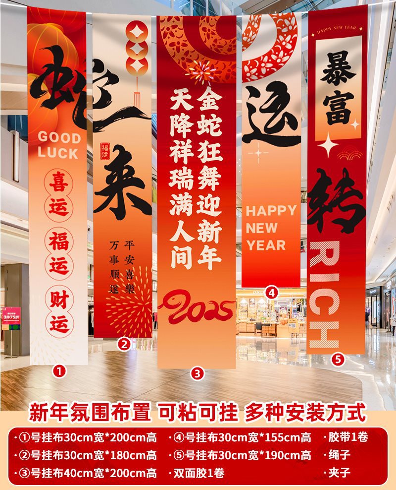 • 【뱀이 돌아왔다⭐5팩] 새해 행잉 천 D⭐무료 로프 + 클립 + 테이프 + 쌍